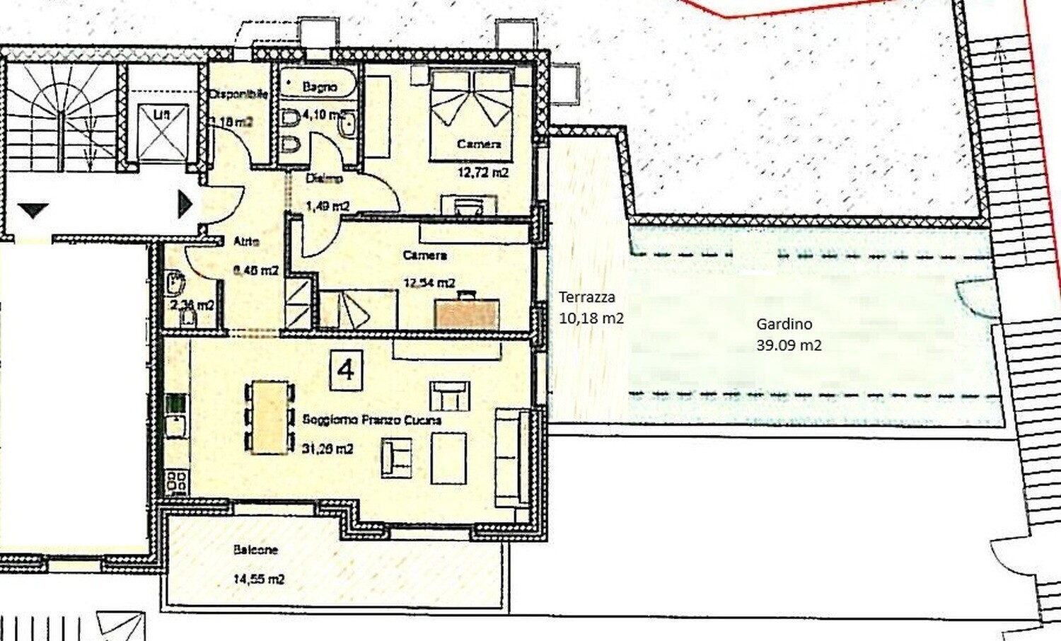 Riscaldamento a pompa di calore con distribuzione a serpentine. Serramenti in alluminio con doppi vetri. Tapparelle elettriche e tende da sole esterne. Irrigazione automatica del giardino. Ascensore e lavanderia condominiale.