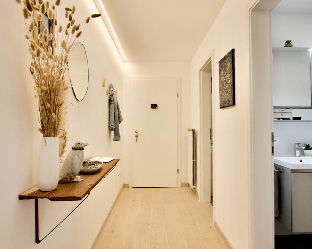 Ingresso su un atrio che conduce alla zona notte, composta da due camere (una matrimoniale e un'ampia camera singola) e due bagni, entrambi finestrati: uno con doccia e colonna lava-asciuga, l'altro con doppi lavabi e vasca.