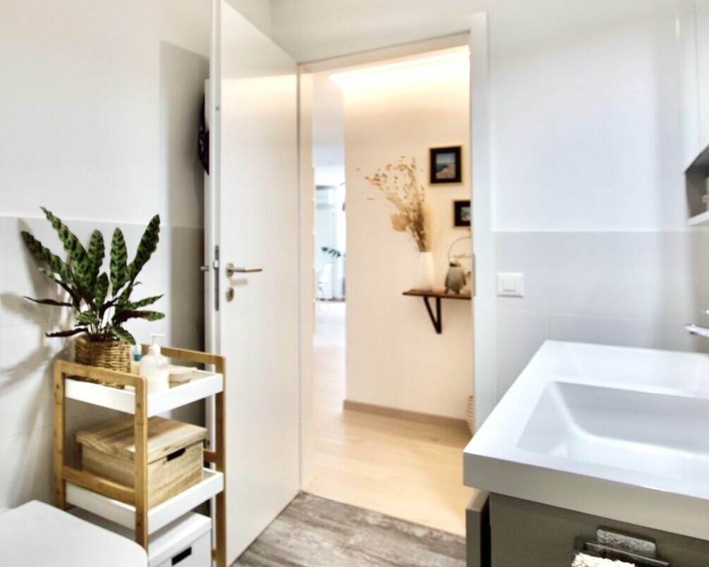 L'appartamento si trova in una zona tranquilla, ideale per chi lavora in home working; la scuola elementare di Vernate è facilmente raggiungibile a piedi, mentre i principali servizi, negozi e centri commerciali di Agno distano circa 7 minuti in auto.