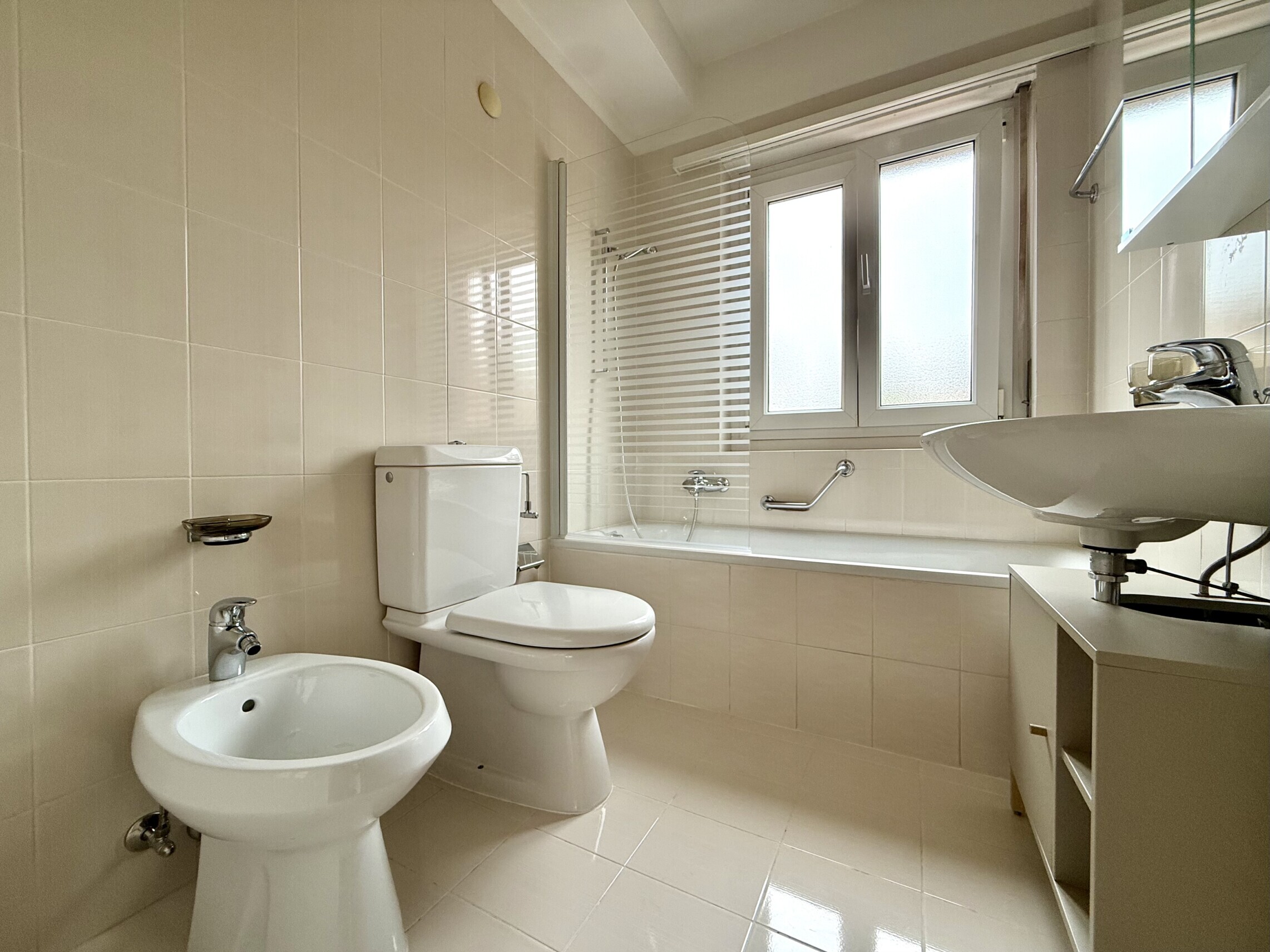 Zona notte con due belle camere da letto ben illuminate, una delle quali con accesso al primo balcone, e bagno principale finestrato con vasca e sanitari sospesi.