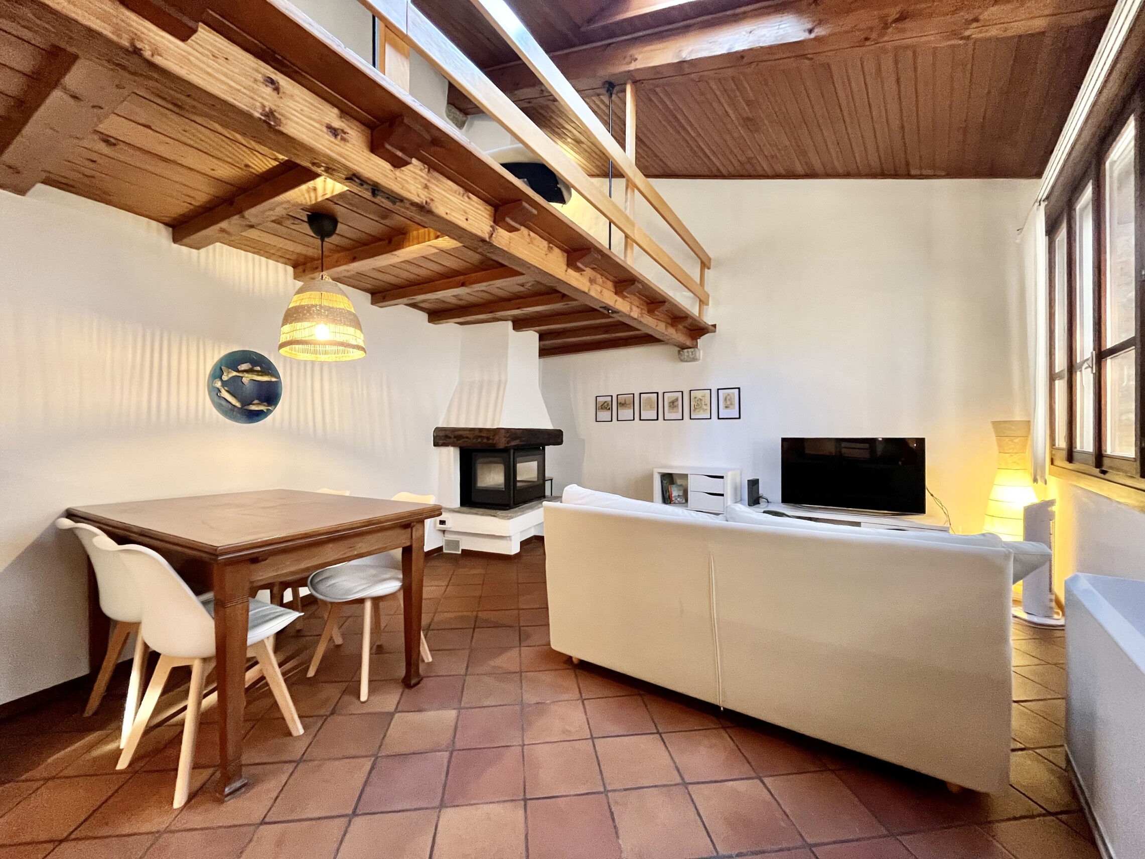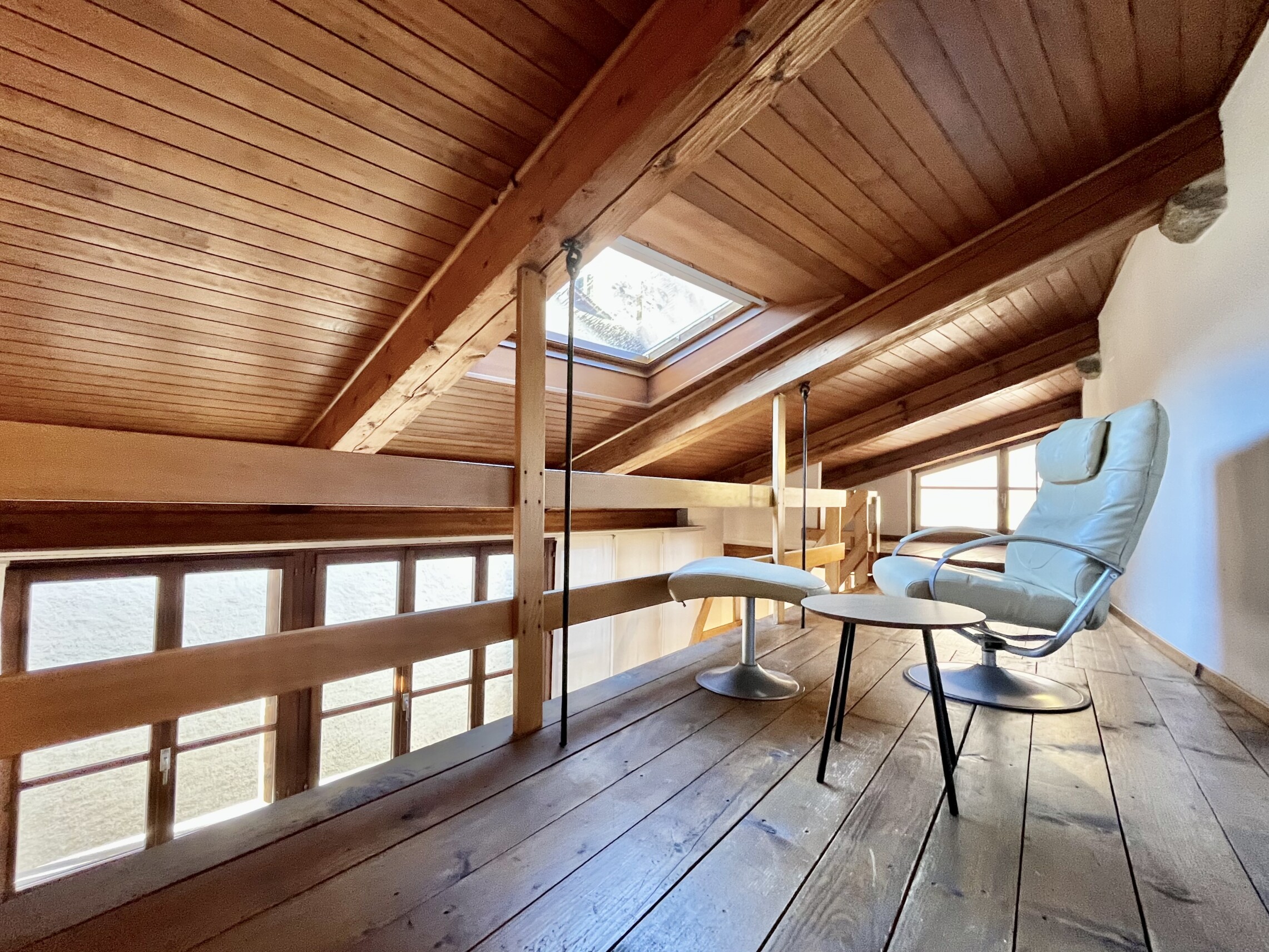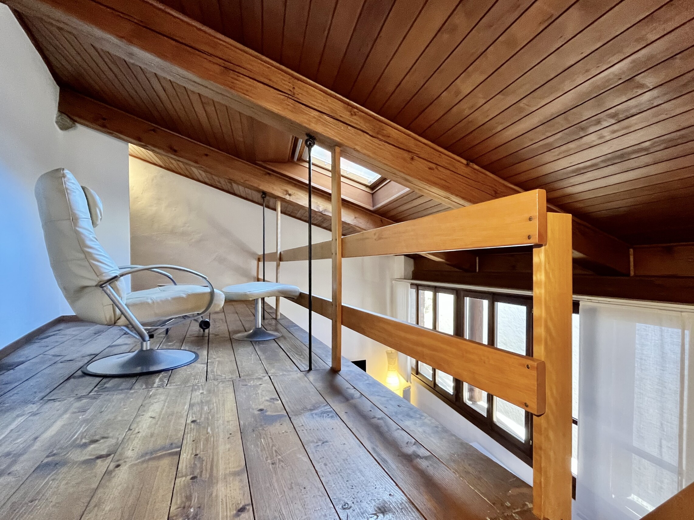 È inoltre presente un soppalco arredato come zona relax, con una poltrona illuminata dalla luce naturale del velux.
