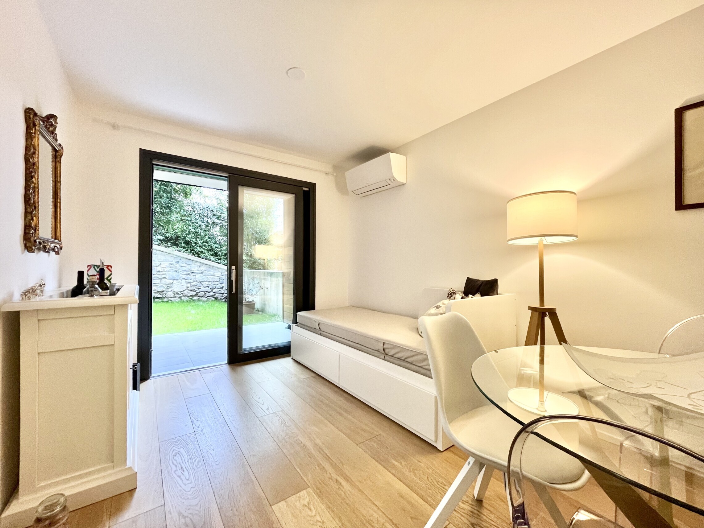 L'appartamento si trova in una posizione ideale per chi desidera la vicinanza all'Italia: a soli 5 minuti dal confine e a pochi passi da tutti i principali servizi, tra cui posta, ristoranti e negozi.