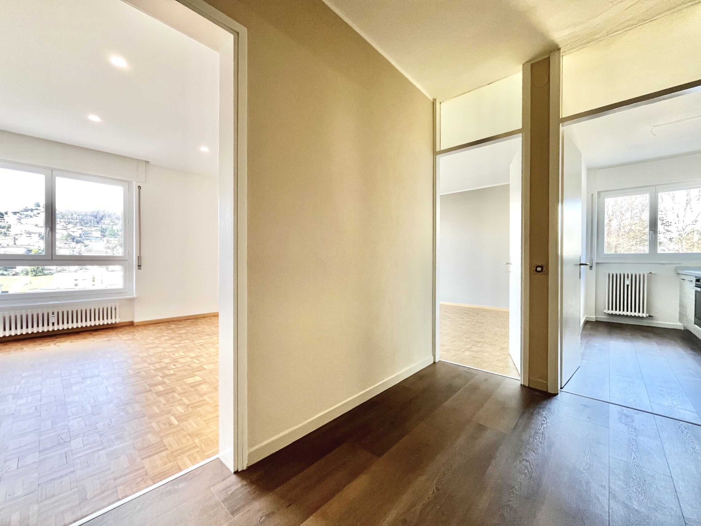 Bellissimo appartamento di circa 60 mq con bella terrazza con vista panoramica sito al quinto ed ultimo piano di una palazzina recentemente ristrutturata esternamente con facciate e balconi rifatti e con ascensore nuovo in zona Cortivallo comoda a tutti i principali servizi ed alla stazione di Lugano.