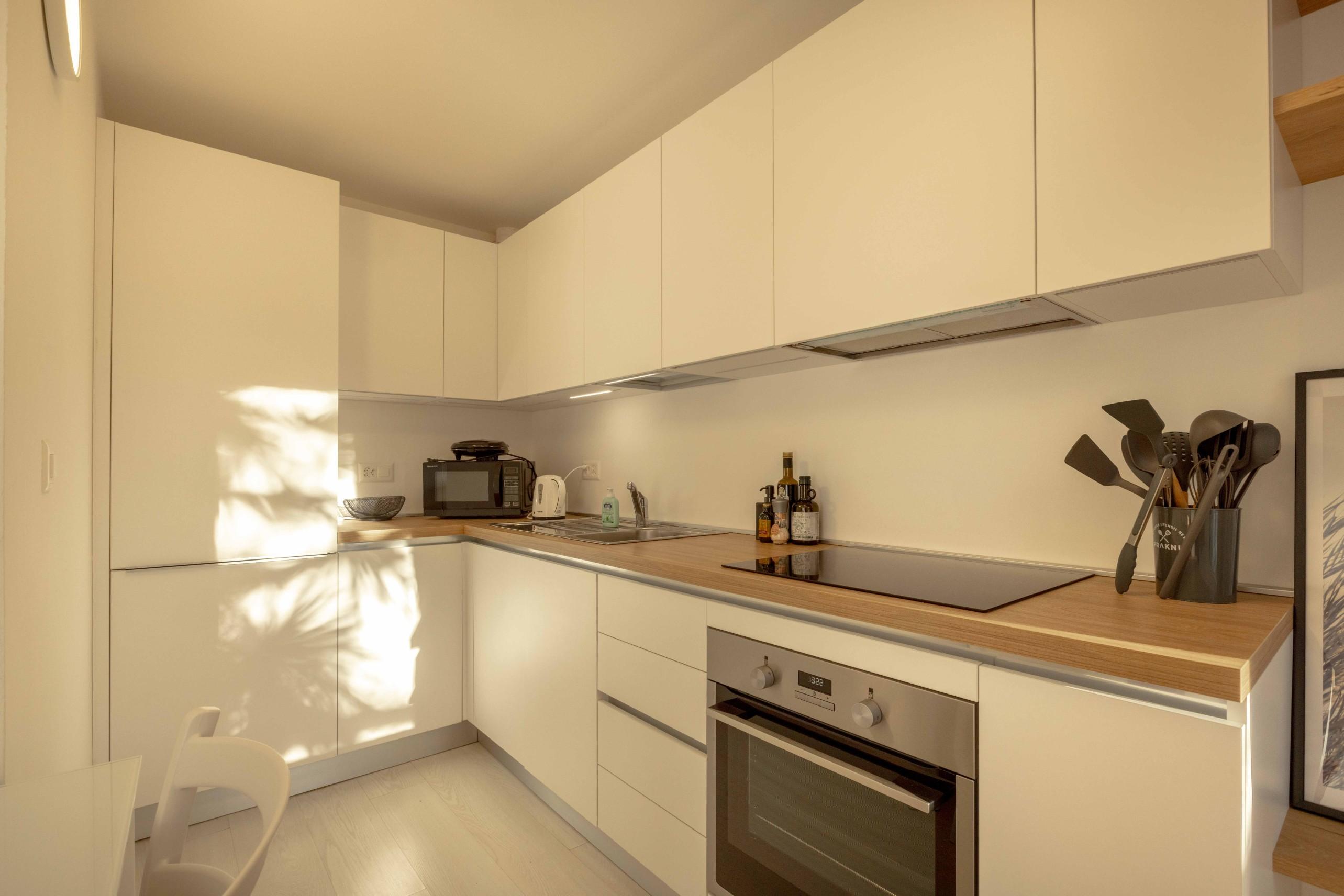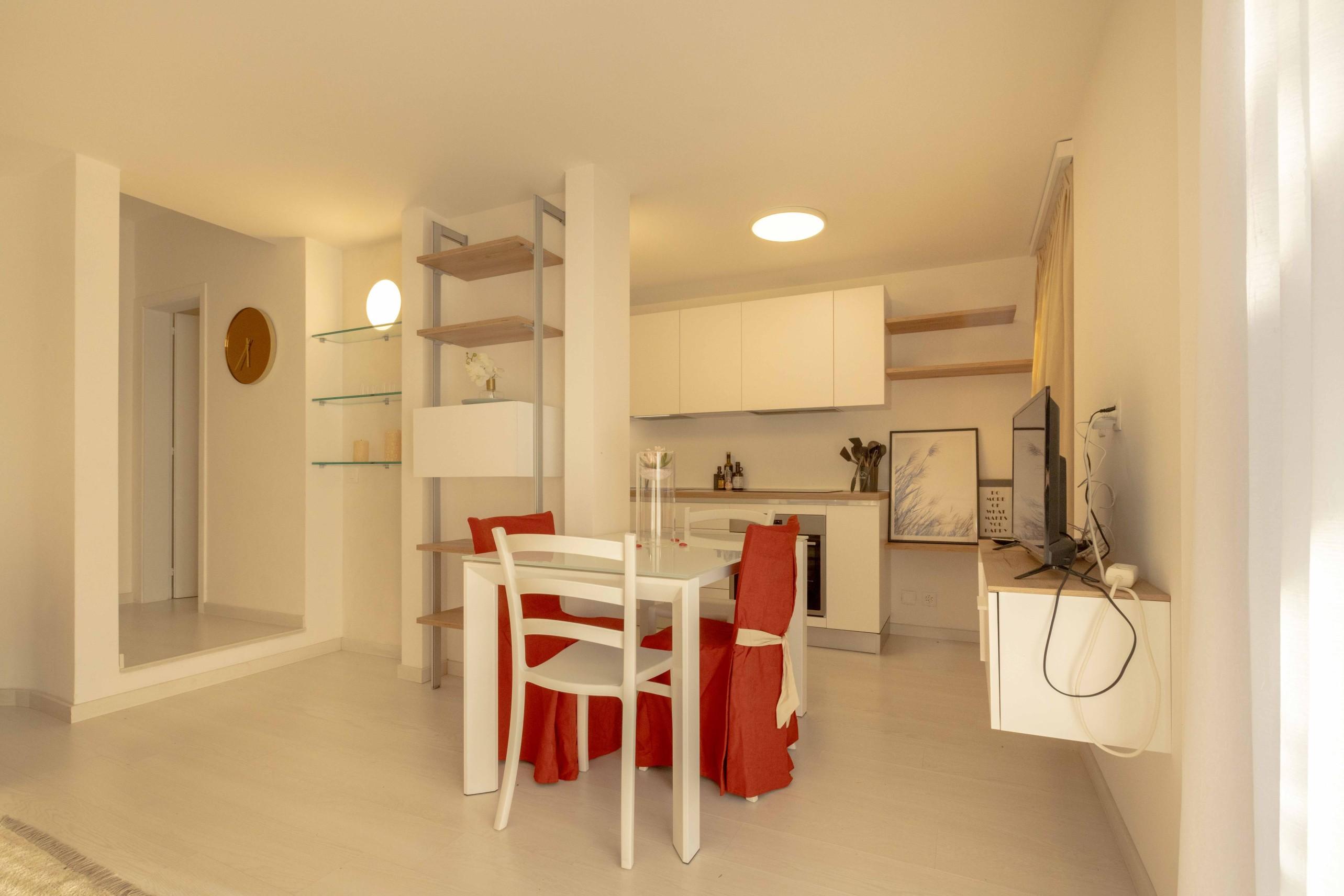 L'appartamento è composto da atrio d'entrata con armadio a muro, bagno con box doccia, soggiorno, cucina semi separata, bellissima veranda con giardinetto che si affaccia sul lago, un bell'angolo dove godersi tranquillità e relax in tutte le stagioni.