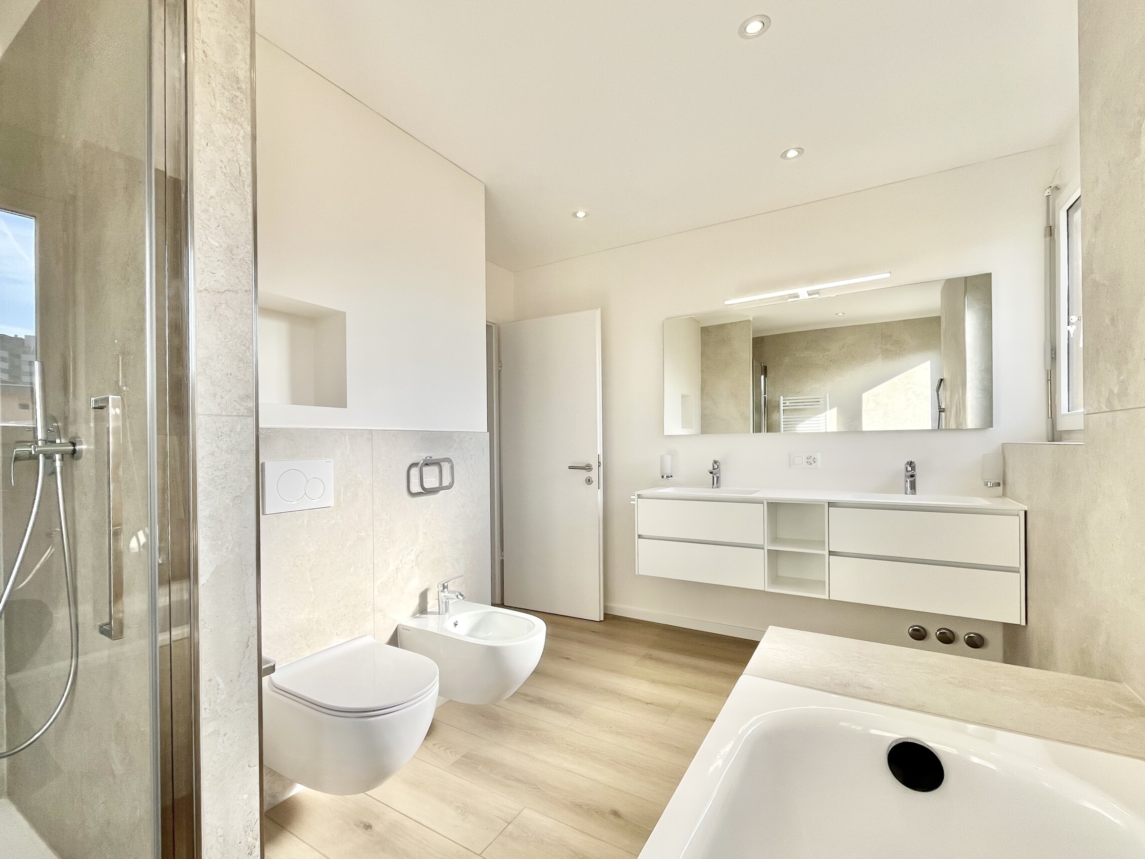 Affittasi ampio appartamento 5.5 locali di circa 123 mq calpestabili, con due terrazze di circa 10 mq, situato al 5° e penultimo piano di una palazzina in zona centrale a Pregassona.