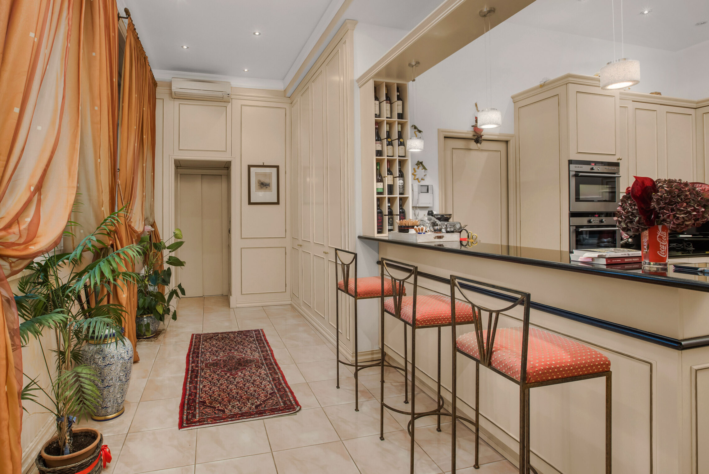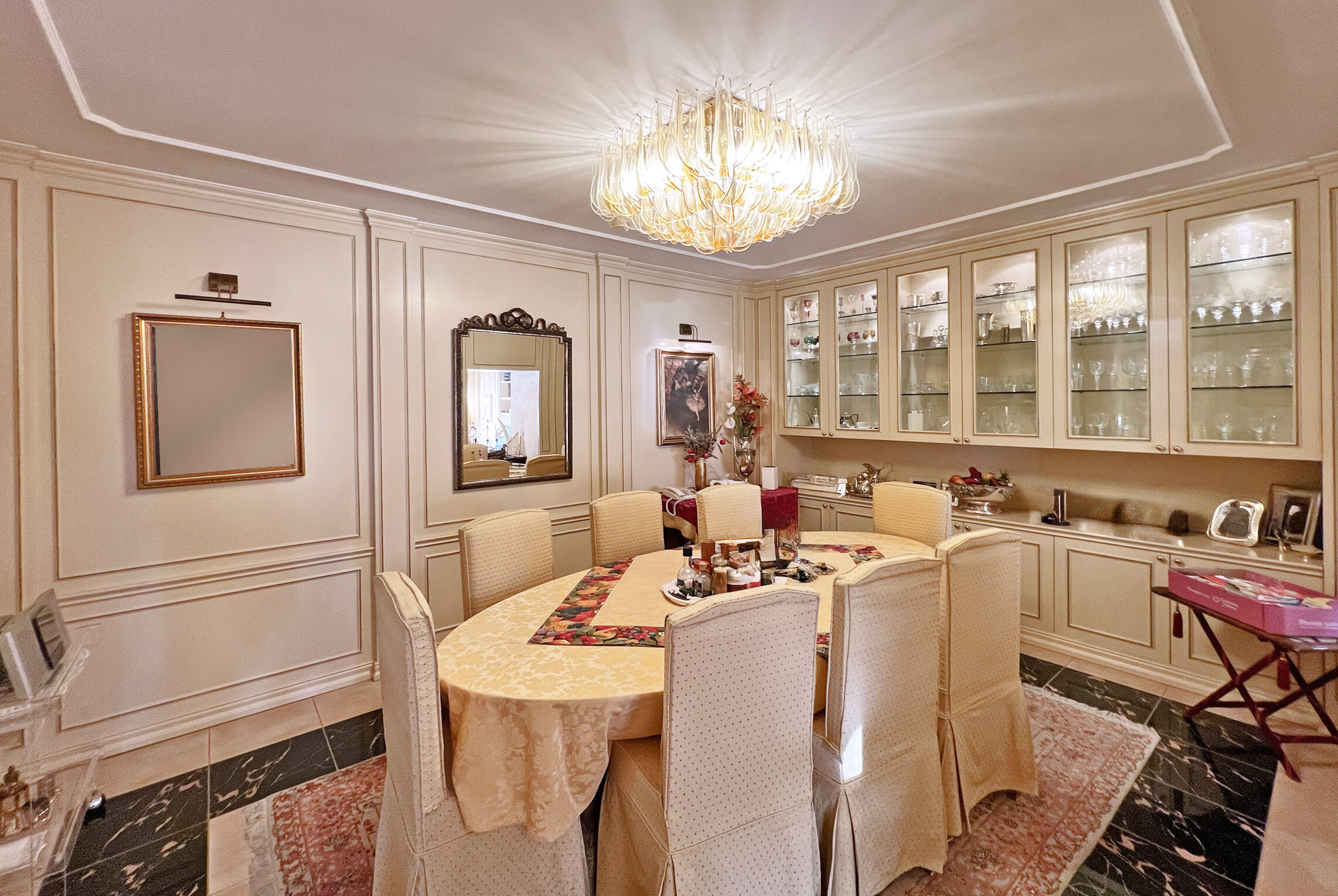 Tra le dotazioni troviamo una lavanderia e stireria privata interna all'appartamento, videocitofono, tende da sole e tapparelle elettriche, aria condizionata canalizzata, ascensore privato dal box, nonché un giardino privato panoramico curato nei dettagli.