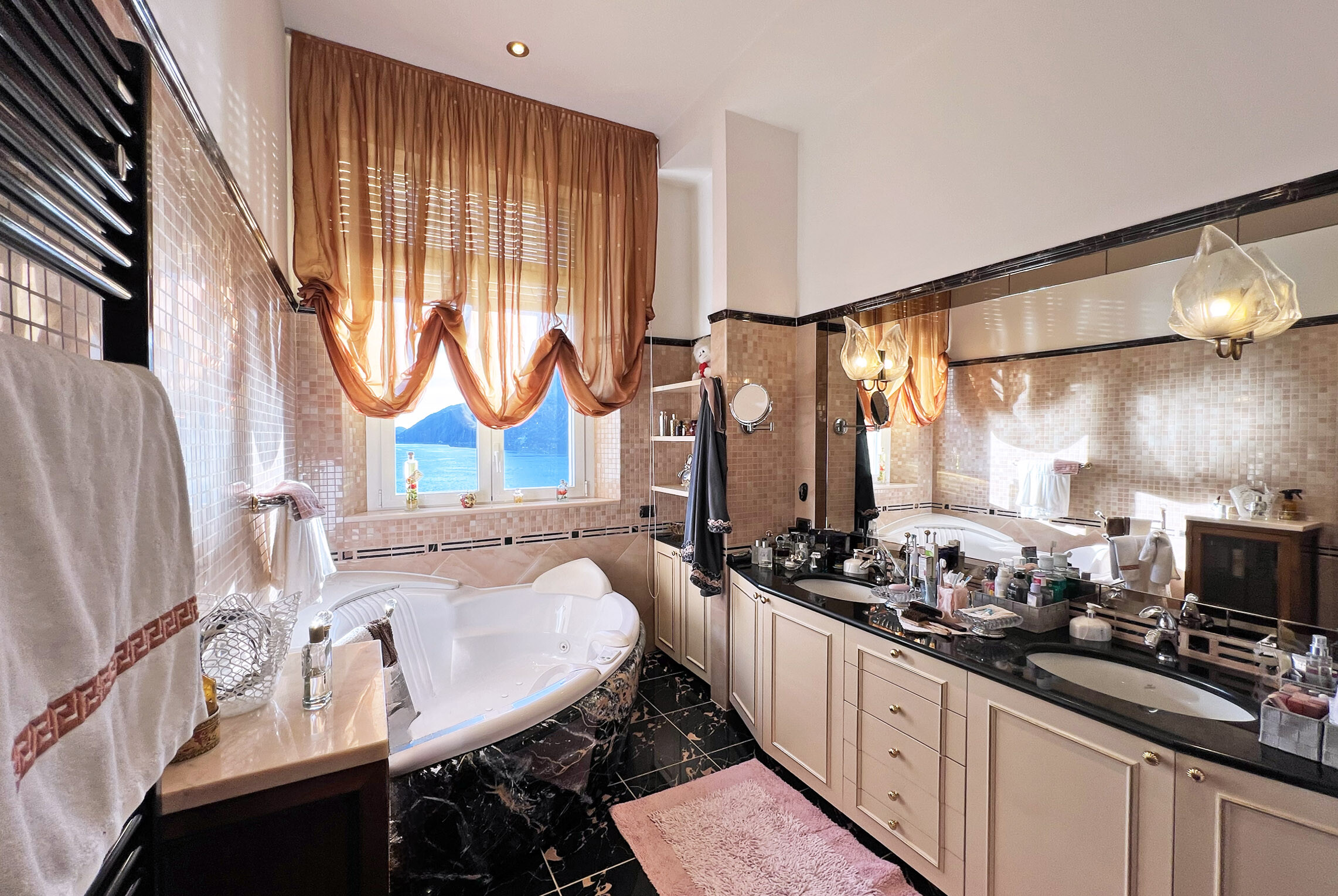 Proponiamo in vendita un elegante appartamento di 5.5 locali con una delle più affascinanti viste sul lago di Lugano. Con una superficie lorda di circa 343 mq e un magnifico giardino panoramico di circa 180 mq, questa proprietà si trova all'interno di una residenza esclusiva edificata nel 2005 e mantenuta in condizioni impeccabili.