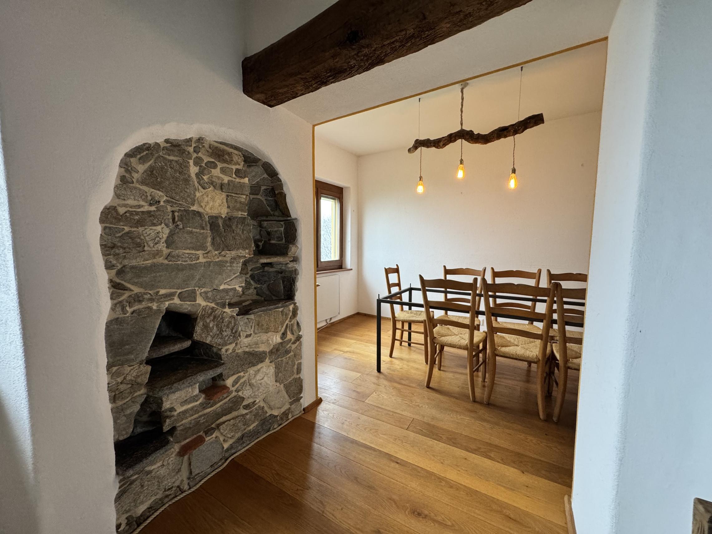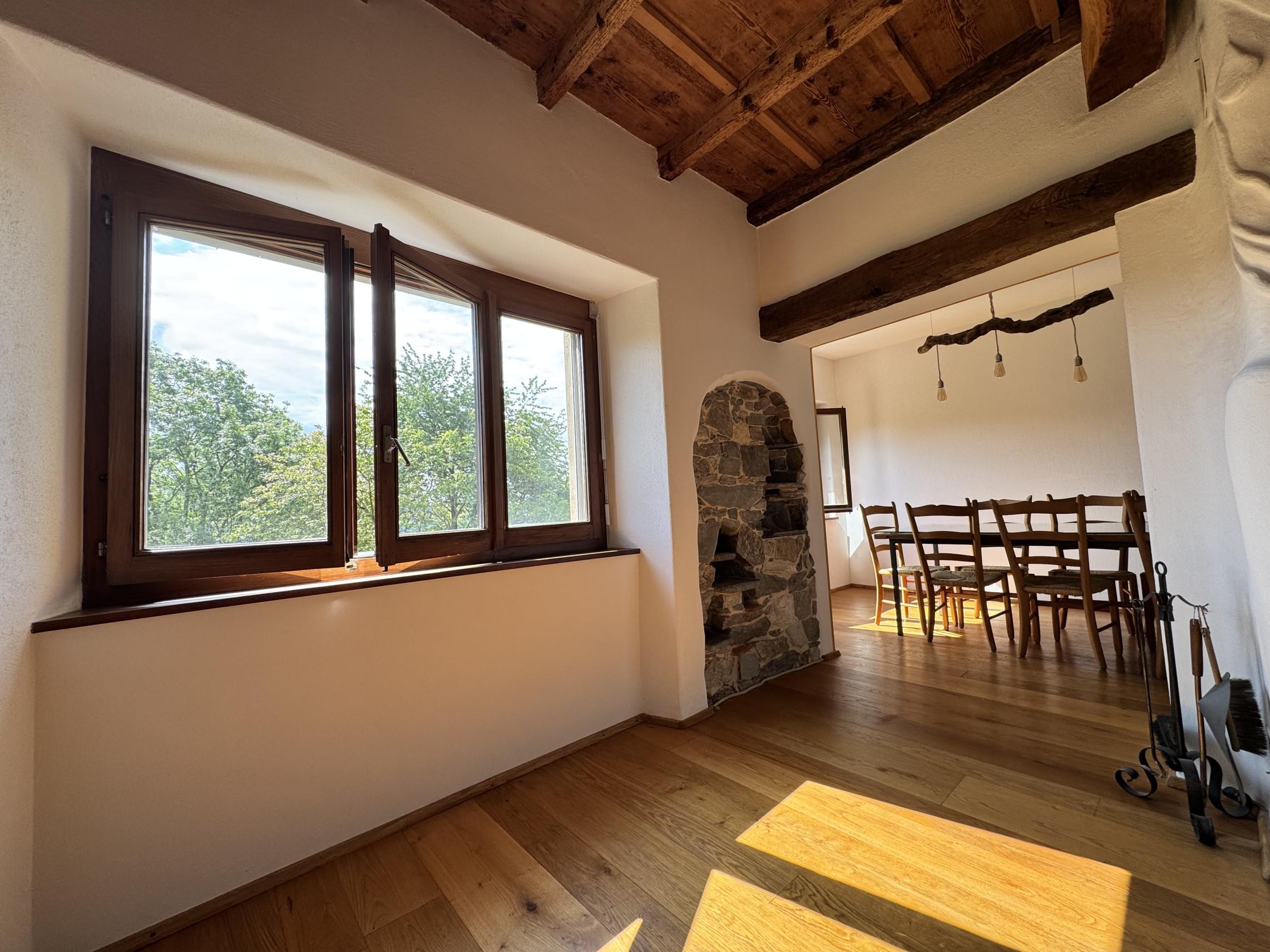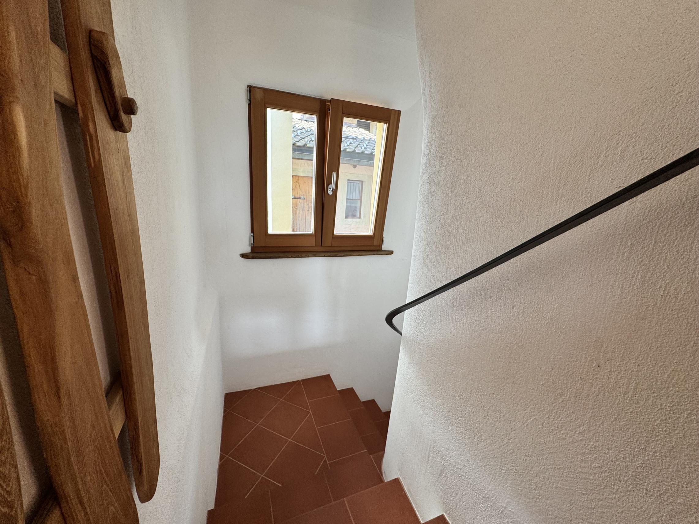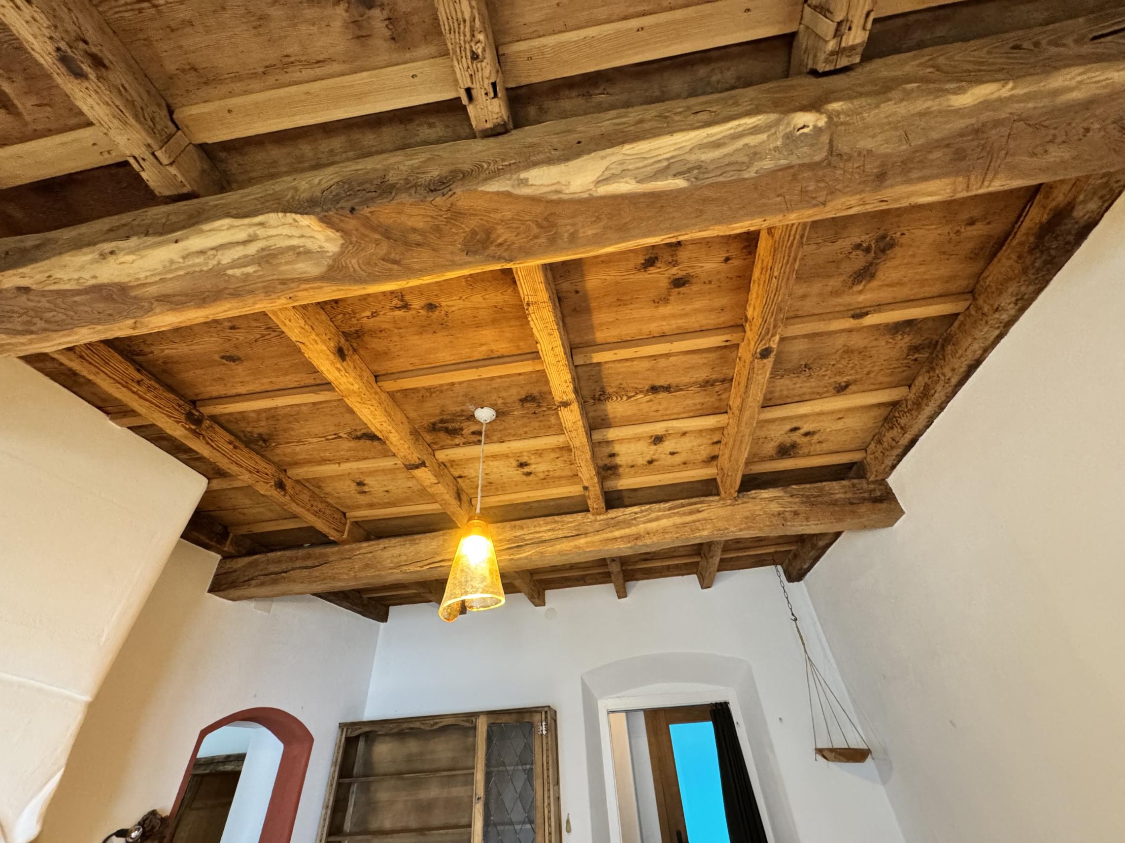 La casa si presenta in eccellente stato di manutenzione, grazie a una ristrutturazione attenta e rispettosa delle sue caratteristiche originarie, come le travi a vista e le porte in legno massiccio.