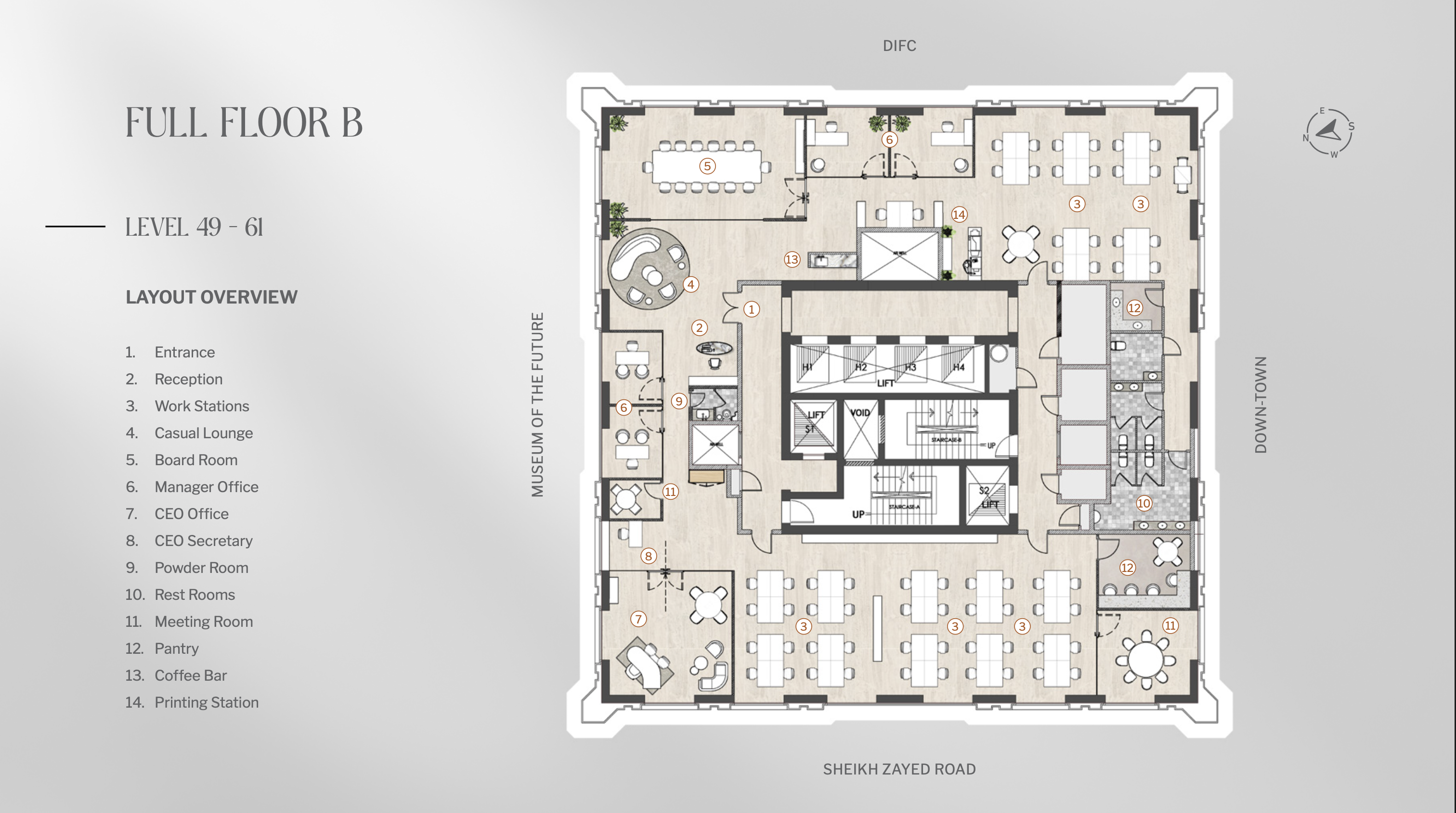 Collocato strategicamente tra DIFC, Downtown Dubai, Dubai Mall e Business Bay, AHS Tower offre spazi di lavoro moderni, flessibili e su misura, progettati da Killa Design e AHS Atelier, che fondono design visionario e comfort funzionale. Le unità spaziano da 320 a 620 mq, perfette per tutte le esigenze aziendali, da startup a grandi multinazionali.