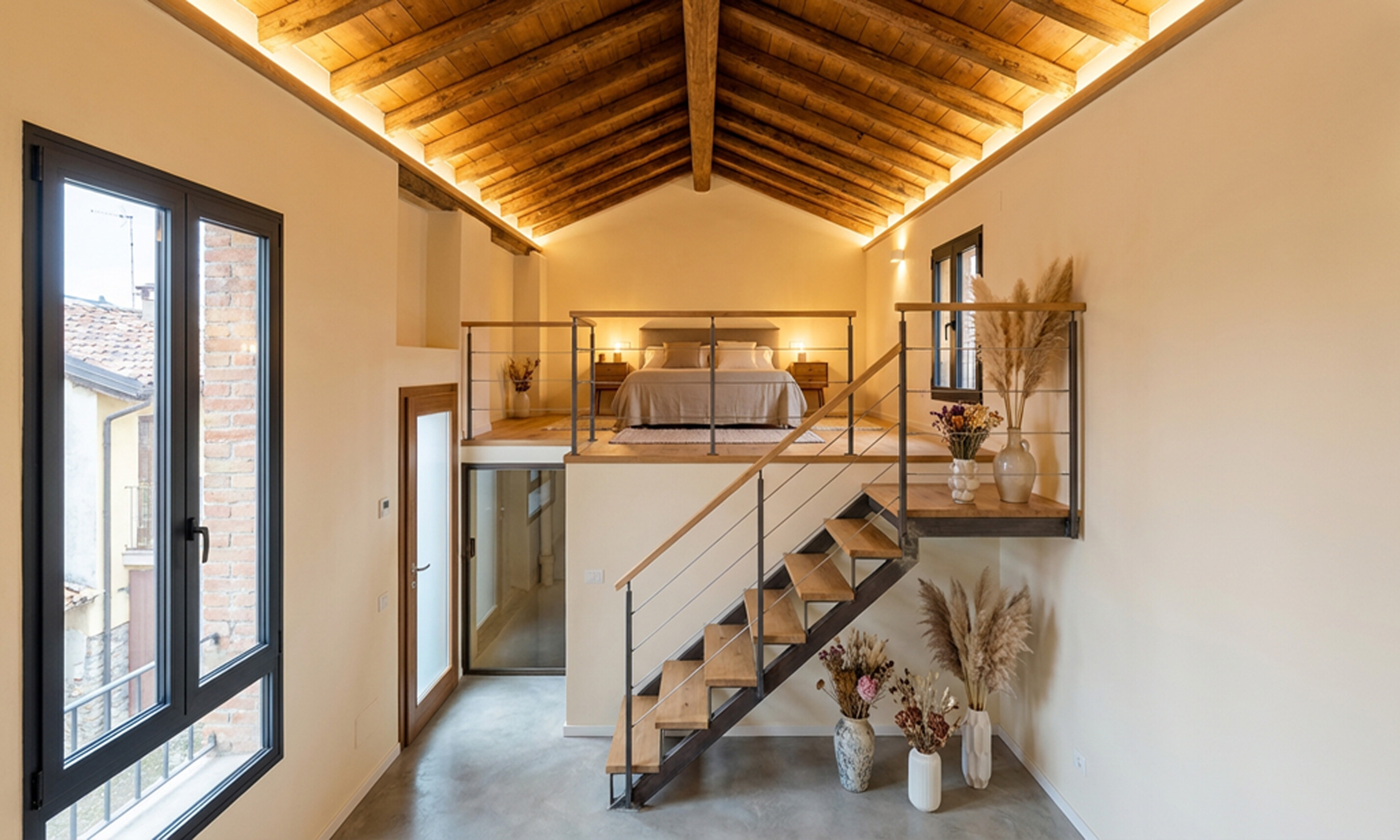 Secondo Piano: Zona notte composta da una camera singola, un'ampia camera padronale con balcone privato e un terzo locale.