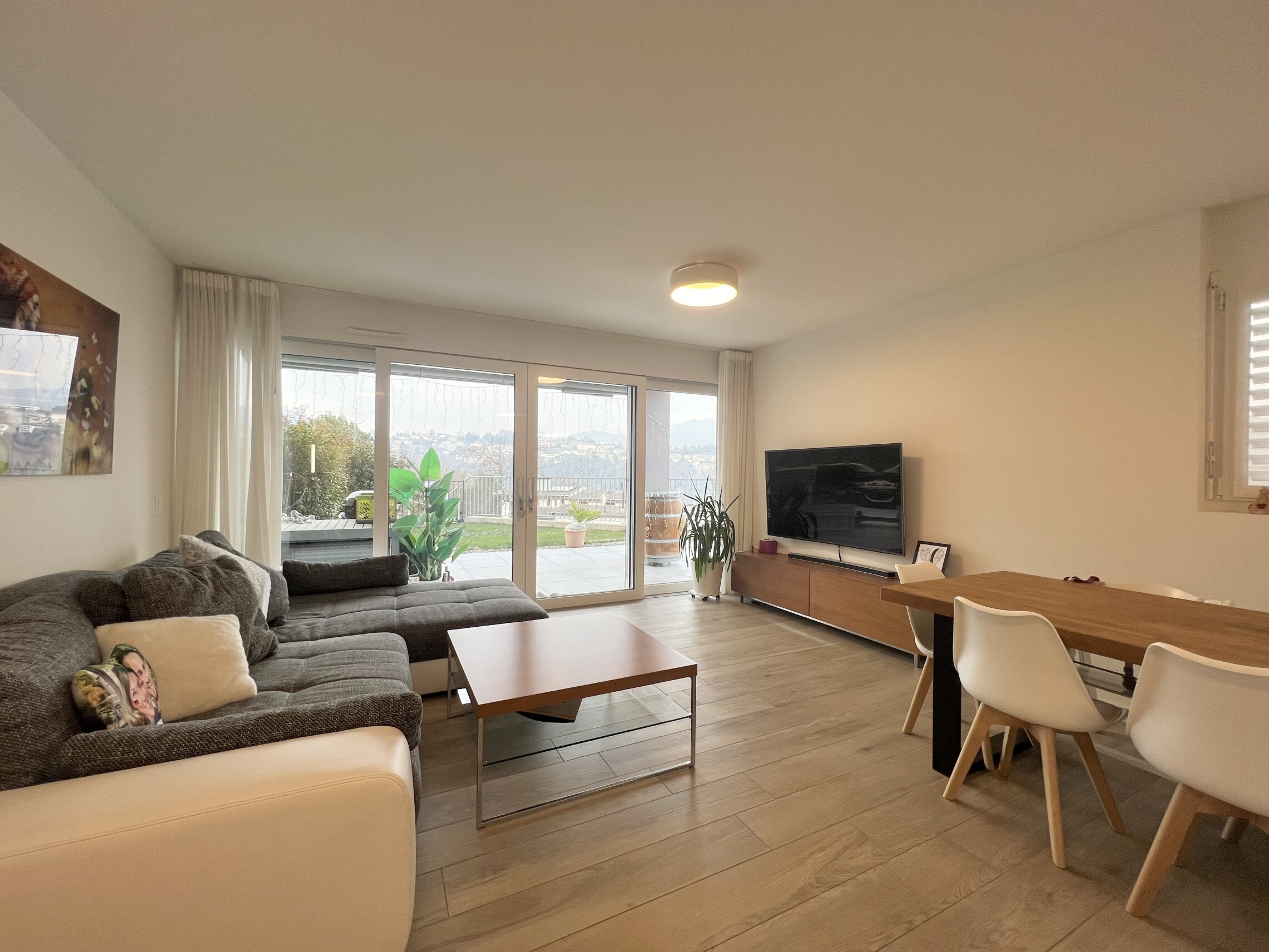 Proponiamo in vendita un elegante appartamento di 3.5 locali di circa 92 mq, impreziosito da una terrazza di circa 10 mq e da un giardino privato. L'immobile, situato a Pazzallo, è stato edificato di recente nel 2020.