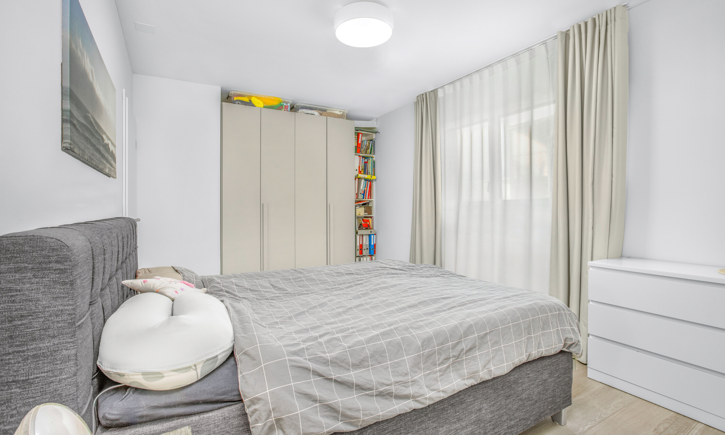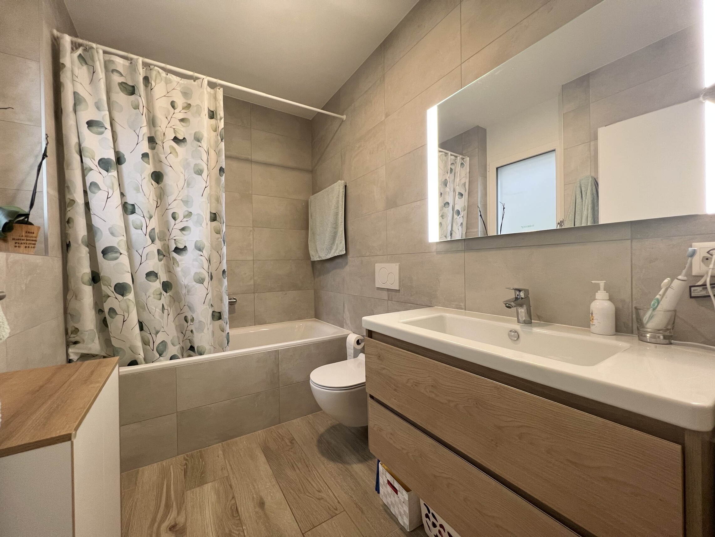 La zona notte, ben separata dalla zona giorno, comprende un'ampia camera singola servita da un bagno moderno con doccia. La camera matrimoniale dispone di un bagno en-suite finestrato con vasca, offrendo un ambiente confortevole e riservato.