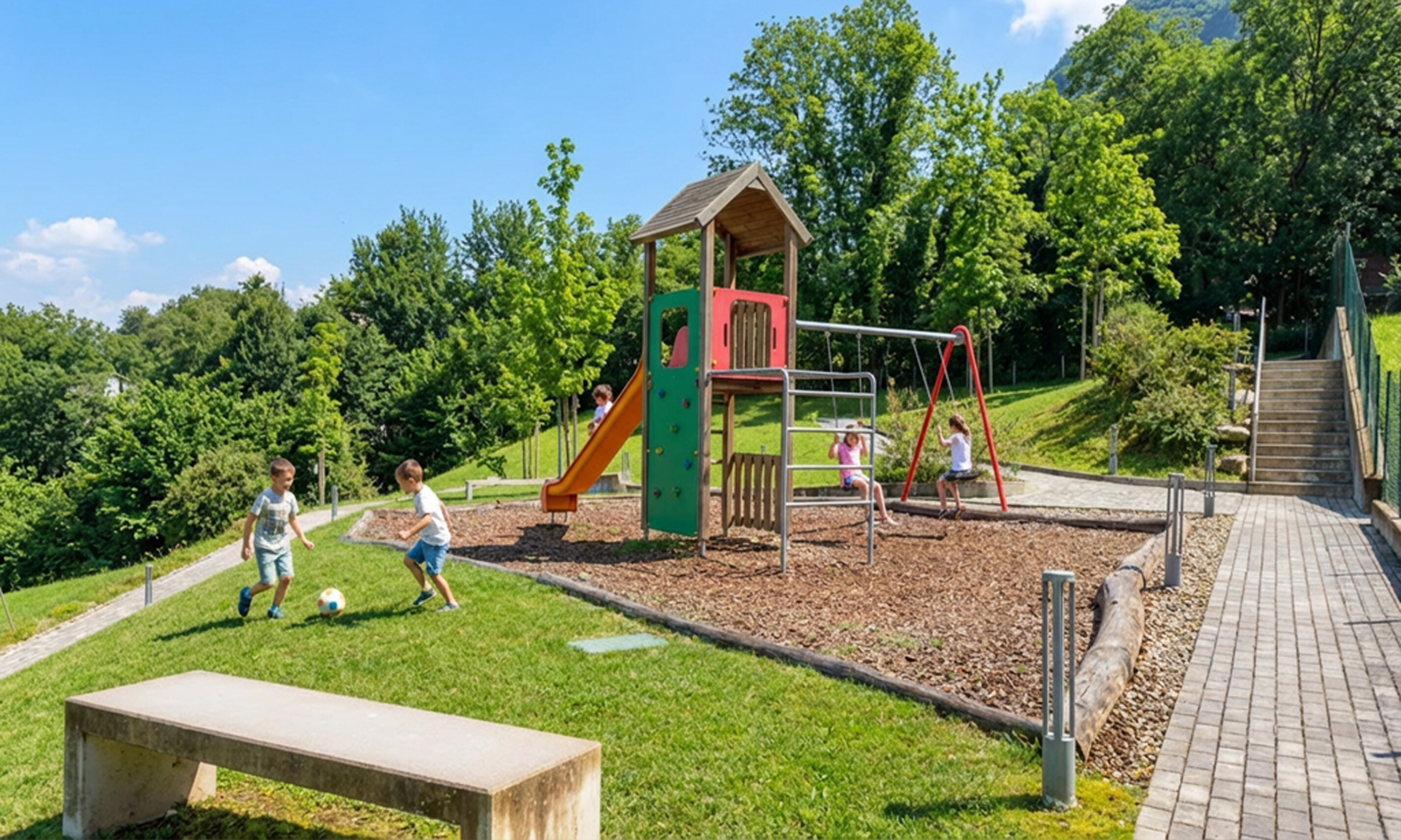 La proprietà è ideale anche per famiglie: l'asilo e la scuola elementare di Pazzallo distano soli 5-8 minuti a piedi, mentre le scuole medie sono raggiungibili in circa 15 minuti di auto a Lugano-Besso. Per chi cerca un'opzione internazionale, la GIS - International School of Lugano si trova a dieci minuti a piedi.