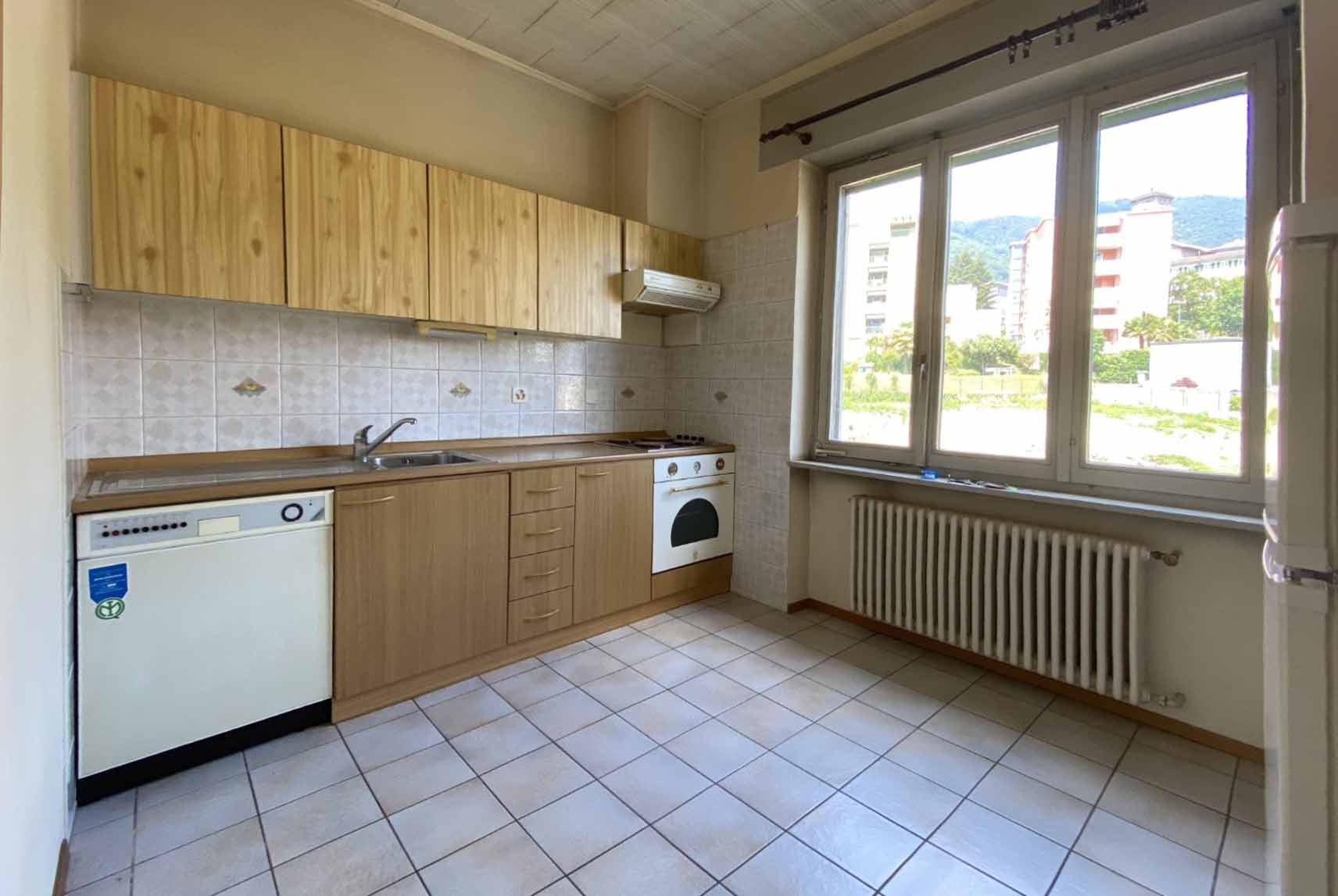 Un bel soggiorno spazioso con uscita sul terrazzo ed un ulteriore finestra riempiono di luce questo ambiente, interamente pavimentato in parquet ben tenuto e con una cucina abitabile in cui è possibile inserire comodamente un tavolino da pranzo.