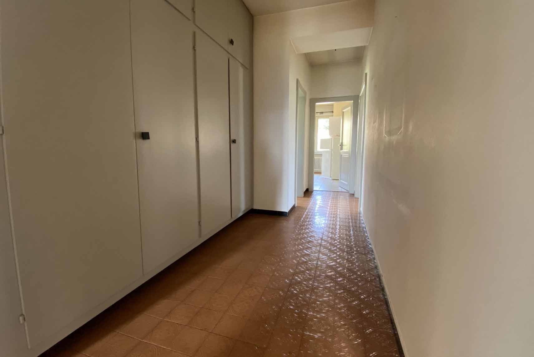 Una grande corridoio con armadi a muro divide la zona giorno dalla zona notte.
