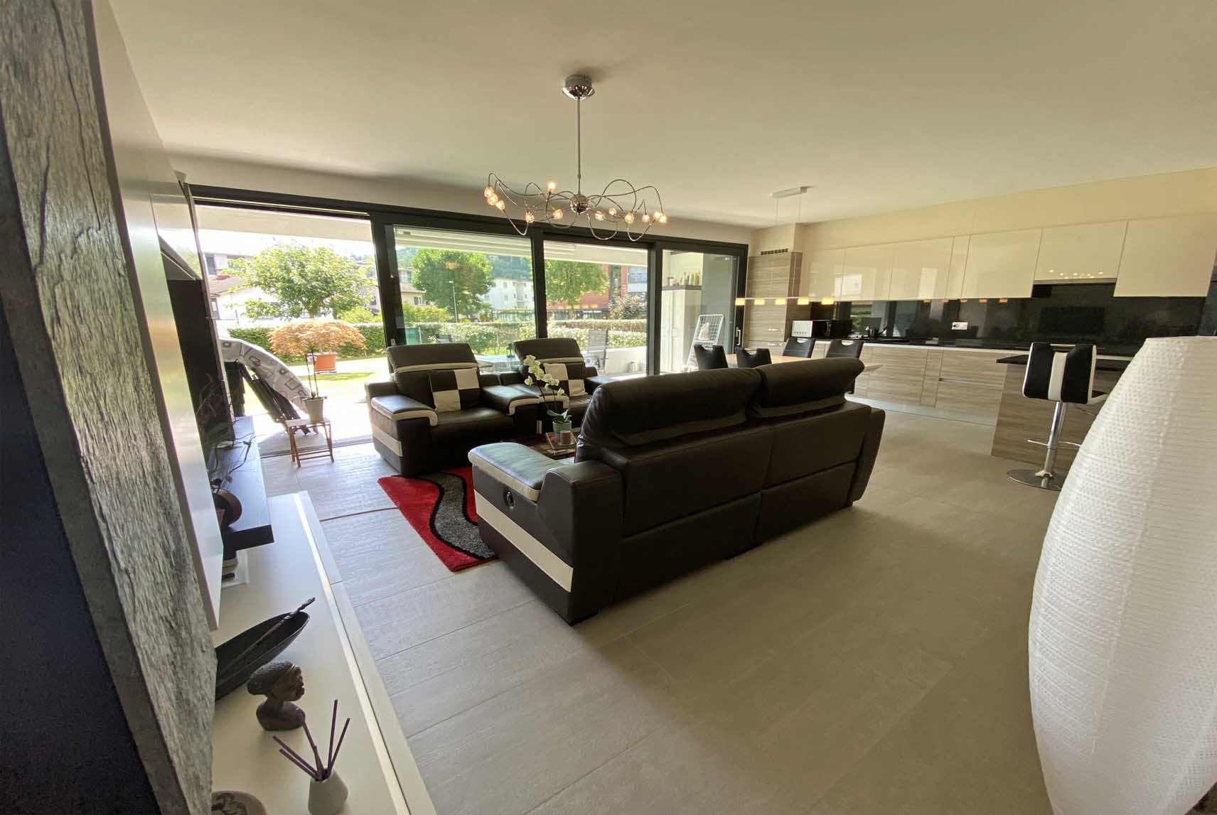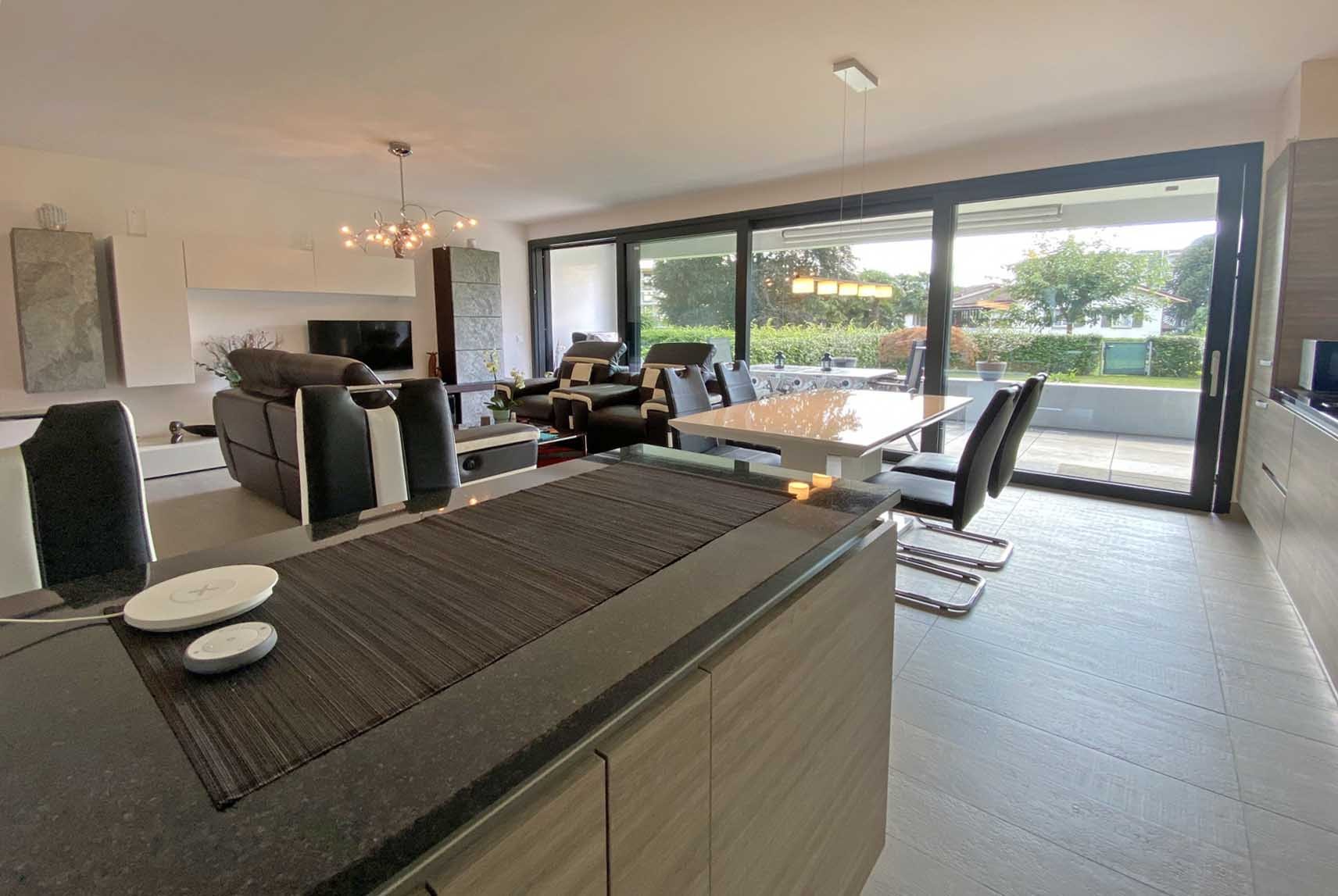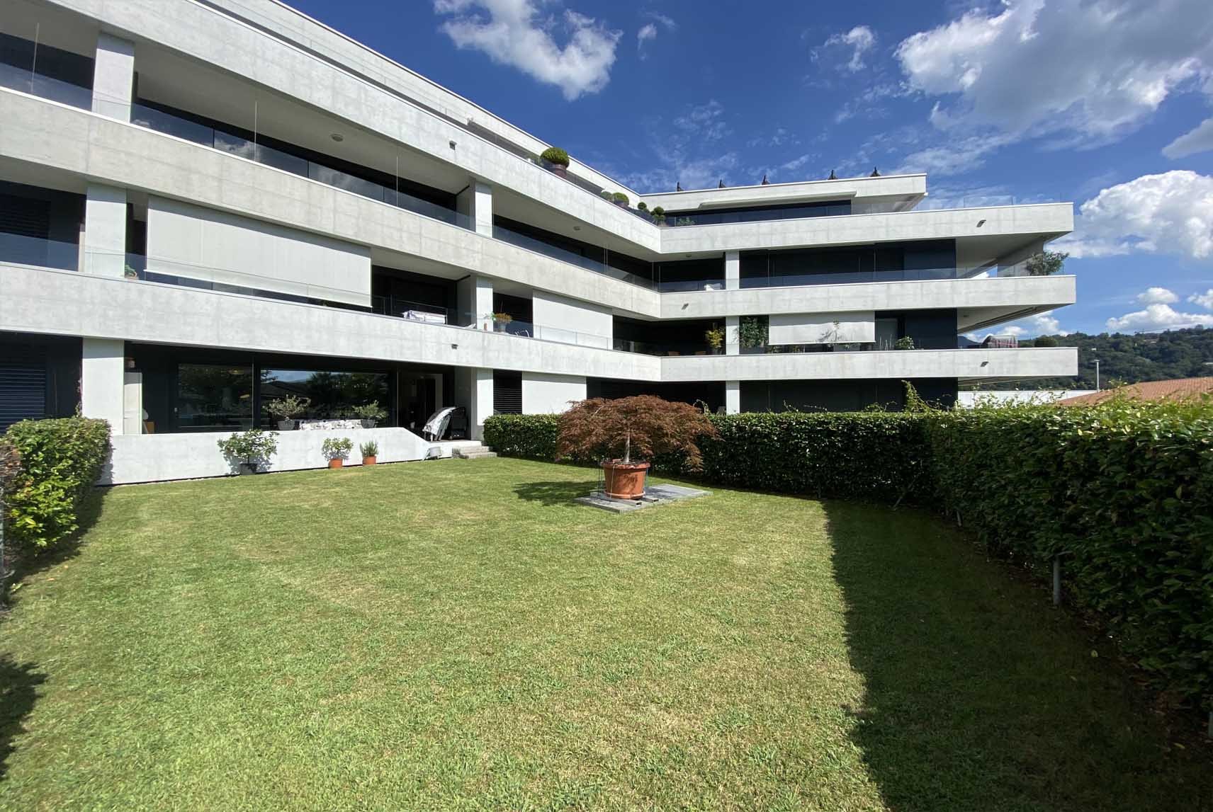 Moderno ed elegante 3.5 locali di circa 115 mq lordi, con una grande terrazza coperta di 17 mq che si apre su un grande giardino pianeggiante di 100 mq con bella vista aperta sul panorama circostante, al primo piano rialzato di una palazzina di design del 2015 con ascensore, composta da soli 14 appartamenti e suddivisa in 4 piani, in una zona ben servita situata nella parte più bella di Agno.