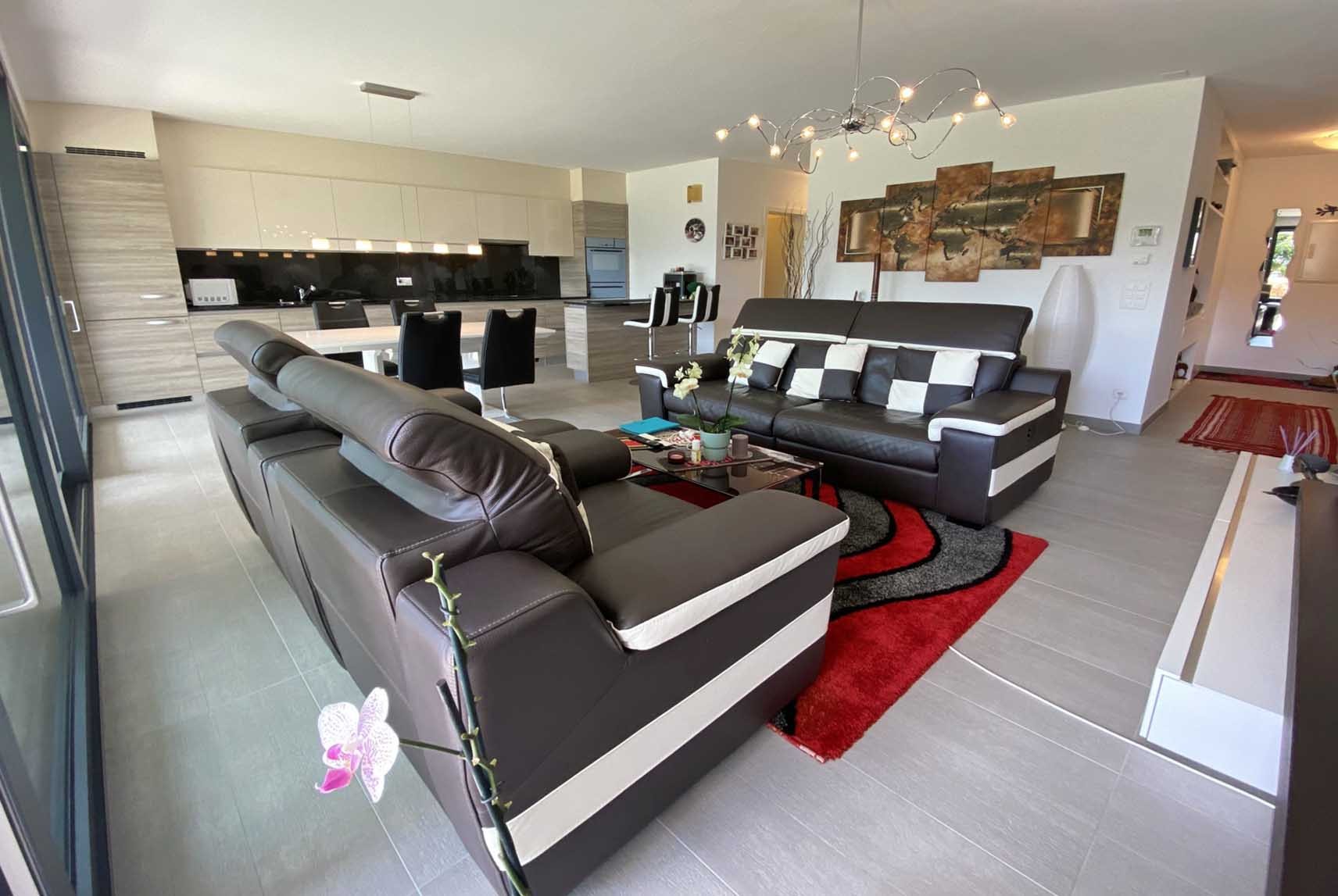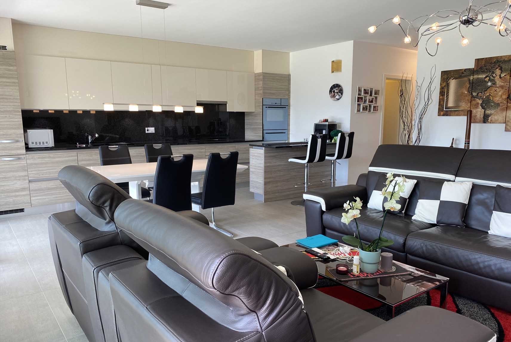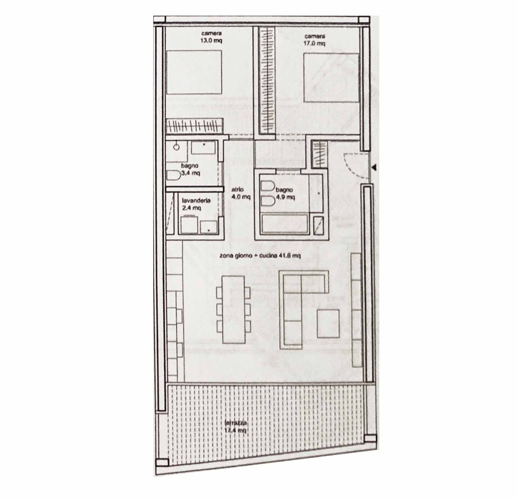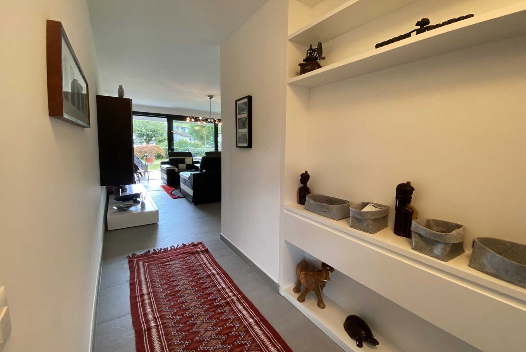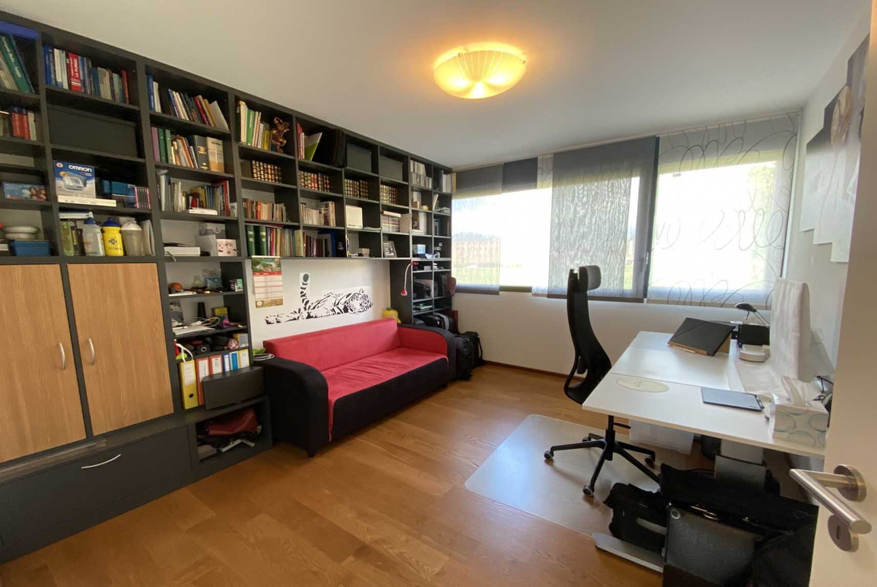 Bellissimo ingresso con armadi a muro su misura, grande zona living di 42 mq caratterizzata da eccellente luminosità, grazie alle tre grandi finestre scorrevoli orientate a sud che si affacciano sulla terrazza ed il giardino.