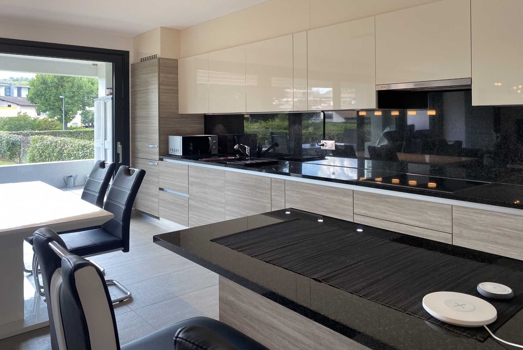 Tutto l'arredamento su misura è in vendita a 30'000 CHF, è assegnata una cantina di 6 mq ed un posto auto interno all'autorimessa a 50'000 CHF, esclusi dal prezzo di vendita, con presa di corrente adatta a ricaricare una macchina elettrica.