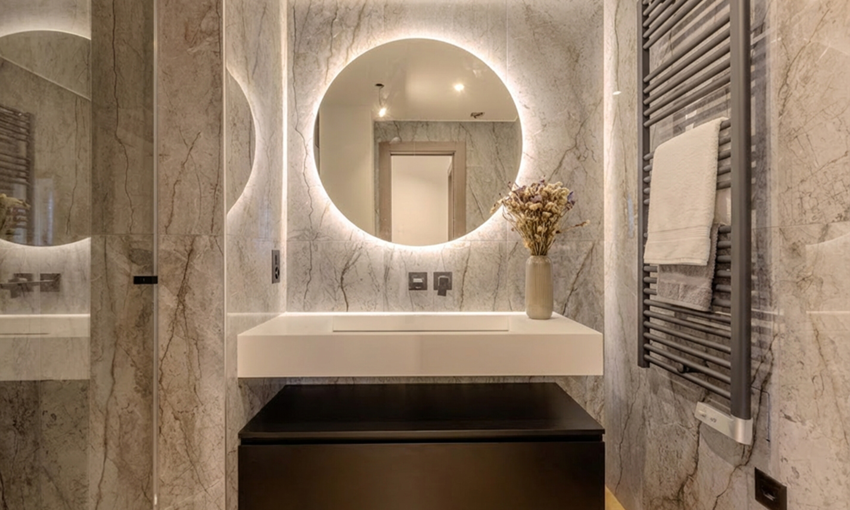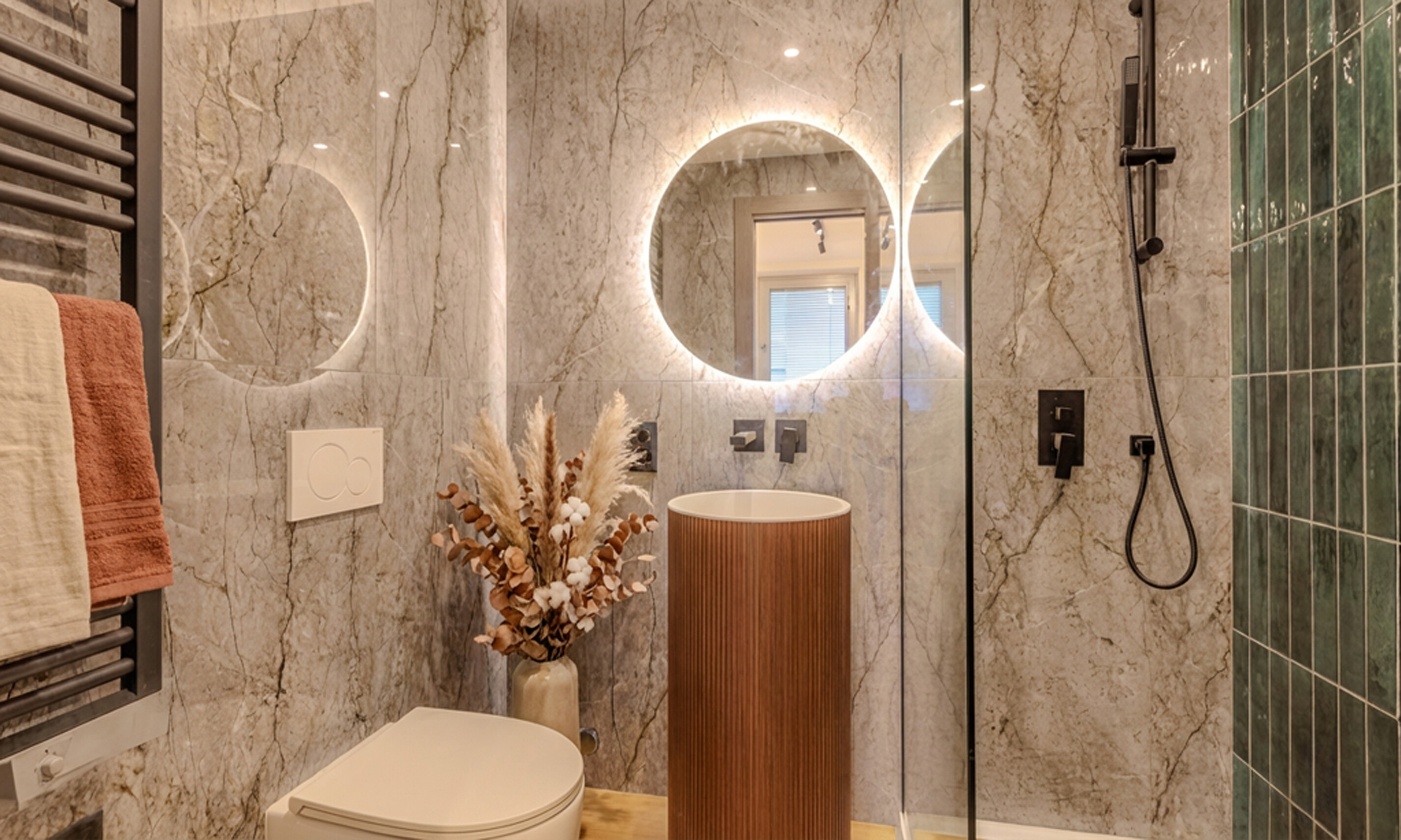 Elettrodomestici e sanitari delle migliori marche, pavimentazione in parquet a listoni.