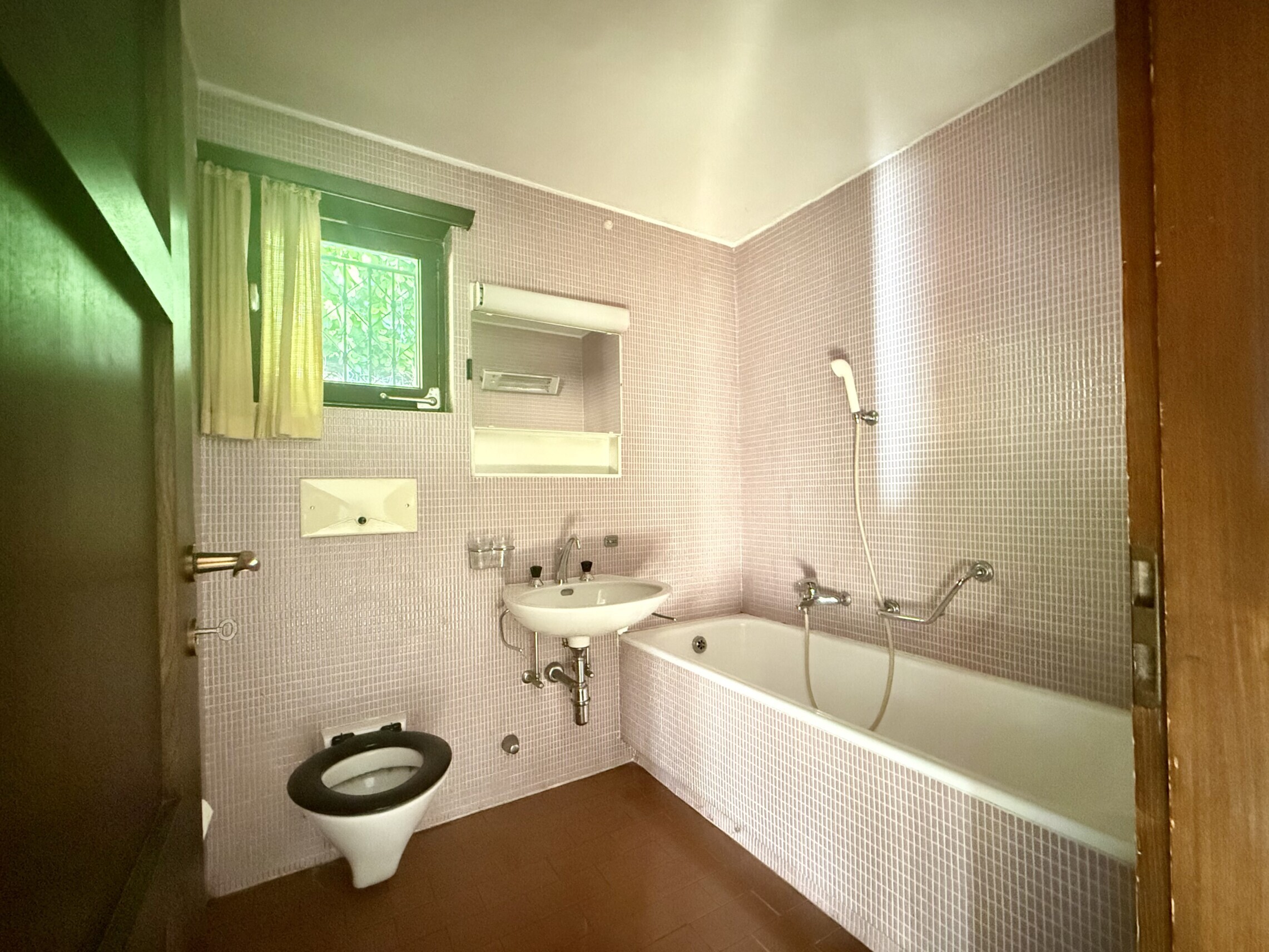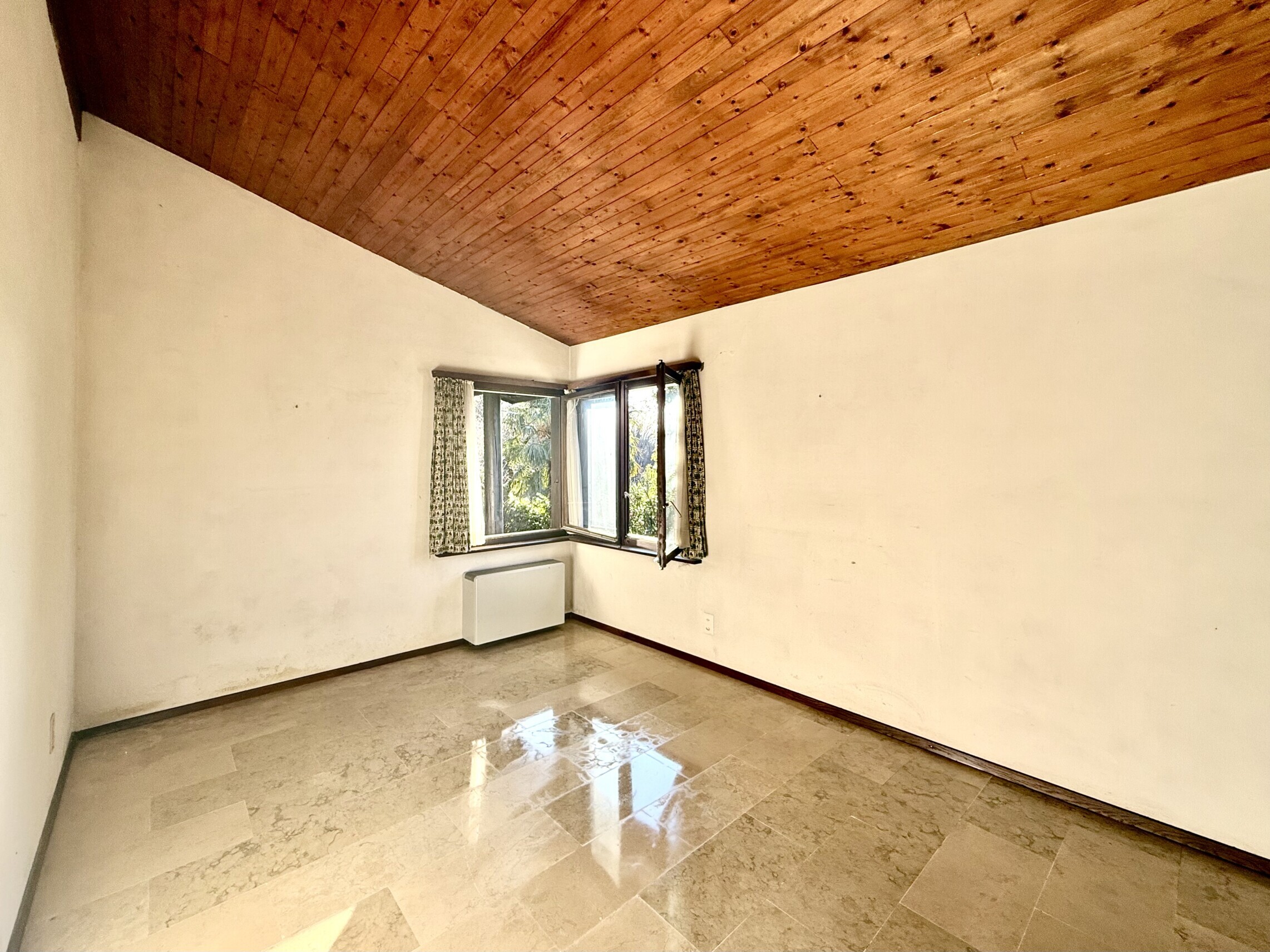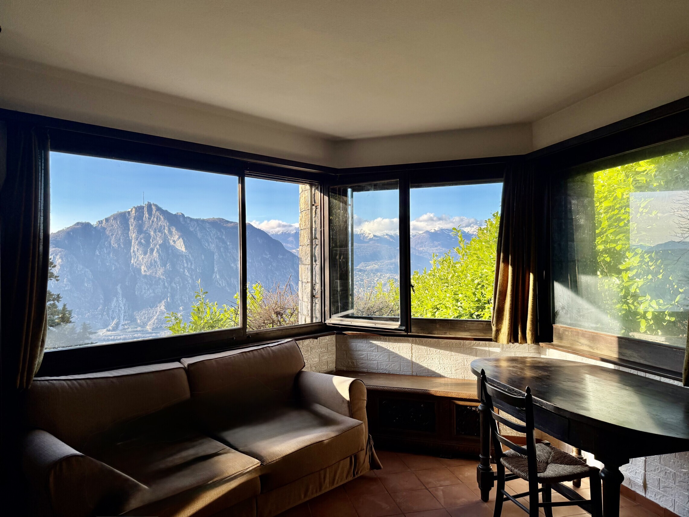 Gli infissi originali in legno sono molto ben tenuti con doppi vetri.