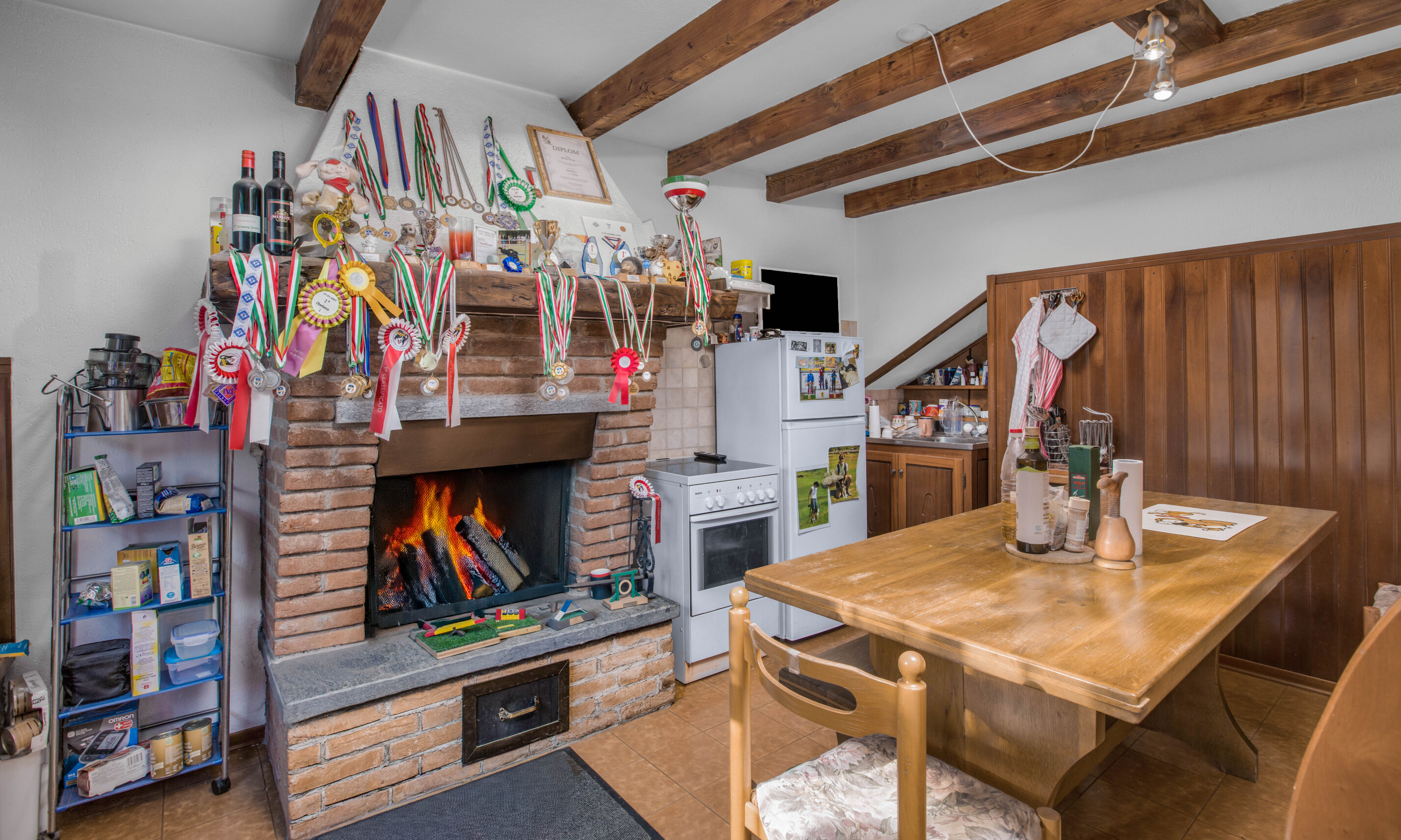 Il riscaldamento è garantito da una caldaia a gasolio/nafta con distribuzione tramite termosifoni, mentre gli infissi sono in legno con vetro singolo.