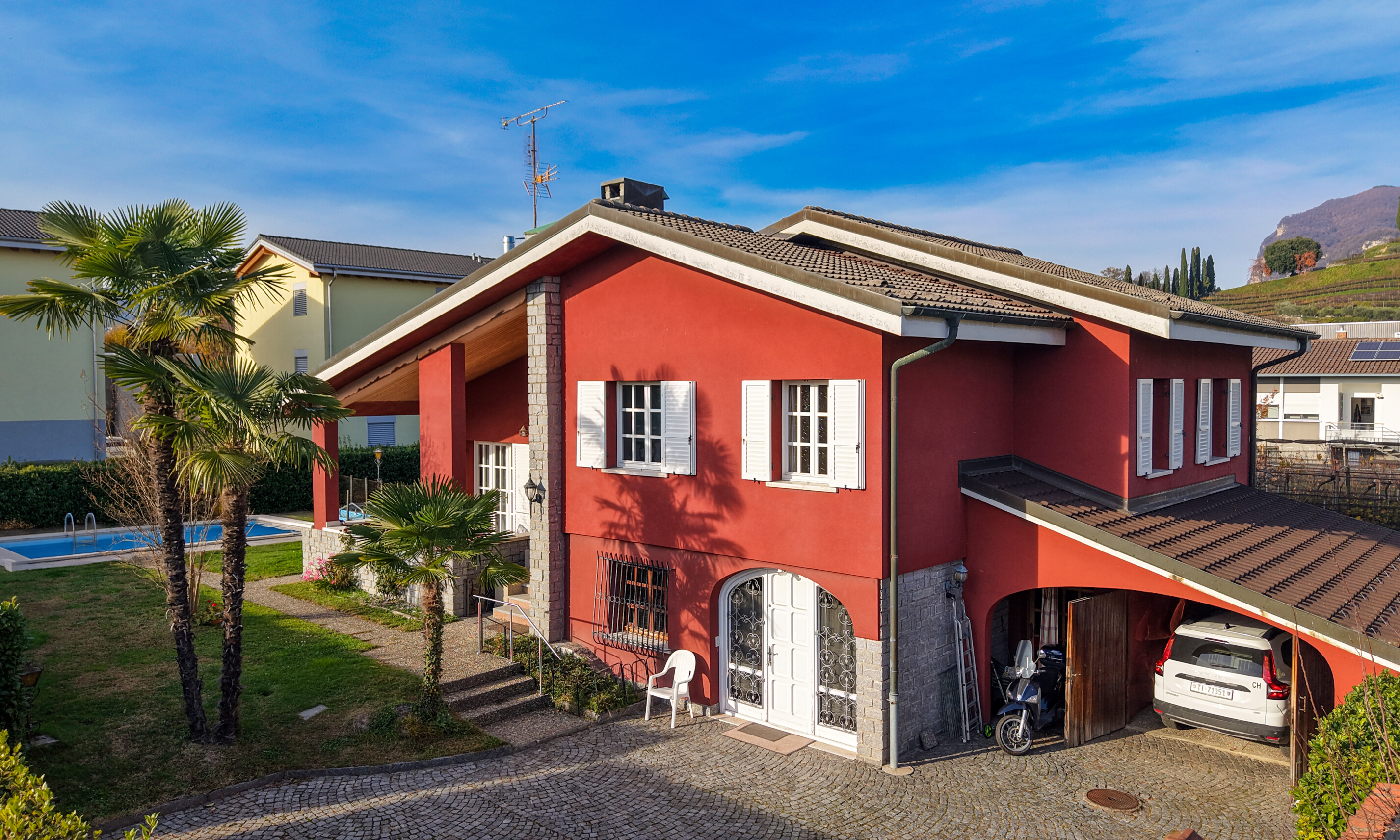 Questa villa a Coldrerio rappresenta la soluzione ideale per una famiglia che desidera vivere in spazi ampi, circondata dalla tranquillità di un contesto verde e riservato, senza rinunciare alla vicinanza ai servizi e alla comodità dei collegamenti. Un luogo perfetto per godere ogni giorno di comfort, privacy e momenti di relax con amici e familiari nel giardino con piscina.