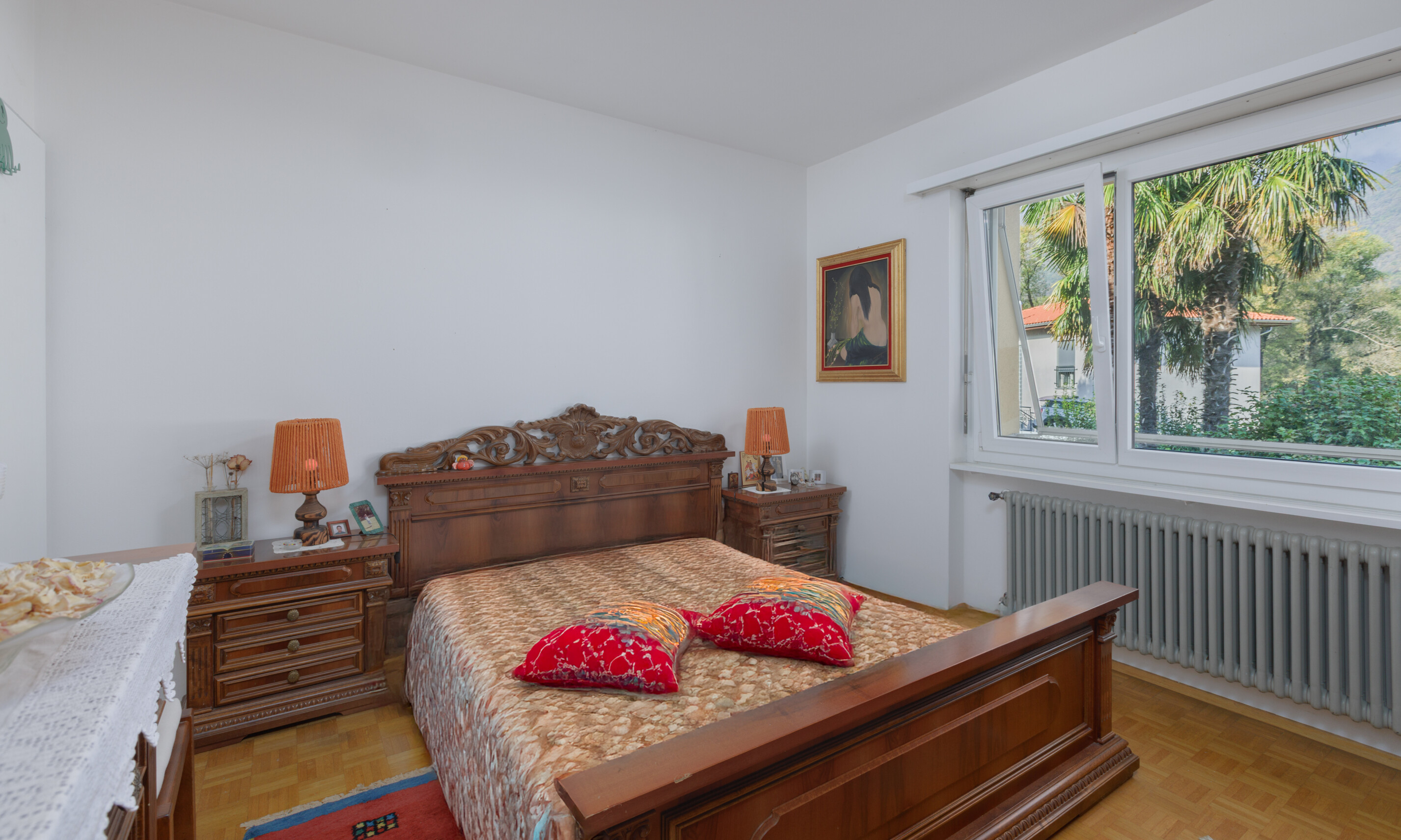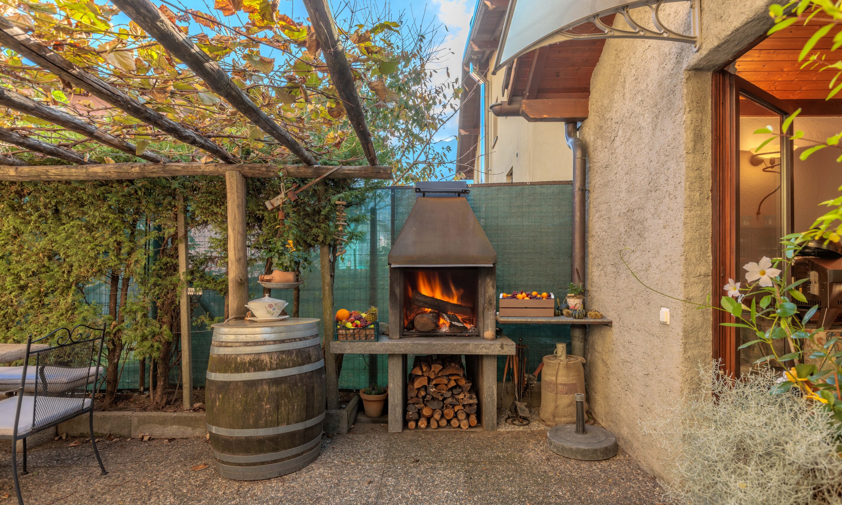La casa dispone di un ampio giardino recintato ben curato con impianto di irrigazione, piantumato con alberi da frutto e ornamentali, viti e un orto, una pergola con tavolo e panche in granito ticinese e una piccola grotto con camino.