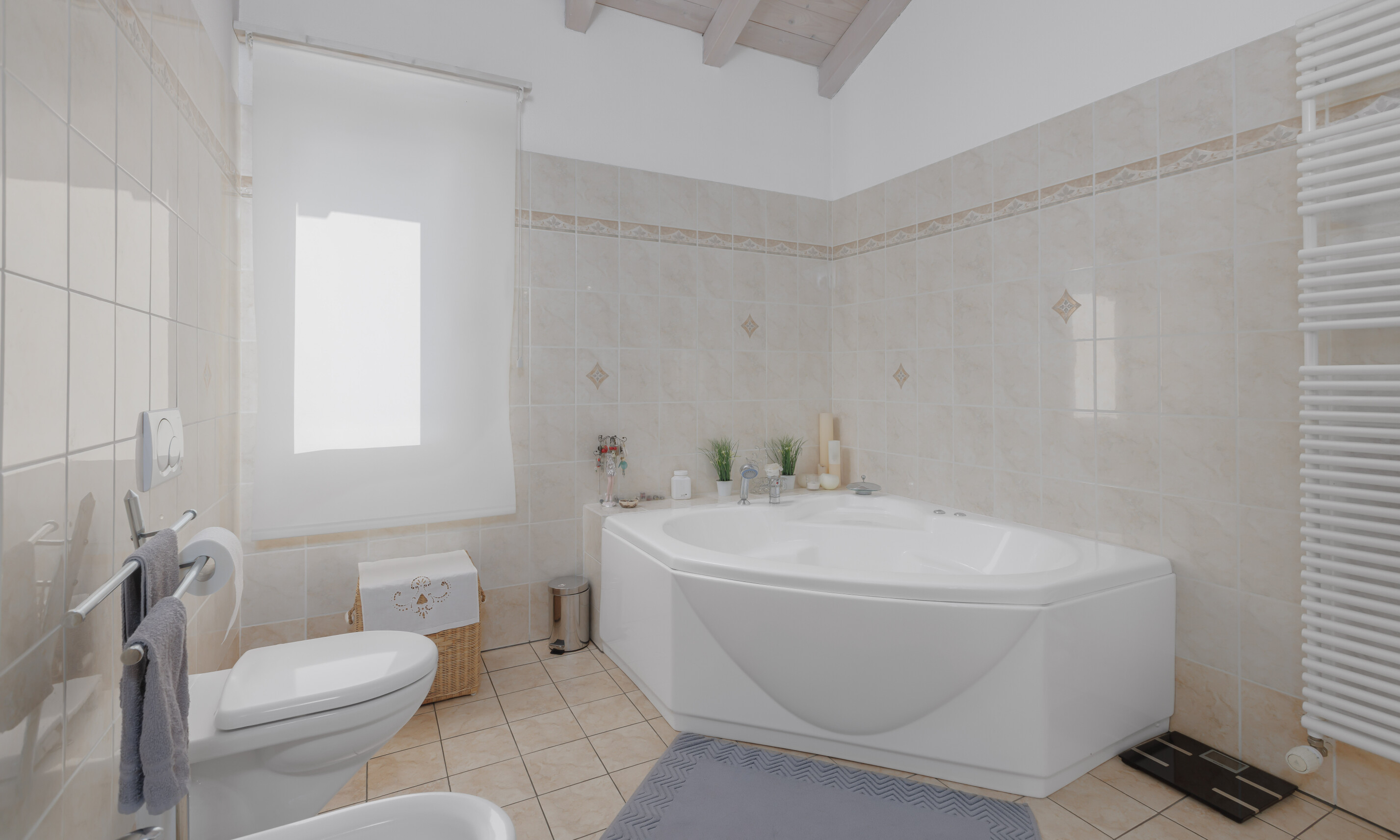 Tramite un accogliente porticato accediamo al PIANO TERRA con un ampio disimpegno, tre spaziose camere da letto, un bagno finestrato con doccia idromassaggio e una grande zona living open space con cucina a vista.