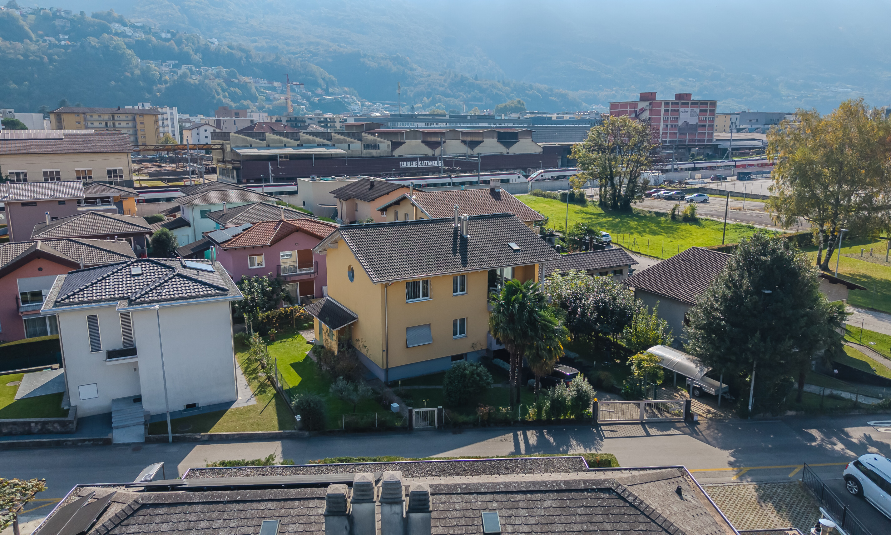 In una posizione tranquilla e ben collegata a Giubiasco, sorge questa splendida casa bifamiliare circondata da un rigoglioso giardino, un vero gioiello per chi cerca spazio, comfort e privacy.
