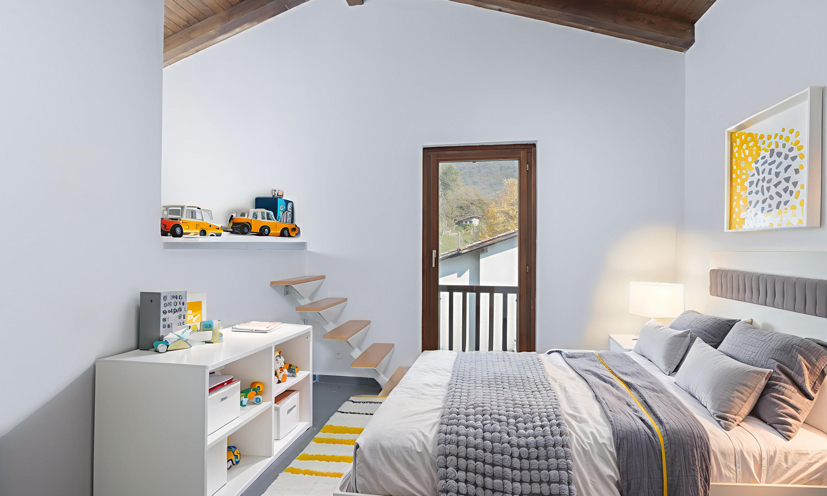 Il sistema di riscaldamento a pompa di calore aria-aria, abbinato alle serpentine a pavimento e agli infissi in PVC con vetri doppi, garantisce un ambiente sempre alla temperatura ideale.