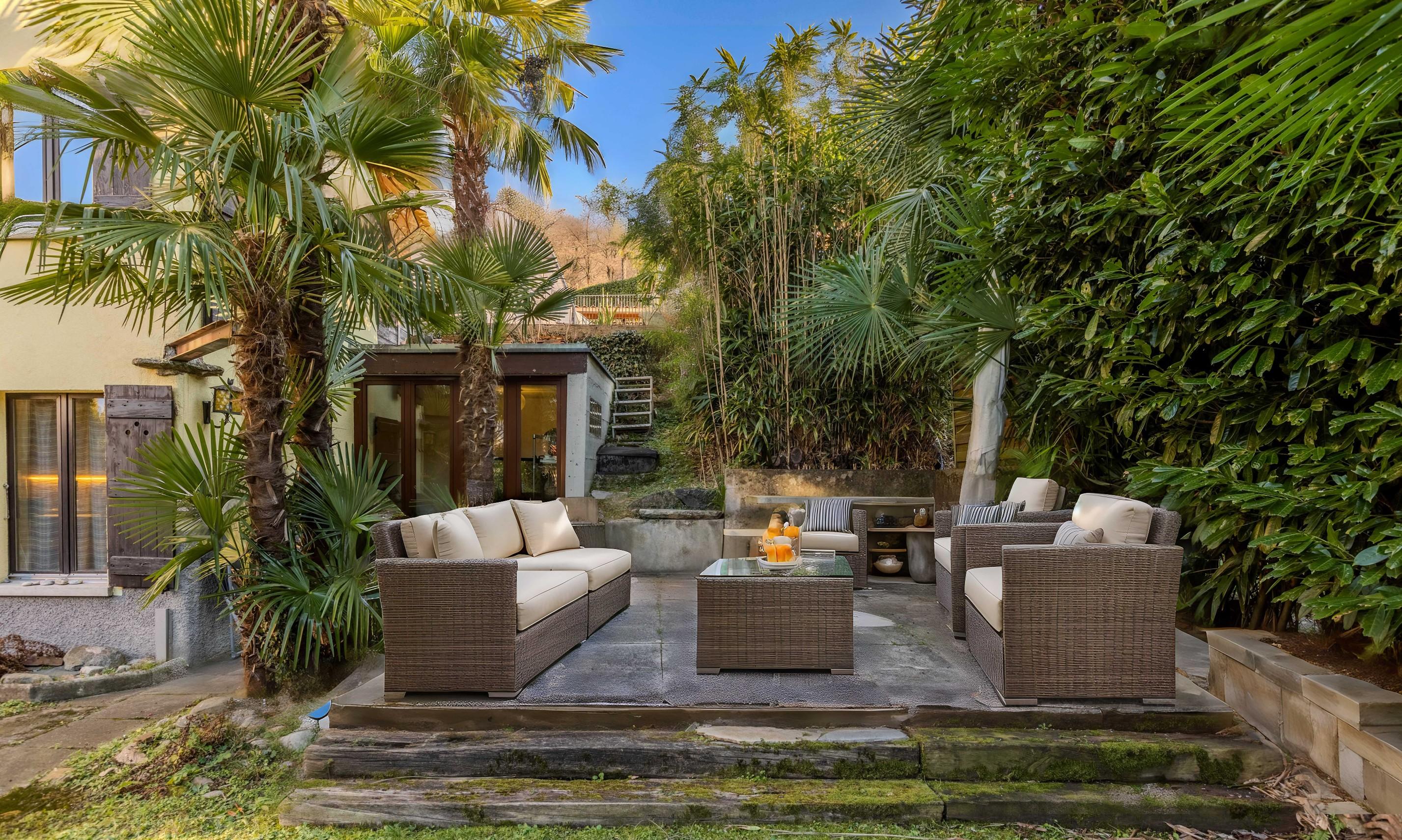 Il giardino privato di 400 mq offre un'oasi di verde, perfetta per momenti di relax all'aria aperta e per piacevoli incontri conviviali. La casa è dotata di pratiche funzionalità, come un deposito attrezzi e una lavanderia interna, che semplificano la vita quotidiana.