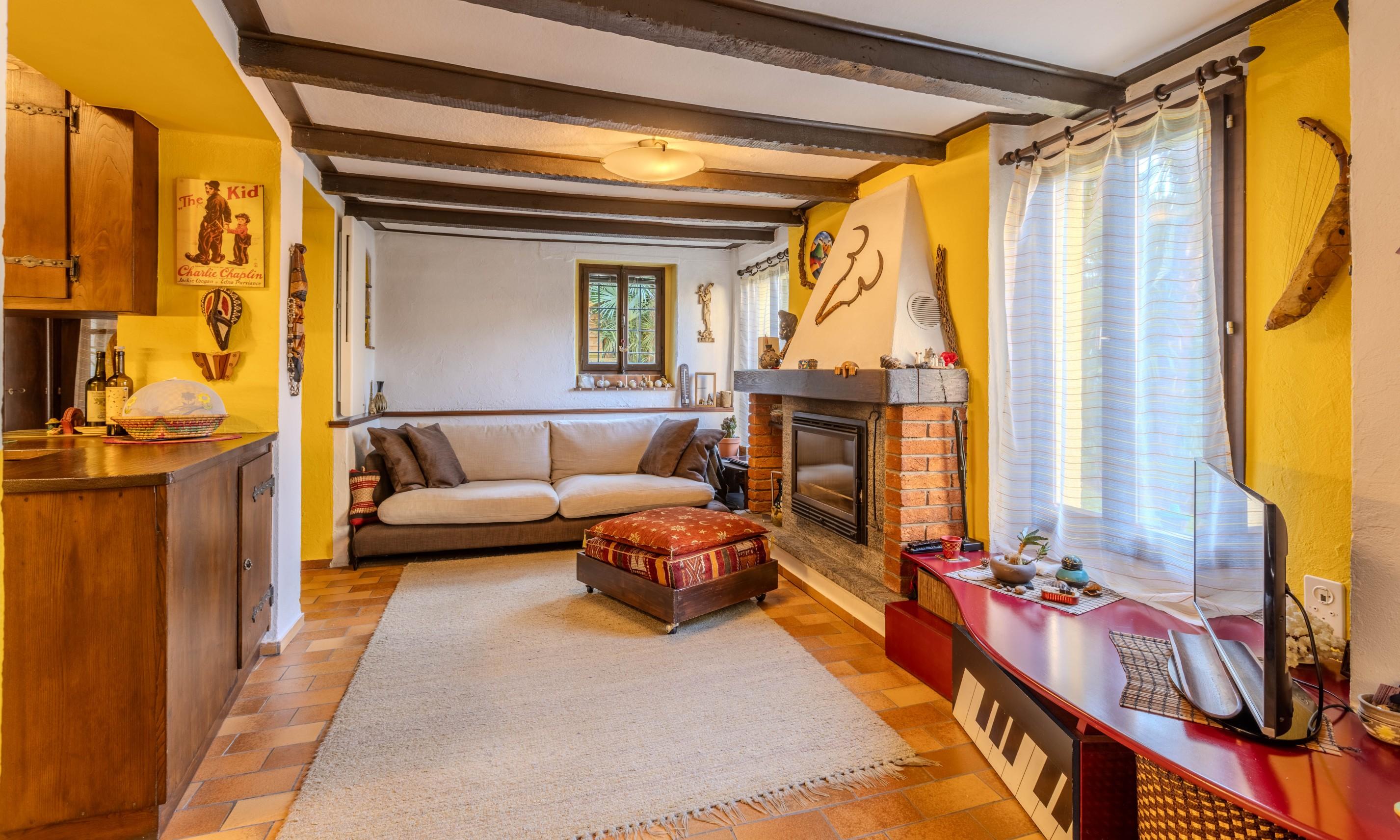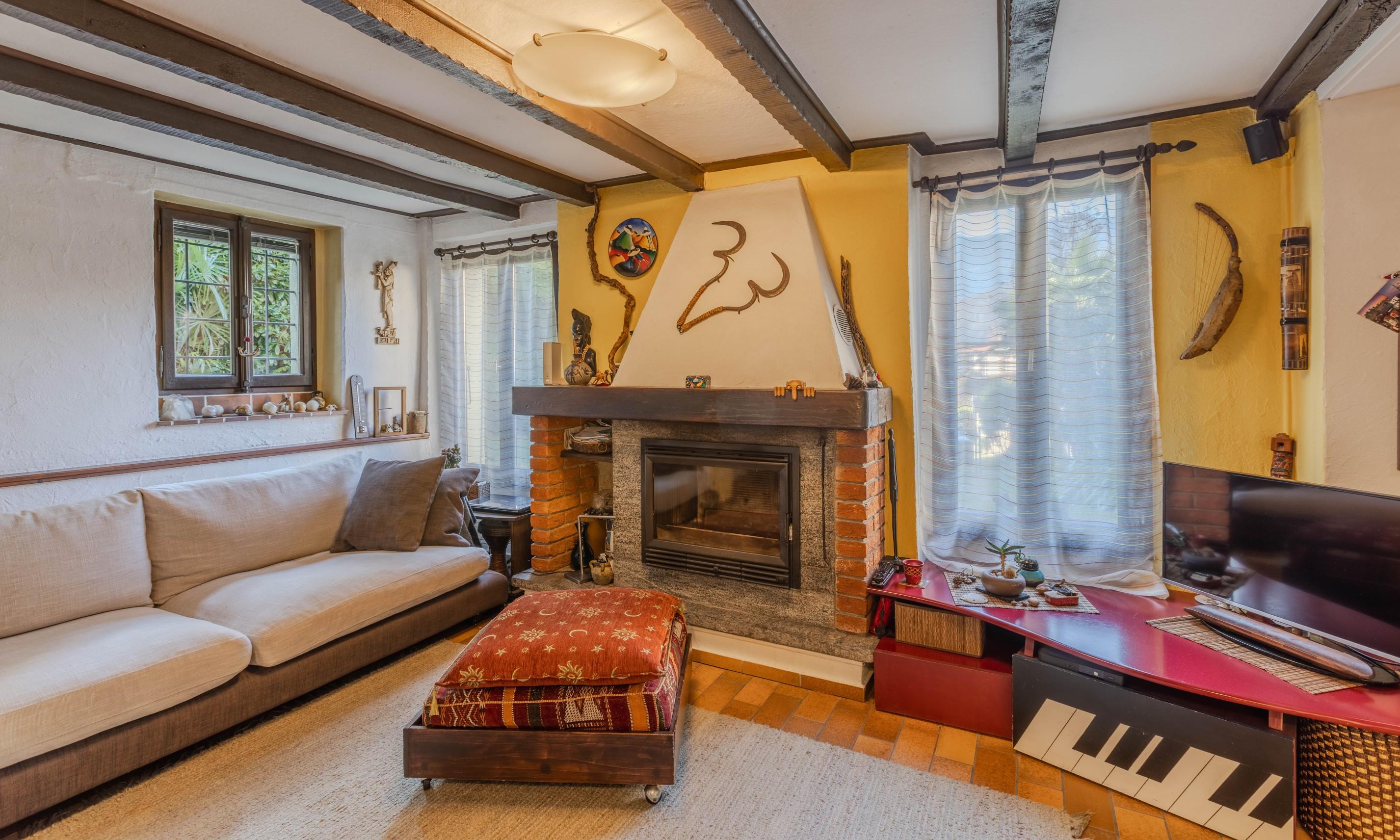 La vivibilità degli interni è arricchita da un delizioso camino, ideale per creare un'atmosfera calda e accogliente.