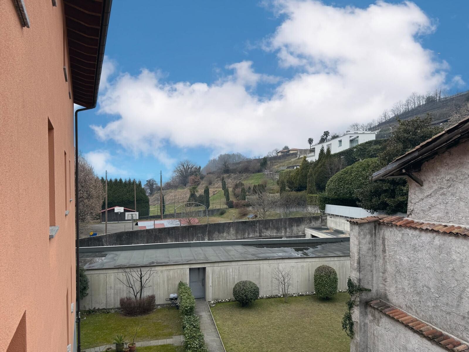 Completano la proprietà una cantina al piano terra inclusa nel prezzo e un posto auto esterno coperto, non incluso nel prezzo e del valore di 20'000,00 CHF, posto sotto tettoia in zona parcheggio recintata e accessibile sia dall'esterno che dall'interno tramite il giardino condominiale.