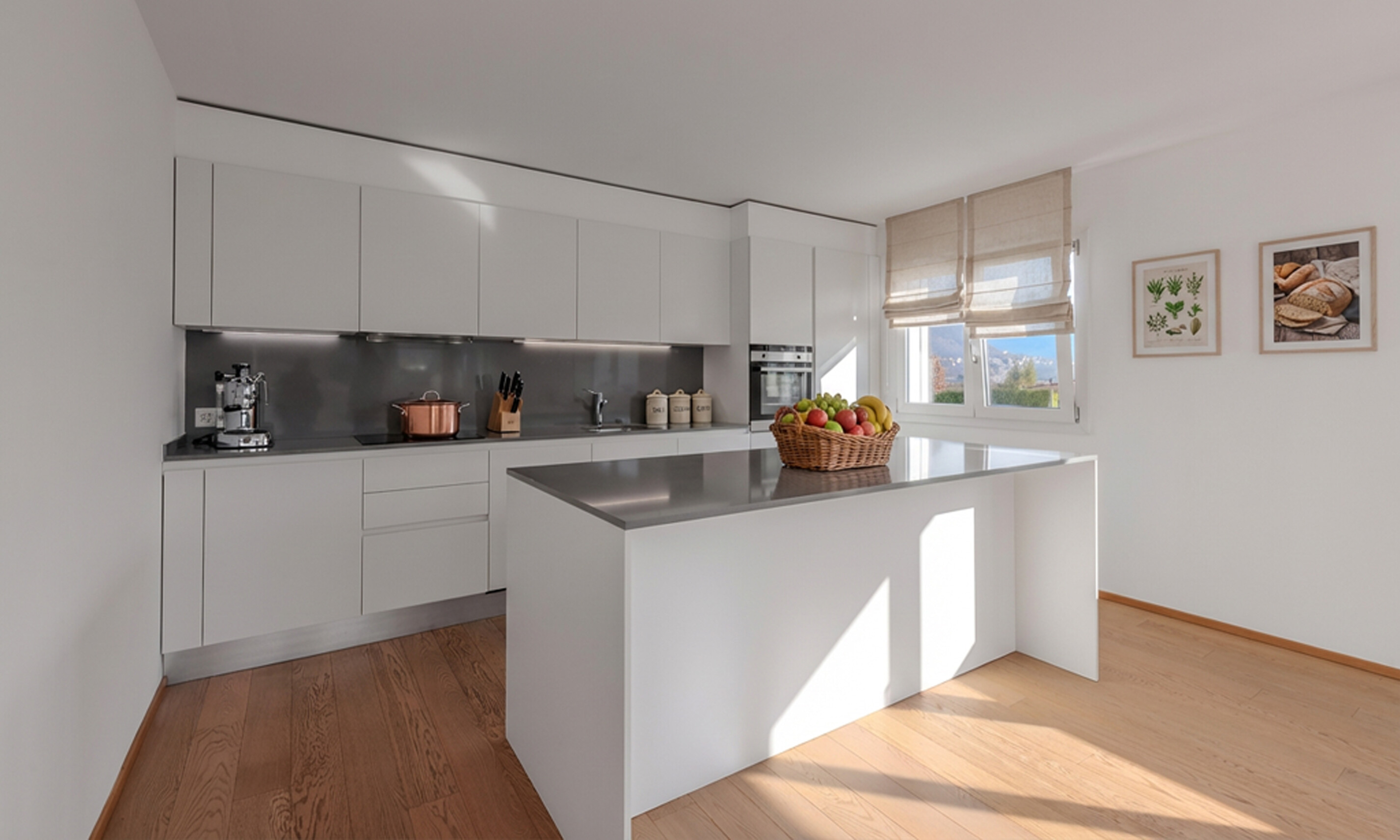 L'appartamento si distingue per gli spazi ben distribuiti, l'ottima luminosità e le finiture moderne e di qualità. La zona giorno è ampia e accogliente, con cucina a vista dotata di isola centrale e completa di elettrodomestici. Una grande portafinestra collega il living alla terrazza coperta e abitabile, creando un collegamento armonioso tra interno ed esterno. A servizio della zona giorno si trova un primo bagno finestrato con doccia.