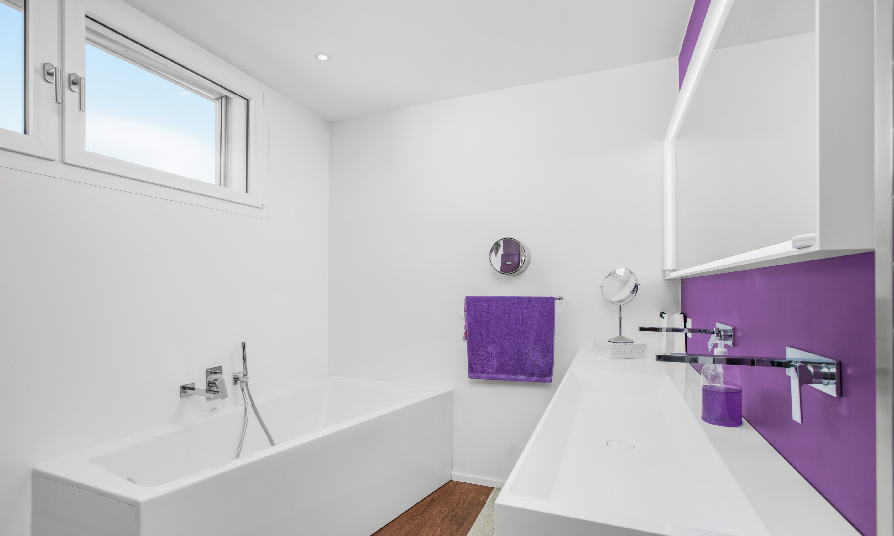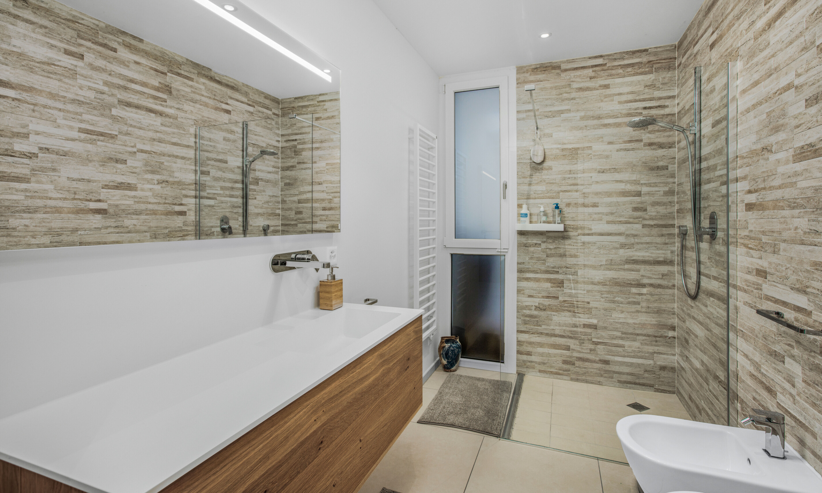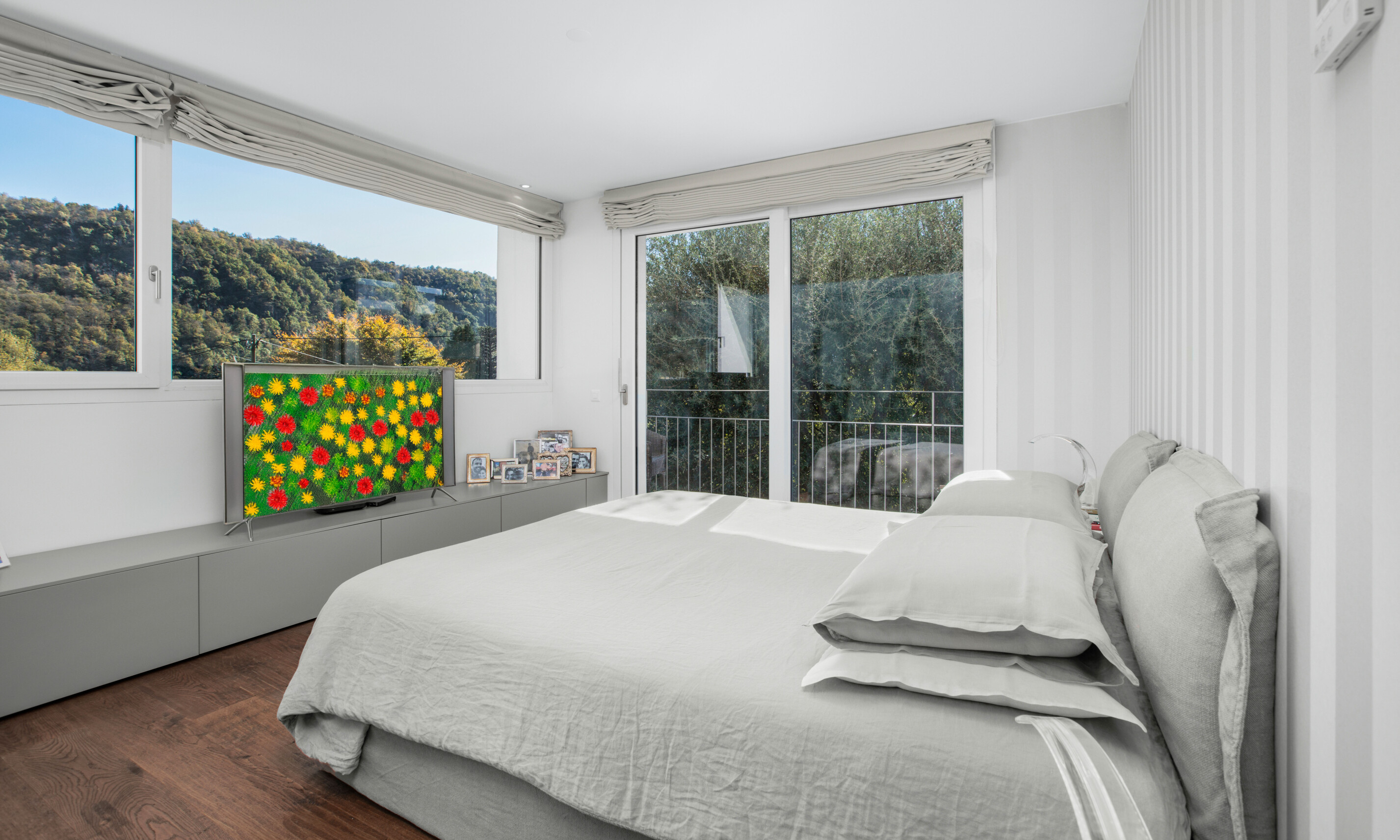 La suite padronale è un vero rifugio privato: ampia camera con grandi finestre, accesso diretto alla terrazza, collegata alla veranda coperta, spazioso locale guardaroba finestrato, un bagno finestrato raffinato con vasca di design in Corian e doccia extra-large ed il servizio wc, sempre finestrato, separato.