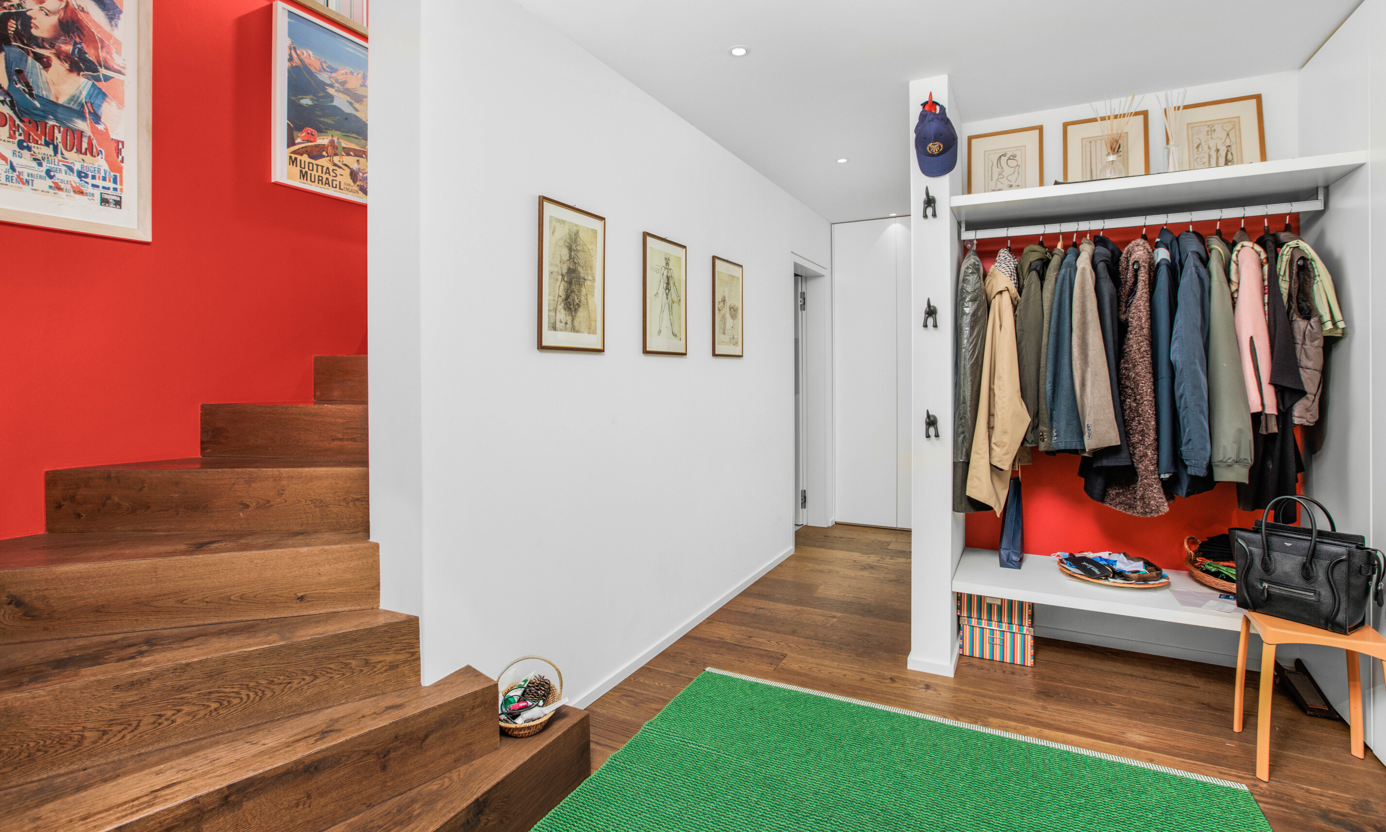 Importante atrio con capiente armadio a muro/guardaroba, grande lavanderia/stireria finestrata, loc. tecnico ed una scala raffinata che conduce al piano principale.