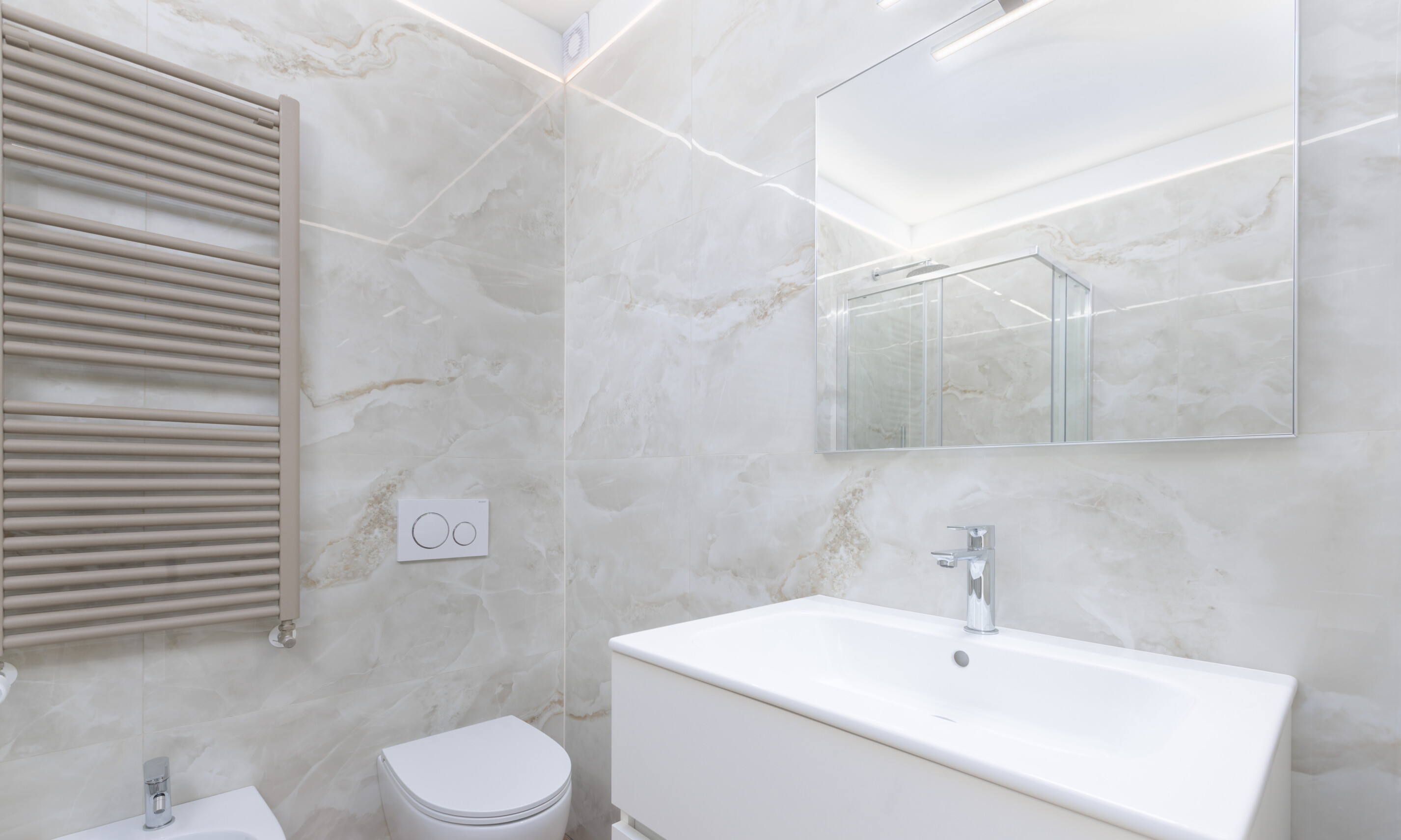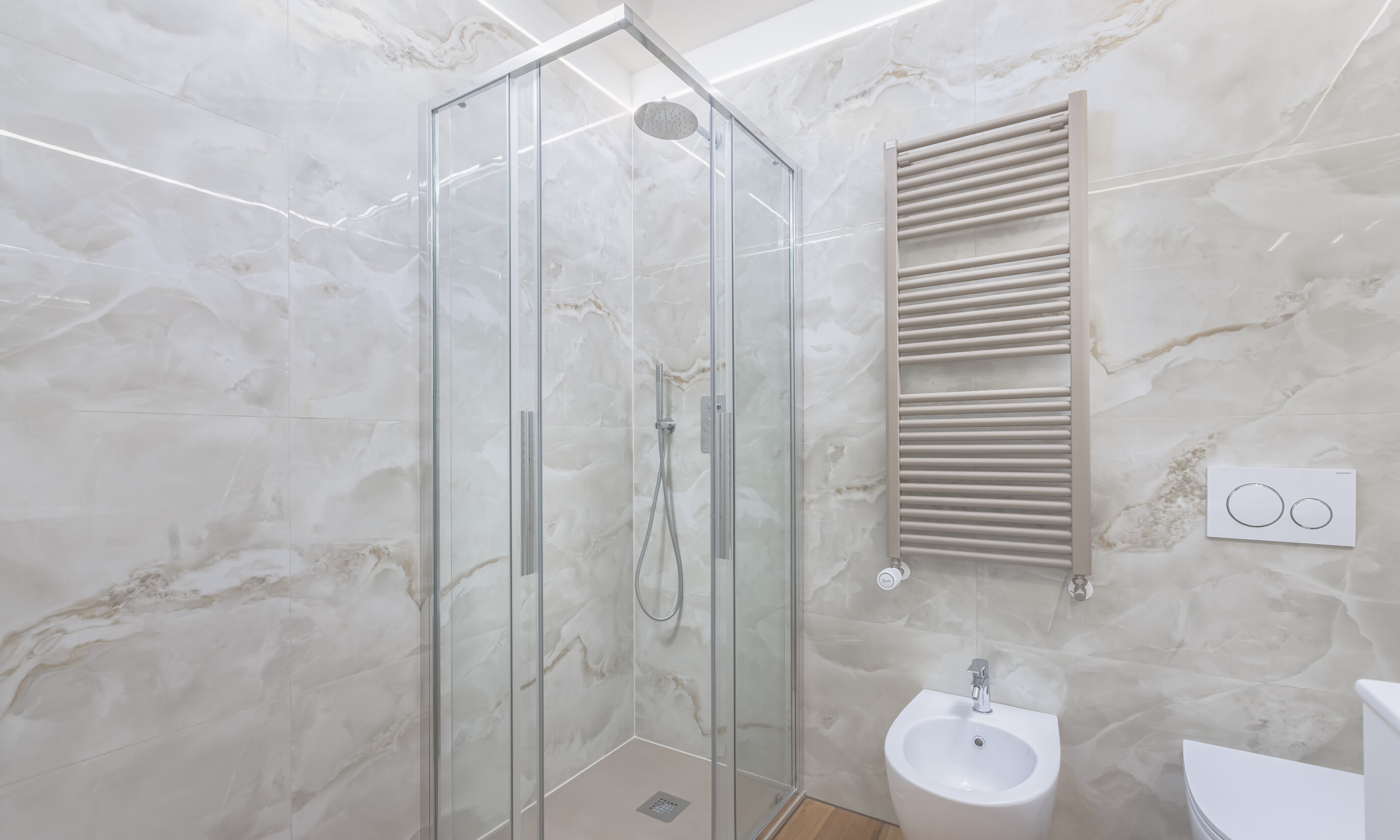 Quest'ultime sono servite da un grande bagno con doccia walk-in, bidet e attacchi per la lavatrice.