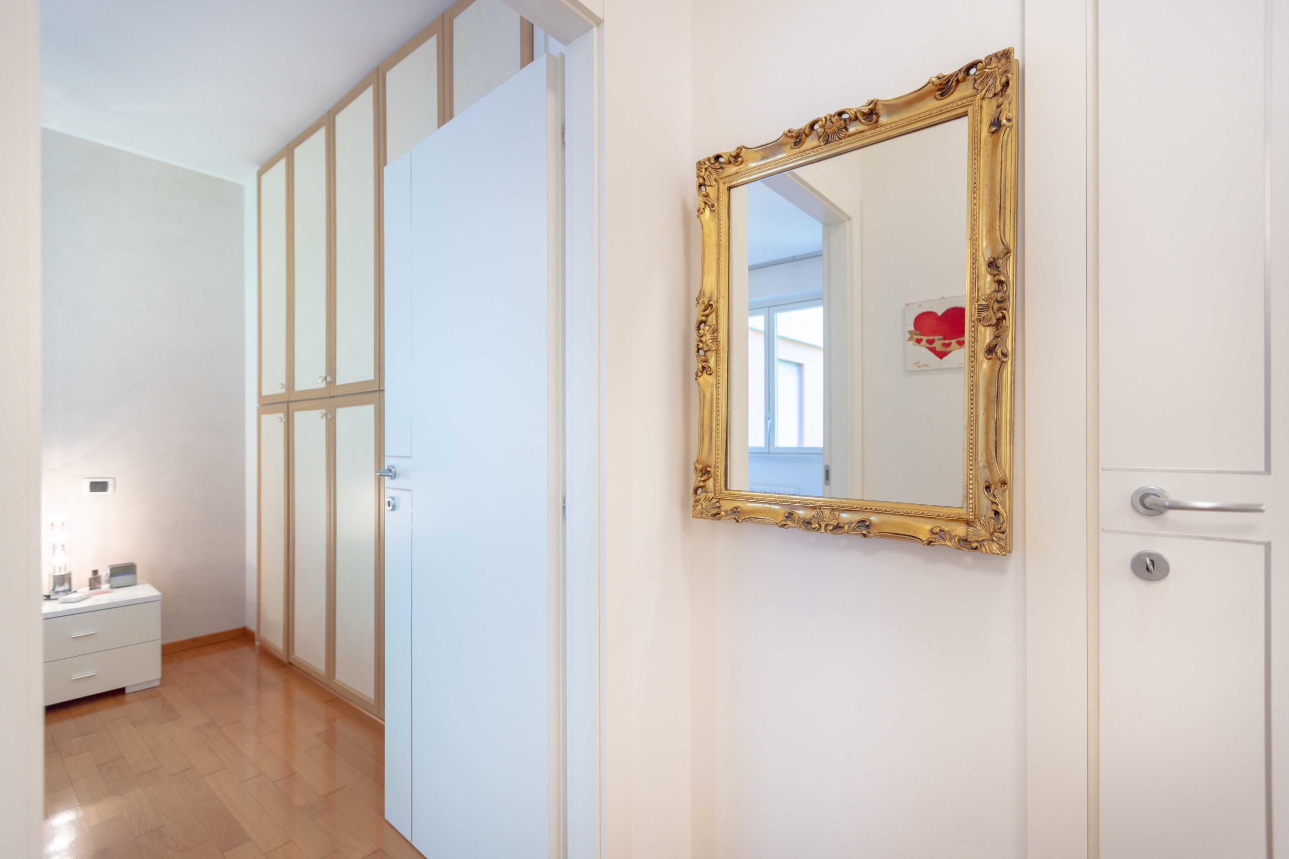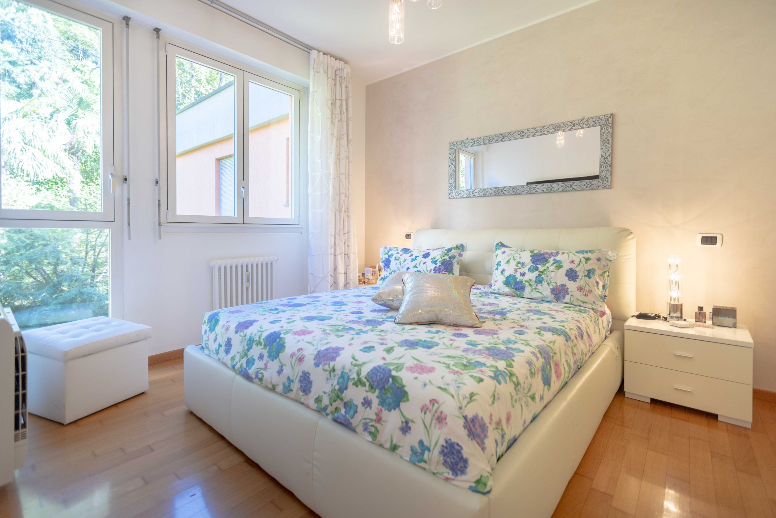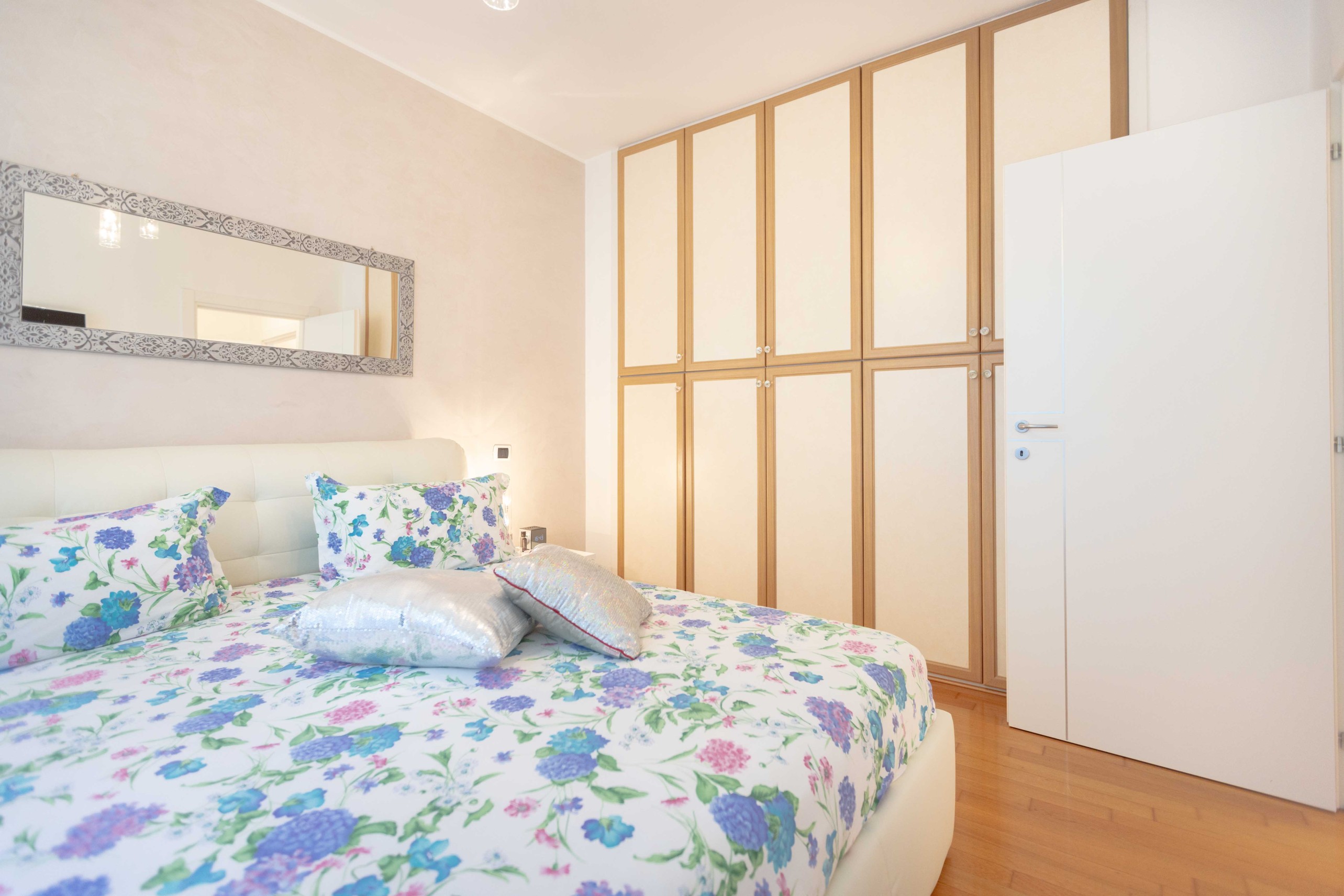 La camera matrimoniale dispone di un ampio armadio a cinque ante, mentre la seconda camera, attualmente utilizzata come cabina armadio, può facilmente essere riconvertita a studio o cameretta.