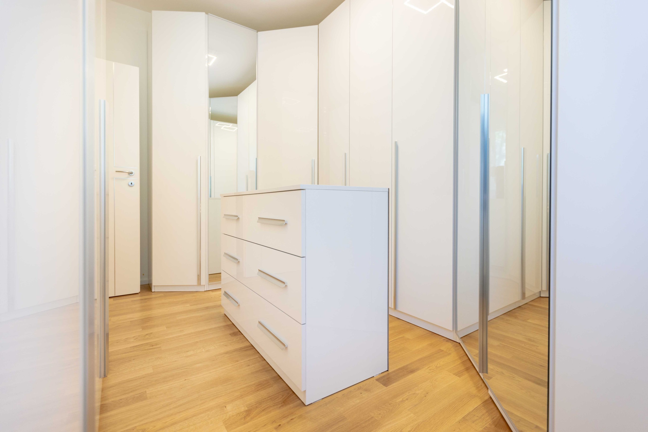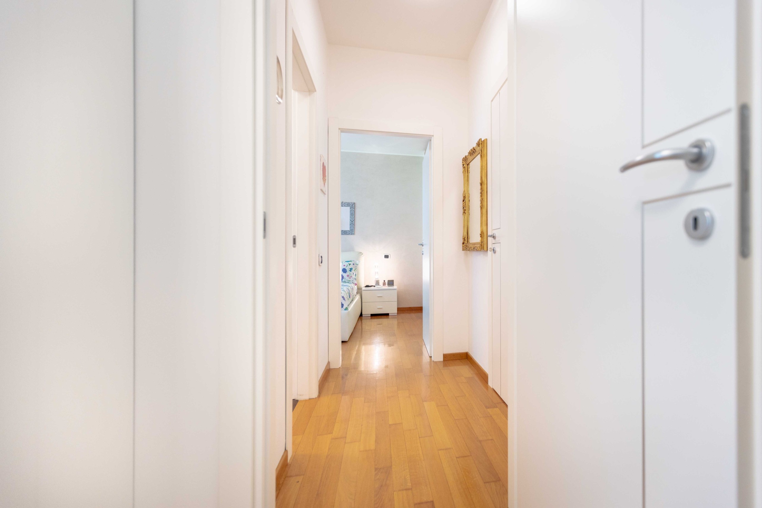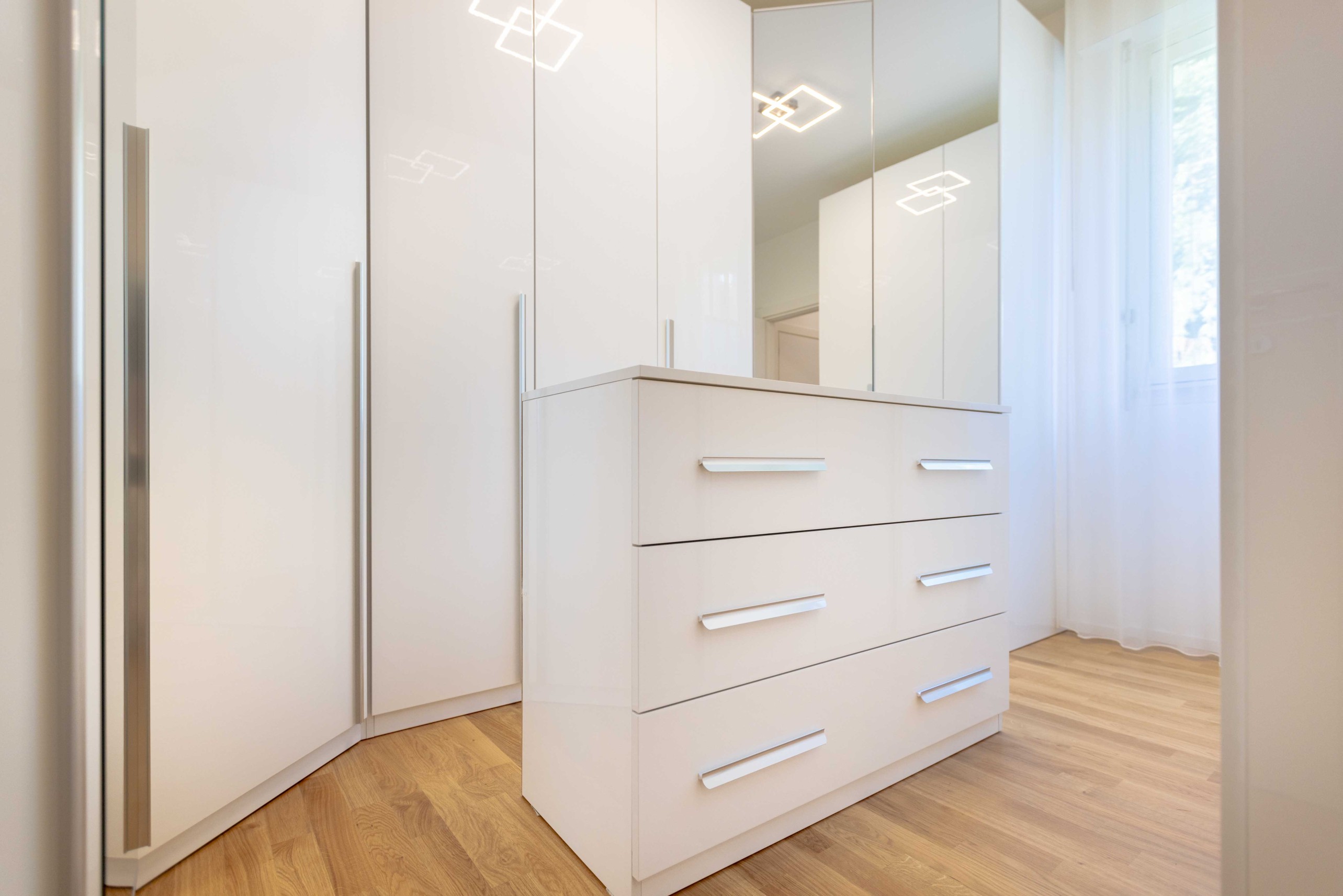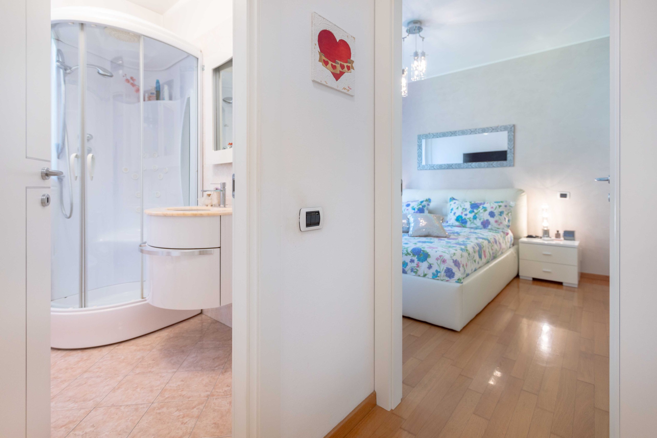 La camera matrimoniale dispone di un ampio armadio a cinque ante, mentre la seconda camera, attualmente utilizzata come cabina armadio, può facilmente essere riconvertita a studio o cameretta.