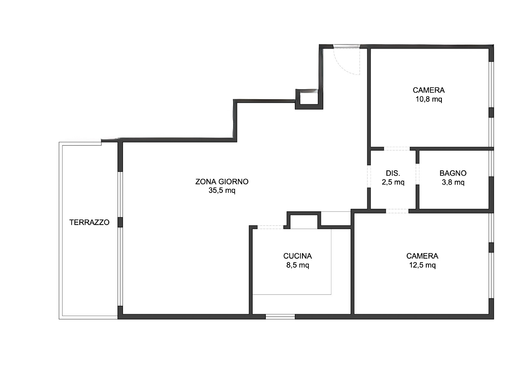 Completa il piano un bagno finestrato con doccia, luminoso e ben ventilato.