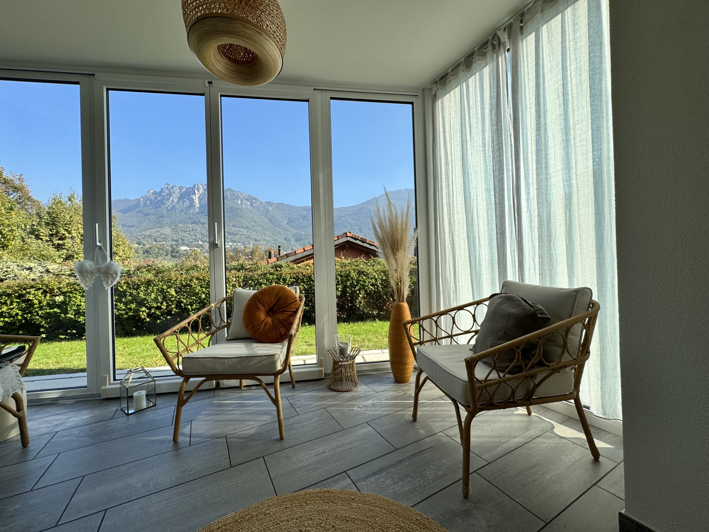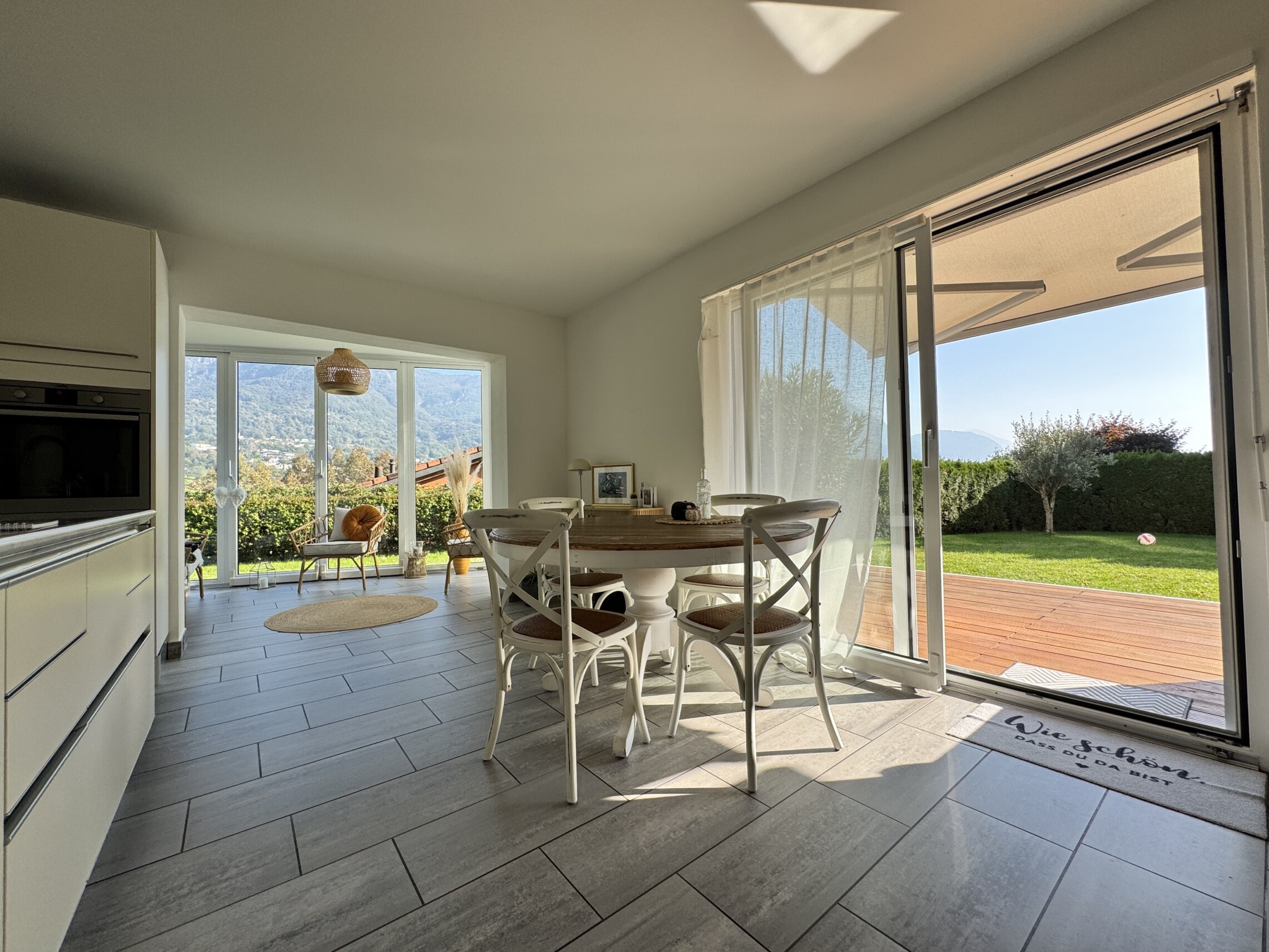 Al piano di ingresso accediamo tramite un piccolo disimpegno alla luminosa e accogliente zona living composta da un bellissimo soggiorno conviviale con camino, segue una spaziosa cucina completamente accessoriata con lavastoviglie, forno e isola centrale, sempre in questa area giorno si trova una bella veranda dalla quale si gode una rilassante vista panoramica sui monti e sul giardino e a completamento di questo livelli a servizio della zona soggiorno troviamo un wc ospiti. Dal soggiorno è inoltre possibile accedere alla stupenda area esterna del giardino, interamente pianeggiante, il quale gode di una assoluta privacy e rappresenta lo spazio ideale per coloro che hanno bambini, animali domestici e che amano organizzare cene o feste con gli amici all'aperto godendo di una posizione unica ed esclusiva.