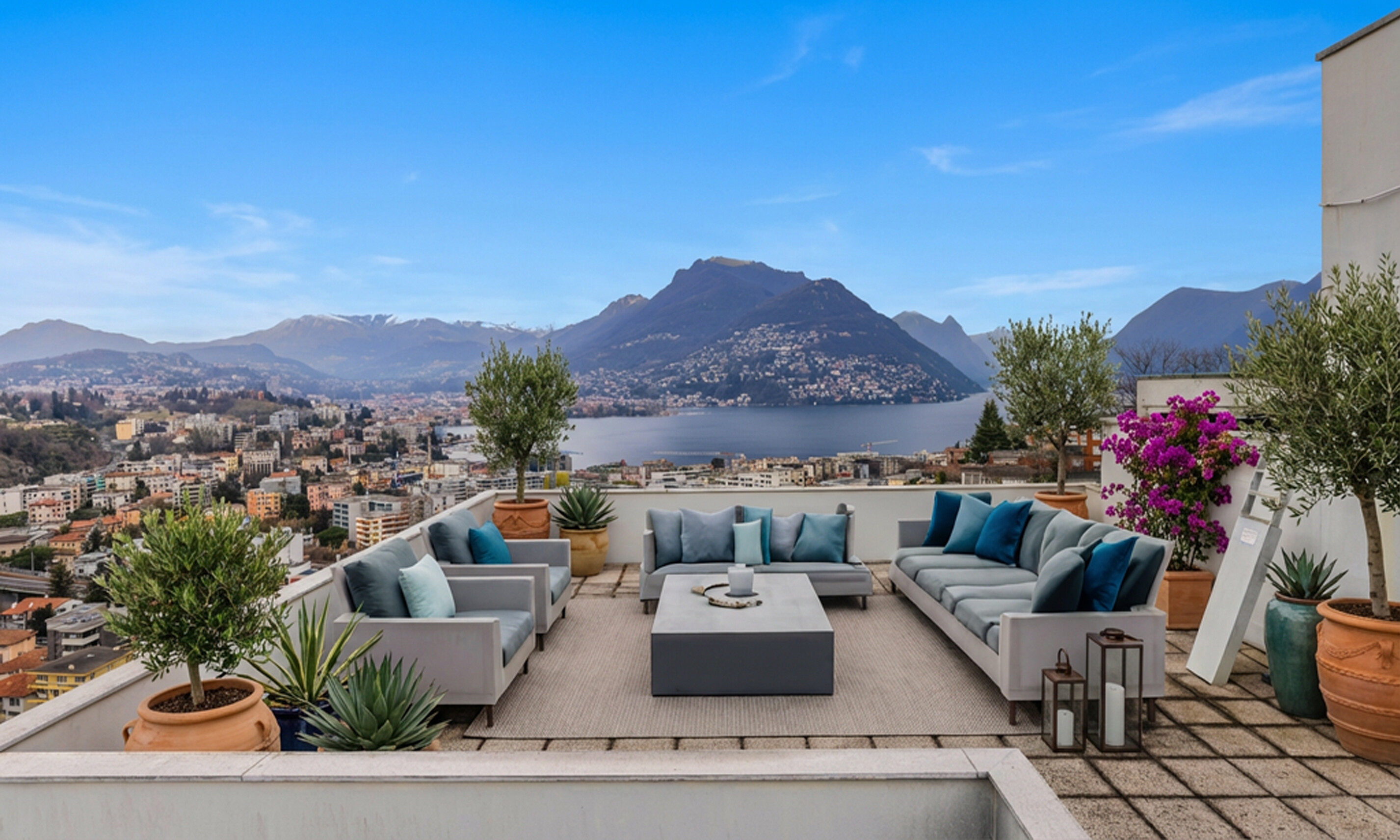 Luminoso appartamento 3.5 locali di ca. 82 mq lordi, con terrazzo coperto e vista lago, ubicato al 9° piano di una palazzina edificata negli anni '80, con doppio lift ed in buono stato di manutenzione, in una zona comoda al centro ed agli svincoli autostradali, nel comune di Lugano Pazzallo.
