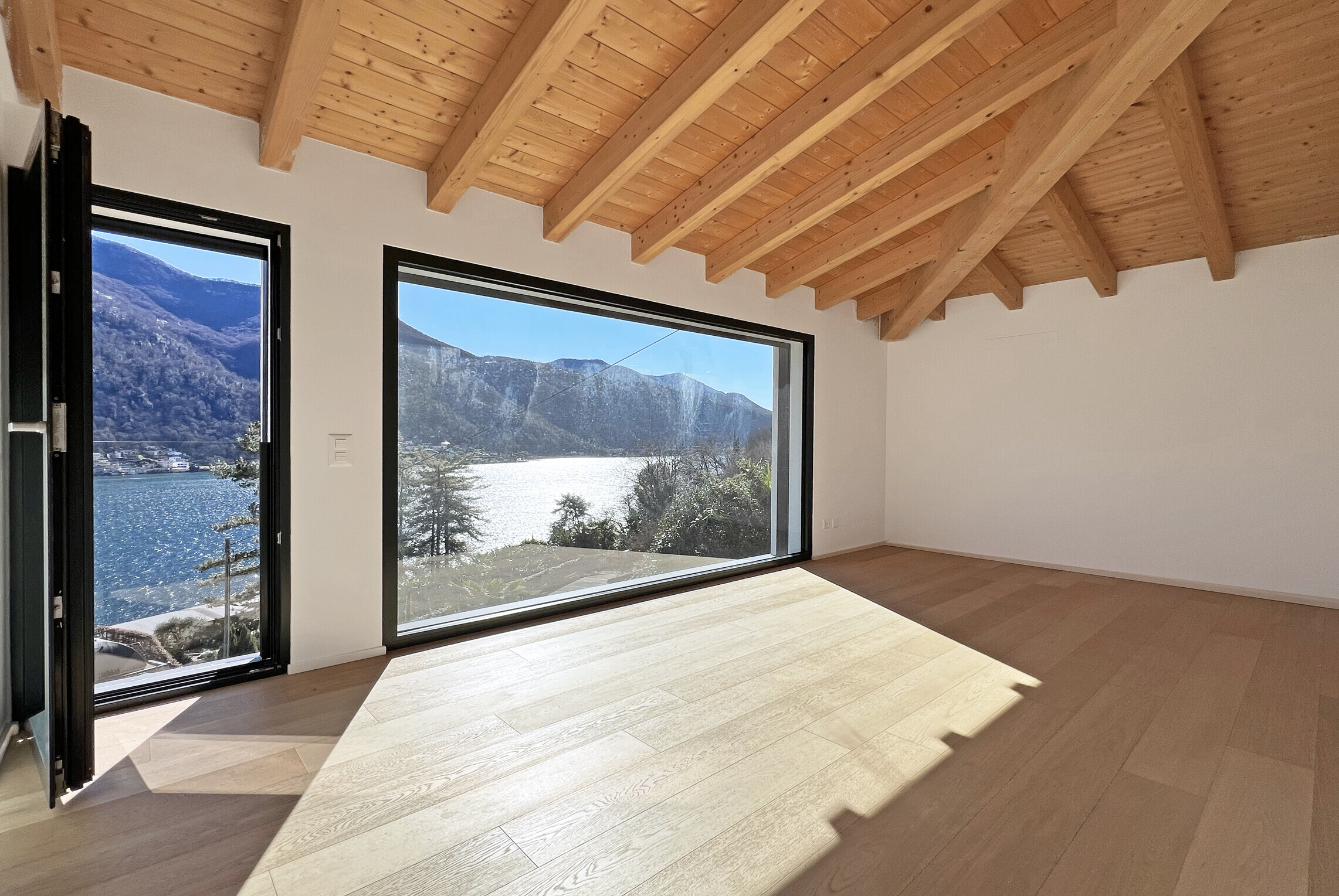 La villa si sviluppa su più livelli collegati da ascensore privato. Al piano superiore si trova la zona notte padronale: ampio ingresso, due camere da letto di generose dimensioni servite da un bagno con doccia e una splendida master bedroom con bagno en suite dotato di vasca, doccia e cabina armadio. Tutte le camere sono caratterizzate da vetrate dal pavimento al soffitto, che valorizzano in modo unico la vista lago e la luminosità.
