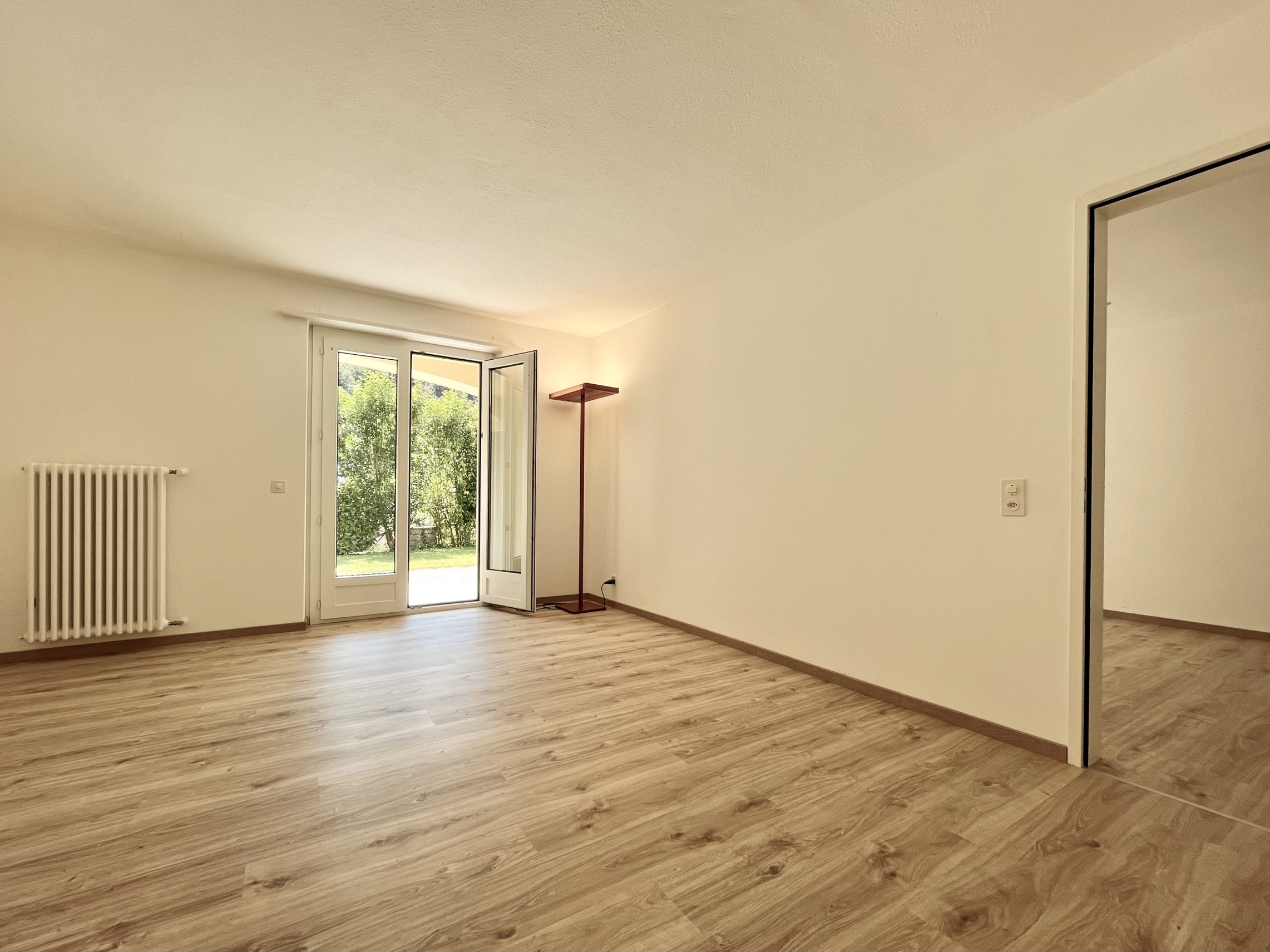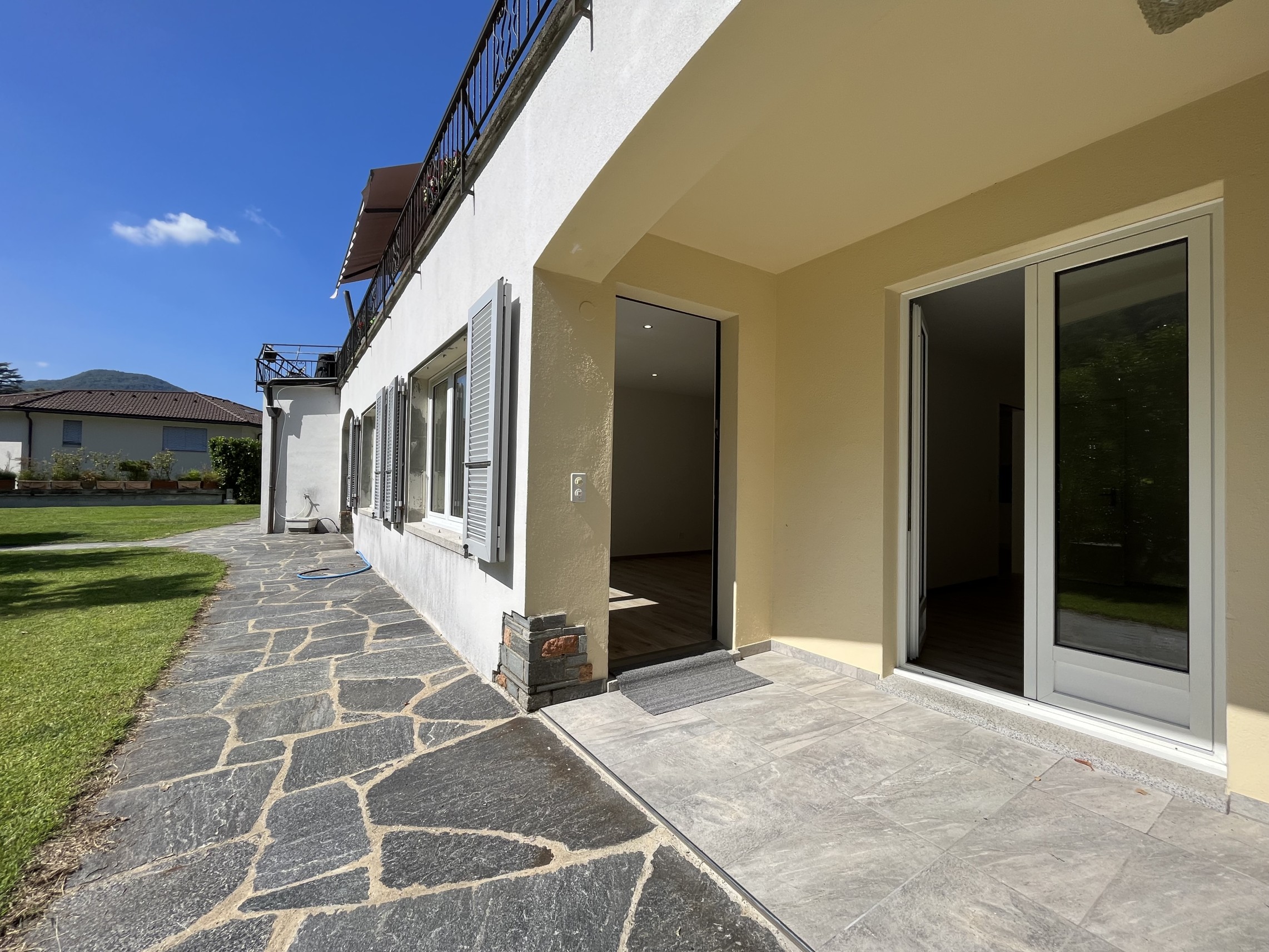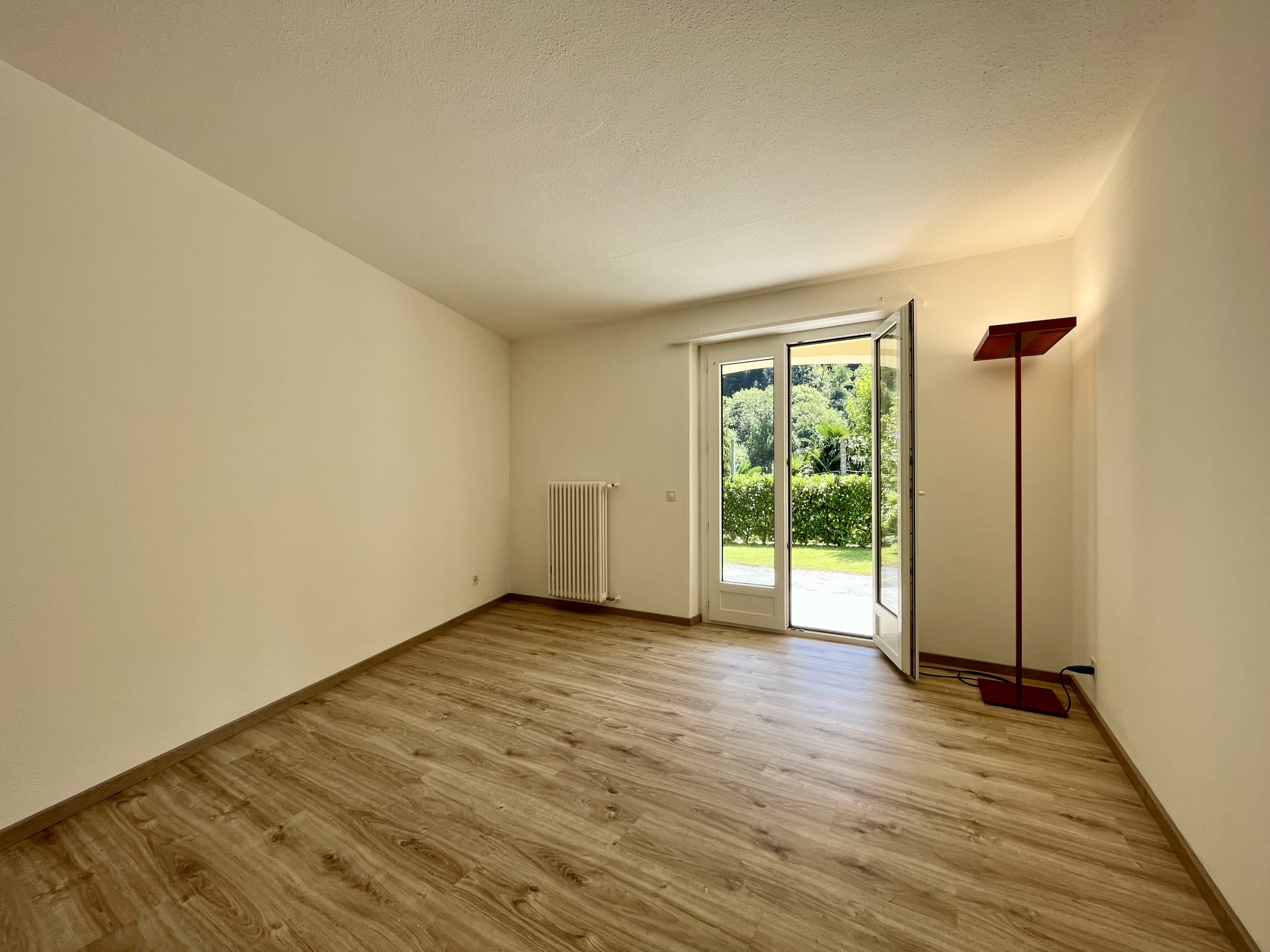 Moderno appartamento 2.5 locali di circa 55 mq lordi, con giardino privato di 55 mq ca., situato al piano terra in una villa degli anni '50 divisa in soli 5 appartamenti con giardino, palestra e piscina condominiale, ben posizionata a 150 m dall'accesso al lago nel comune di Barbengo.
