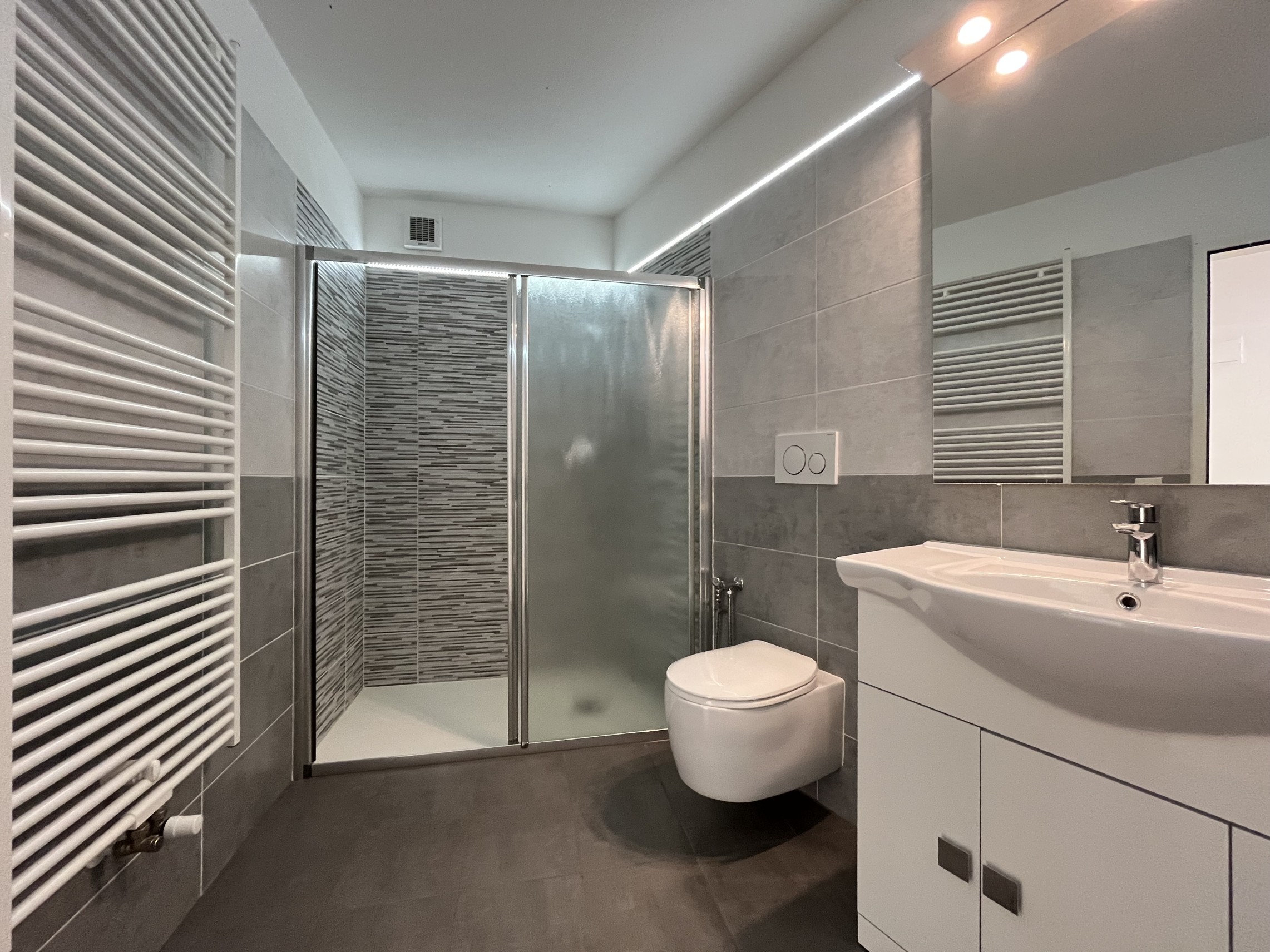 L'appartamento è stato appena ristrutturato completamente con materiali di ottima qualità, presenta serramenti in PVC a doppio vetro, cucina, bagno e porte interne rinnovati.