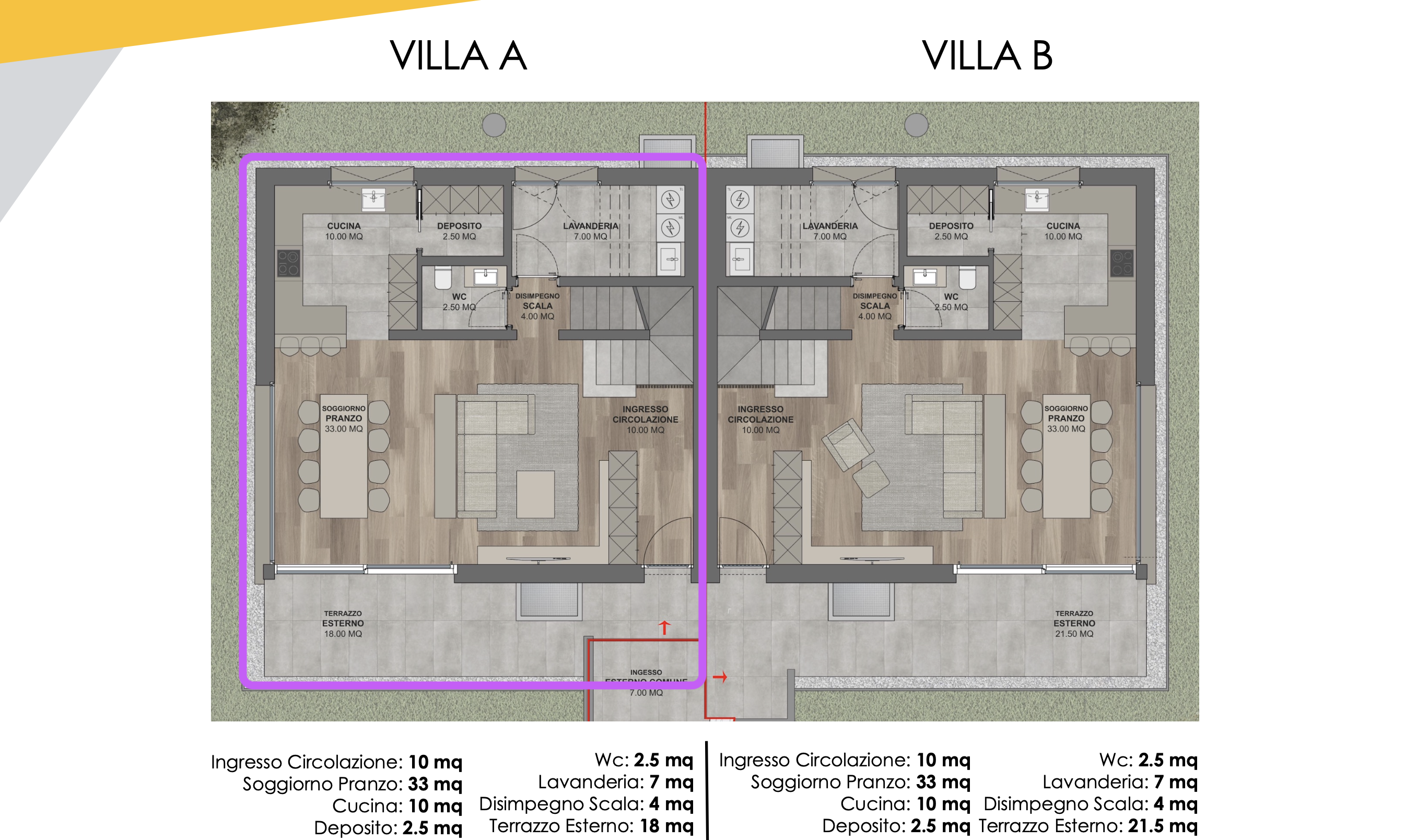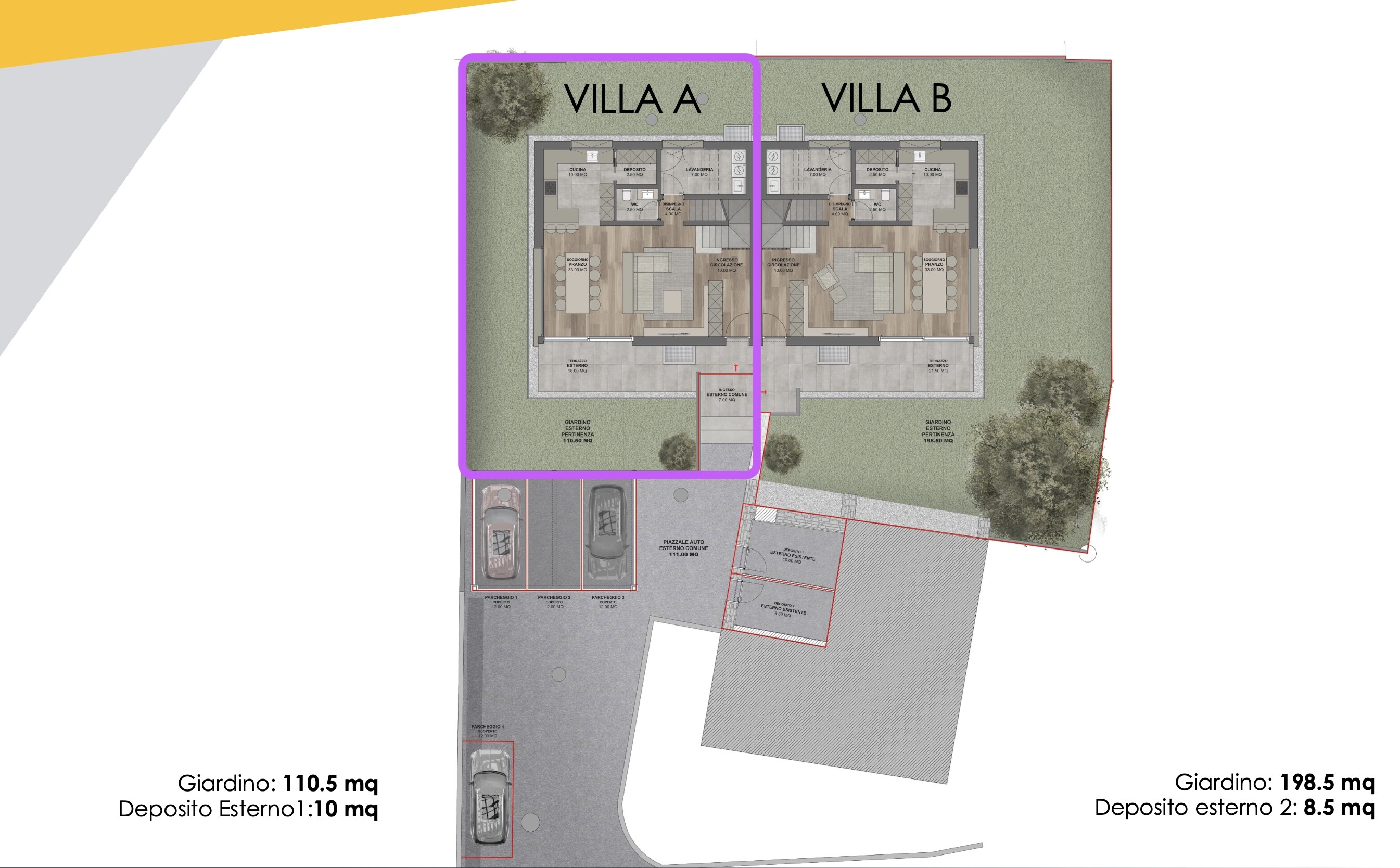 Gli spazi esterni, pur più raccolti rispetto alla villa adiacente, risultano ben organizzati e facilmente fruibili, ideali per momenti di relax, vita all'aperto e gestione quotidiana con il massimo della praticità.