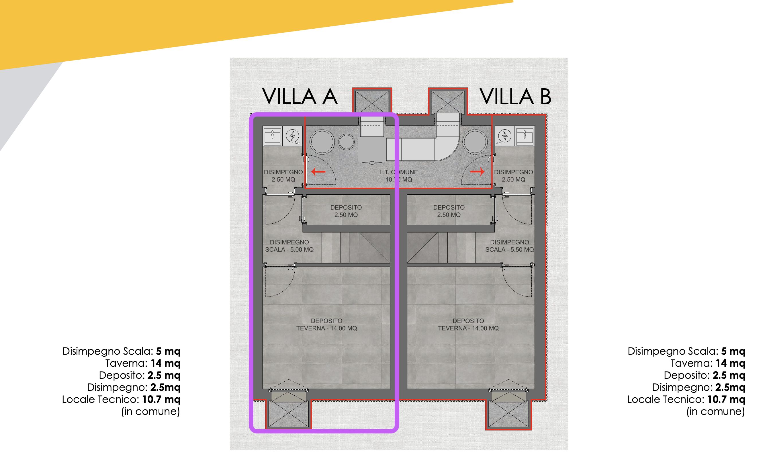 Il piano interrato ospita una spaziosa taverna, locali deposito e spazi tecnici, offrendo ulteriore superficie versatile ideale come area hobby, studio o spazio multifunzionale.