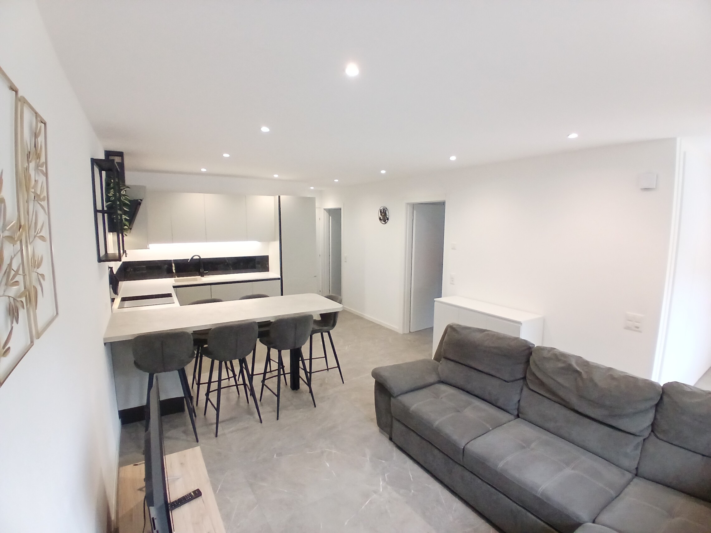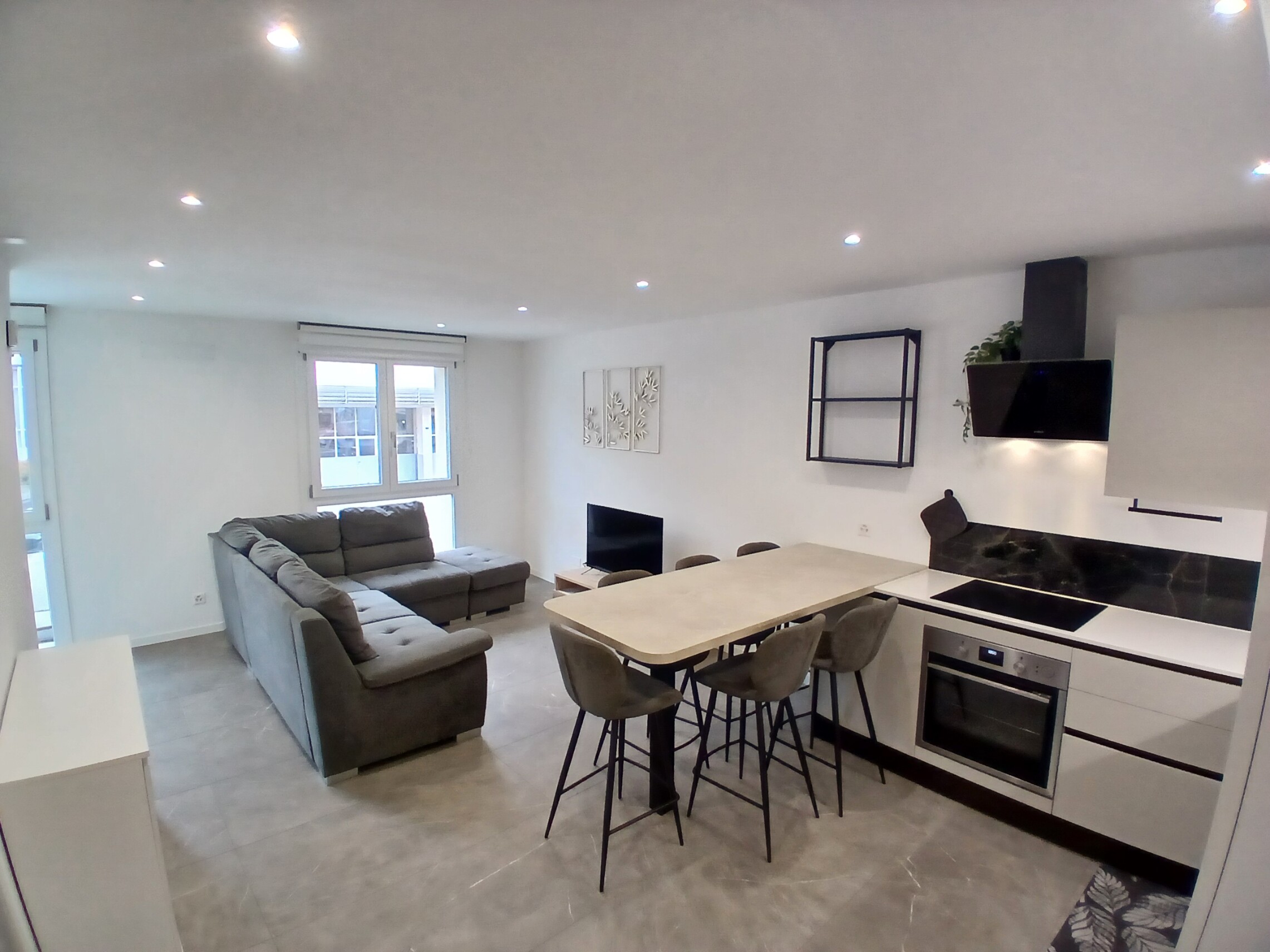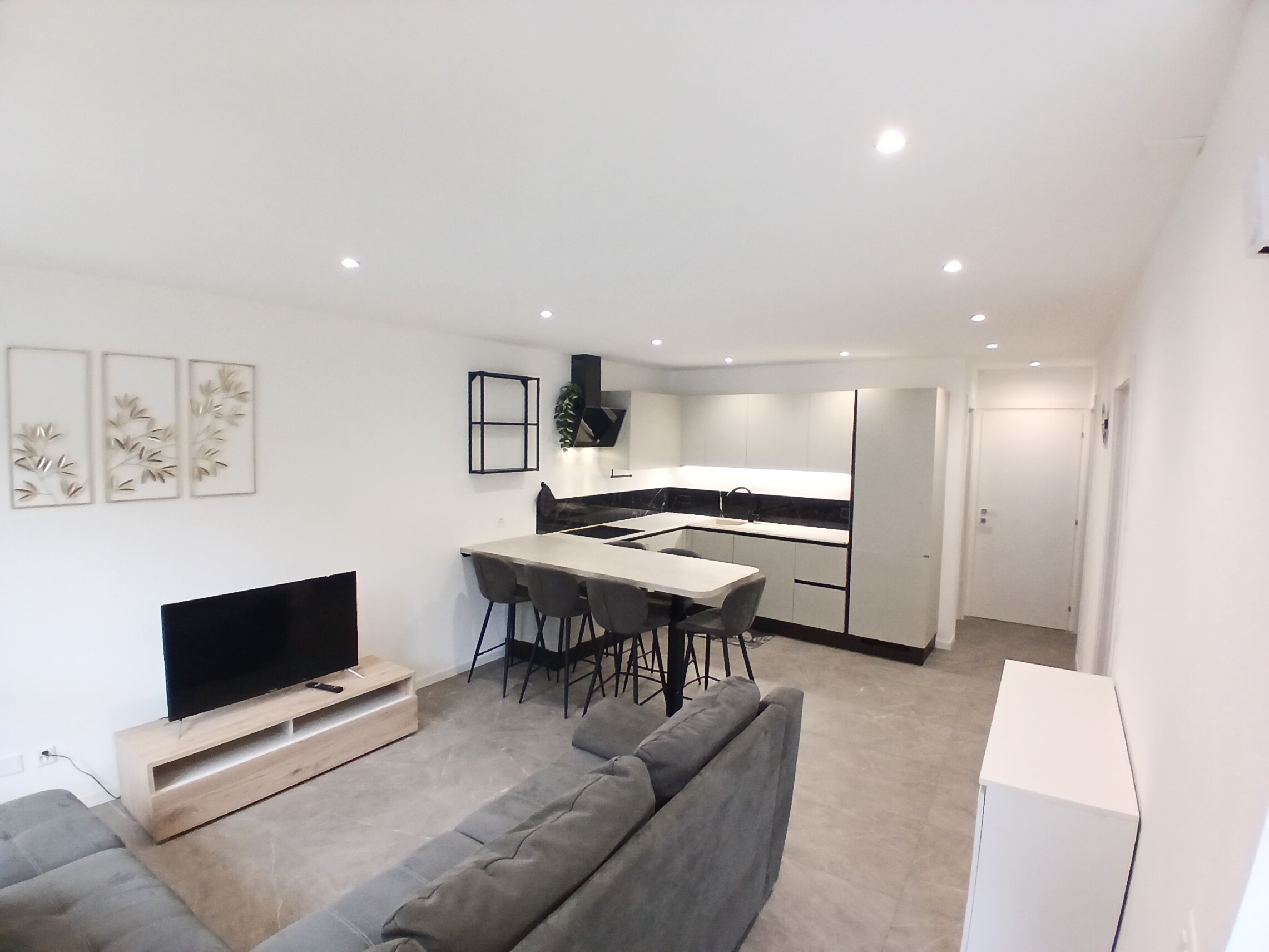 L'appartamento si distingue per la sua moderna distribuzione degli spazi, che comprende una camera matrimoniale, una camera singola e un ampio soggiorno con cucina a vista. La cucina è dotata di lavastoviglie e attacchi per lavatrice, rendendo la vita quotidiana più semplice e pratica.