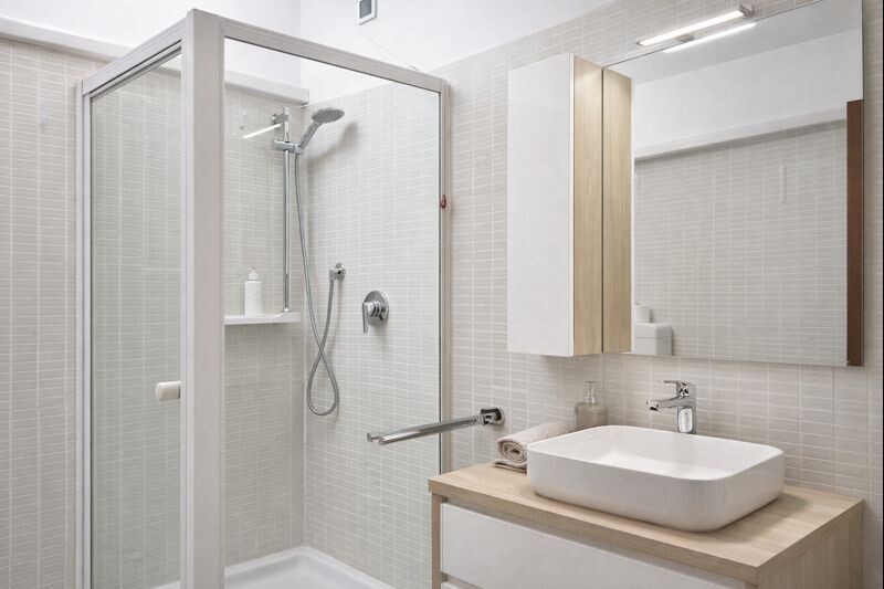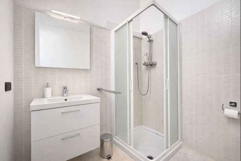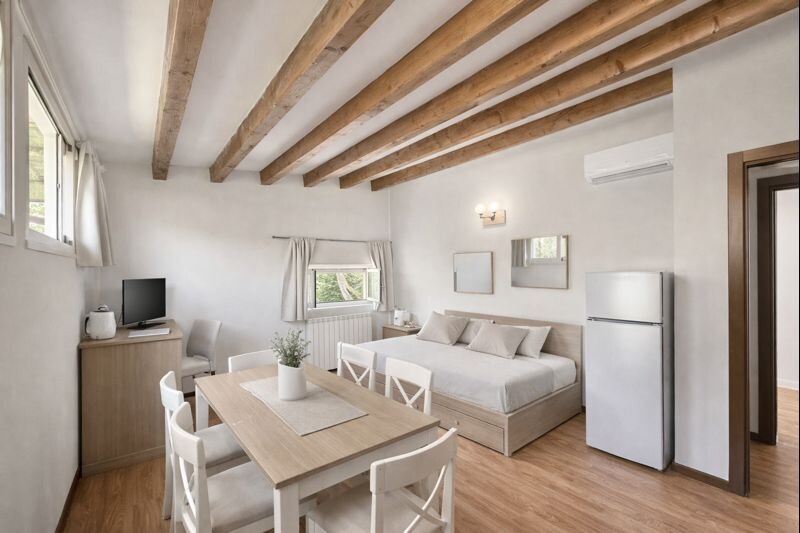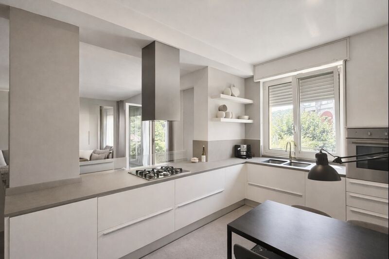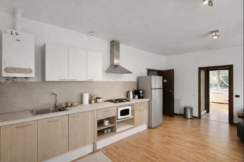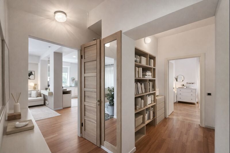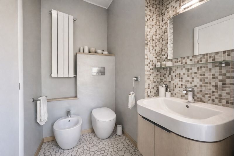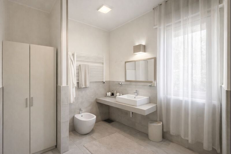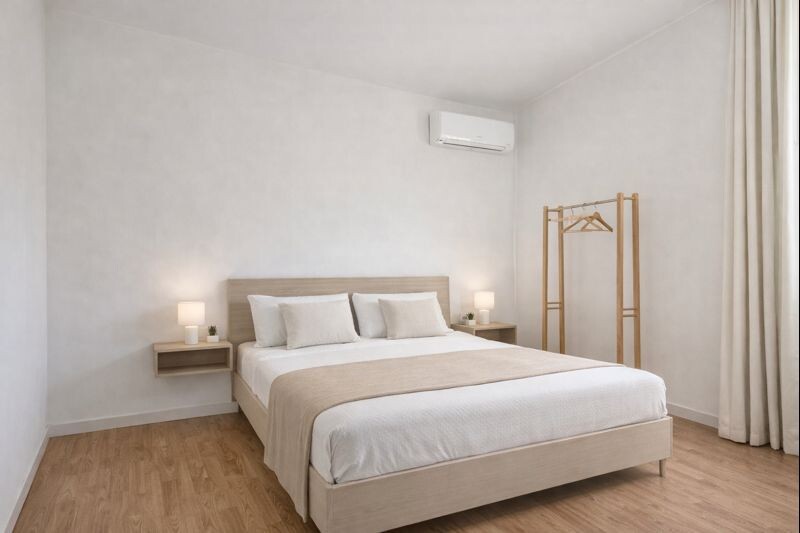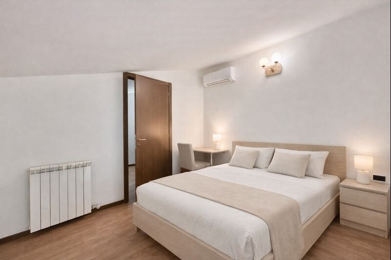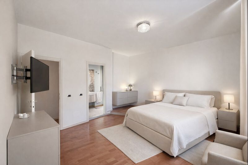 - Il secondo con da due camere da letto, soggiorno con cucina a vista e due bagni, risultando ideale anche per famiglie o affitti brevi di fascia superiore.