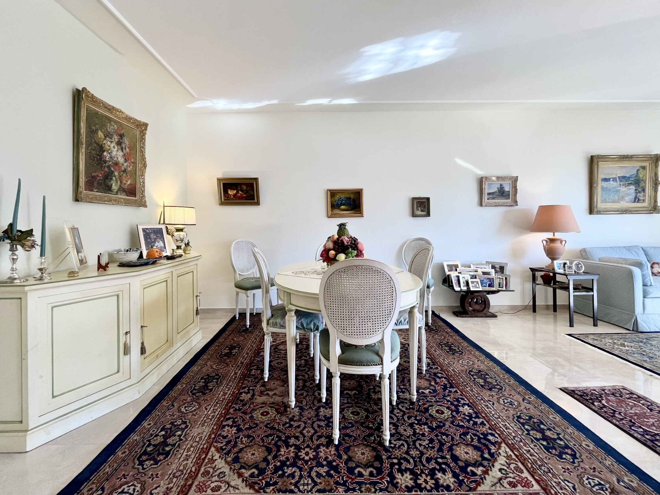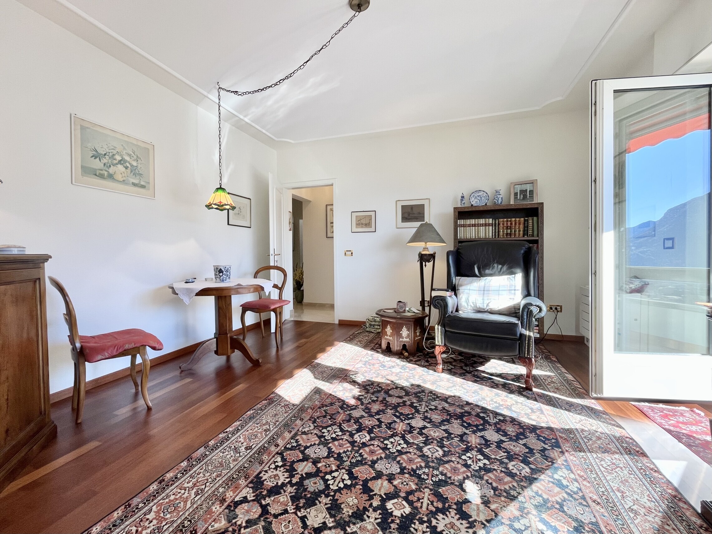 - Luminoso soggiorno doppio, dotato di aria condizionata caldo/freddo e accesso al primo terrazzo coperto con tende da sole elettriche;